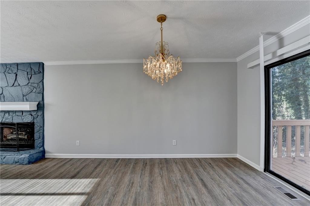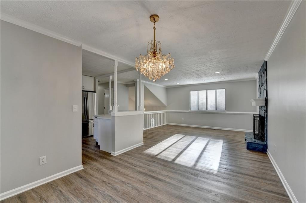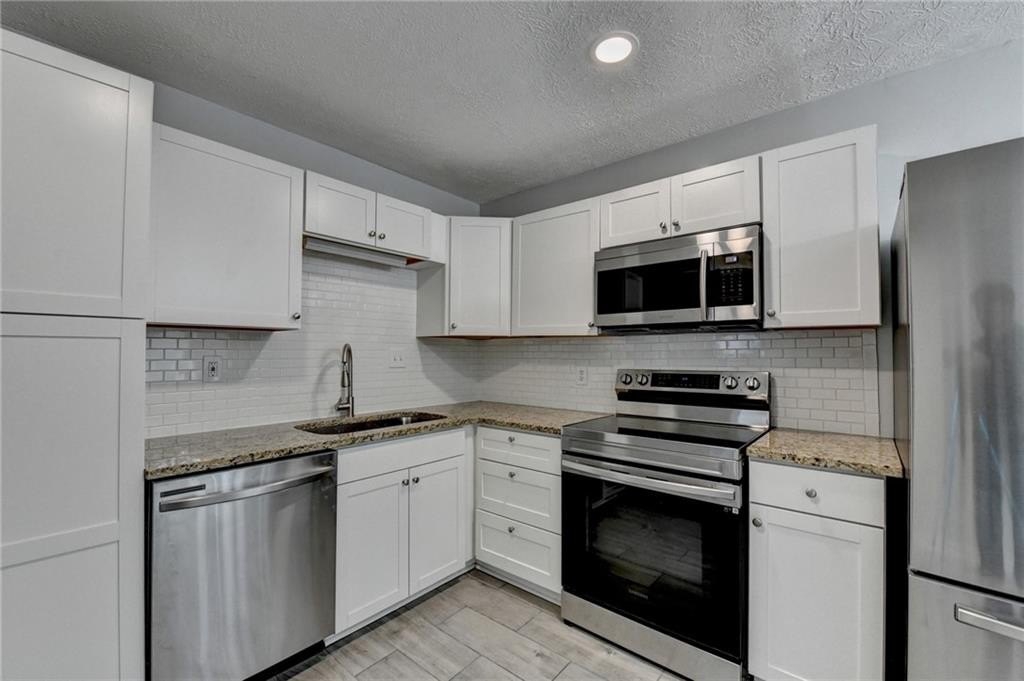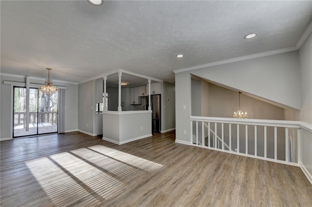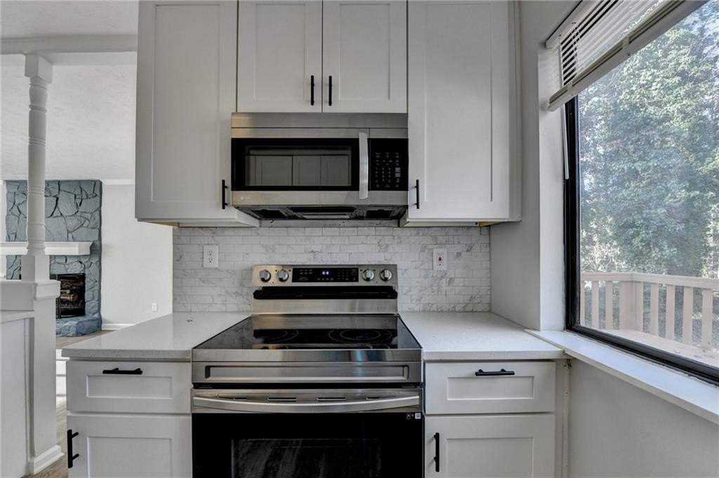 Beautifully remodeled split-foyer home featuring dual kitchens and a bright eat-in main kitchen with new quartz countertops, classic white subway tile backsplash, white cabinetry, and stainless-steel appliances. A separate formal dining room provides the perfect space for family gatherings and entertaining. The cozy family room showcases a vaulted ceiling and opens to the back deck, ideal for year-round enjoyment.