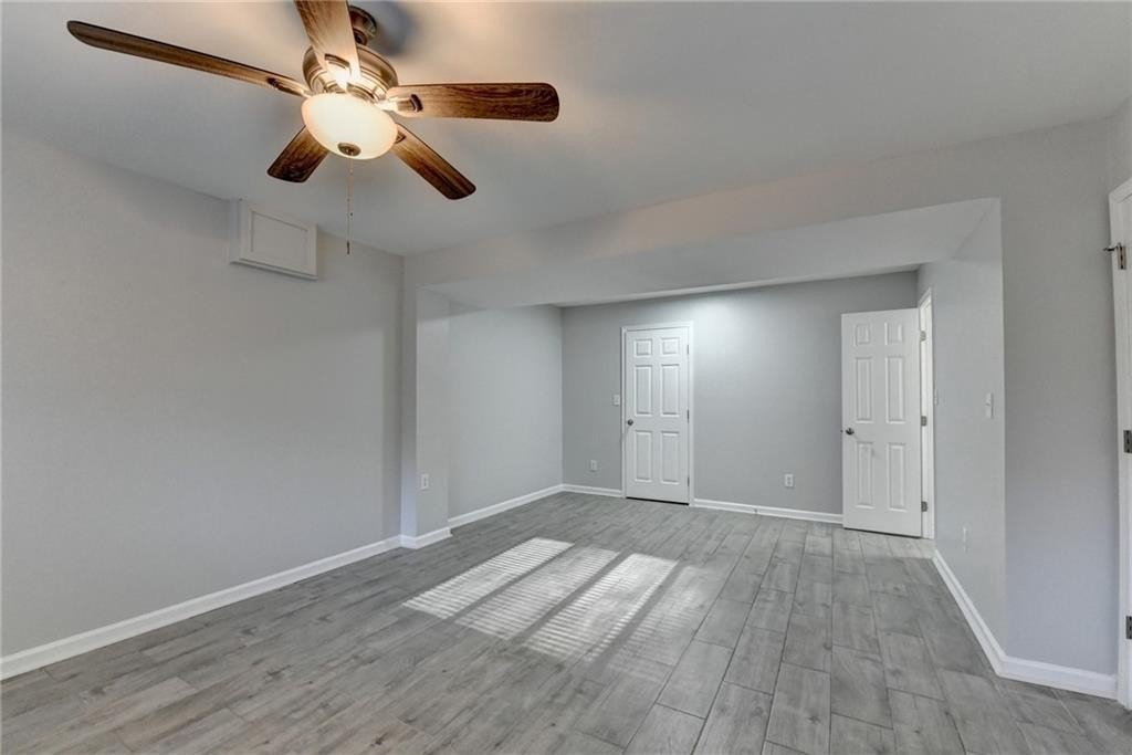 The spacious owner’s suite offers a fully updated bath with double vanities, a soaking tub, separate shower, and walk-in closet. Two additional bedrooms and a full bathroom complete the main level.