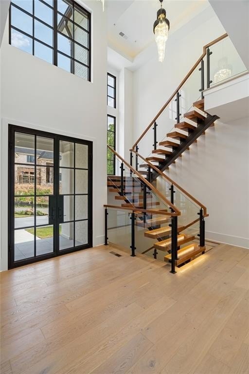 Welcome to a statement home in the prestigious Echelon community, where sweeping golf course and lake views create a breathtaking backdrop for everyday living. Newly completed in 2024, this custom luxury residence blends bold architecture, refined materials, and warm livability-perfectly designed for families and elevated entertaining. Offering 8,319 sq ft of finished living space plus an additional 6,300+ sq ft of heated and non-heated areas (totaling 14,627 sq ft), this home delivers scale, flexibility, and luxury at every turn. From the moment you enter the grand two-story foyer and great room, enhanced by 11-foot main-level ceilings and dramatic 14-foot basement ceilings, the home commands attention. Floating stairs with integrated LED lighting create a striking architectural focal point. At the heart of the home is a show-stopping marble kitchen, outfitted with a 60" JennAir refrigerator column, 48" gas cooktop, 36" French-door refrigerator, and a custom limestone hood. A fully equipped second kitchen/butler's pantry makes hosting effortless. The great room features a $100K custom limestone fireplace, perfectly framed by expansive views of the pool, golf course, and lake. The primary suite is a private sanctuary, complete with a fireplace, sitting area, and a spa-inspired bathroom featuring custom cabinetry and color-changing LED lighting. Wide 7-inch hardwood floors throughout elevate the home's timeless elegance. Designed for entertainment, the finished basement impresses with quartz countertops, a full bar area, dedicated movie theater, fireplace with floor-to-ceiling built-ins, and two private bedroom suites-ideal for guests or multigenerational living. Built-in speakers and a full camera system provide both ambiance and peace of mind. Outdoor living rivals a luxury resort, featuring two outdoor fireplaces and a spectacular heated saltwater pool with a sun shelf, depths from 3.5 to 8 feet, and a spa accented by fireballs and cascading waterfalls. Professionally landscaped grounds with lighting and irrigation create a serene, private retreat. Built with efficiency and longevity in mind, the home includes aluminum windows, spray foam insulation, upgraded recessed LED lighting throughout, and a garage designed to accommodate a vehicle lift. Additional highlights include a mudroom, main and upper-level laundry rooms, and a future elevator shaft option. With 7 bedrooms, 7 full bathrooms, 4 half baths, a massive second-floor media room, and a layout that balances luxury with comfort, this home is a rare opportunity in one of the area's most sought-after communities. Schedule your private tour today-homes of this caliber, setting, and craftsmanship do not last.