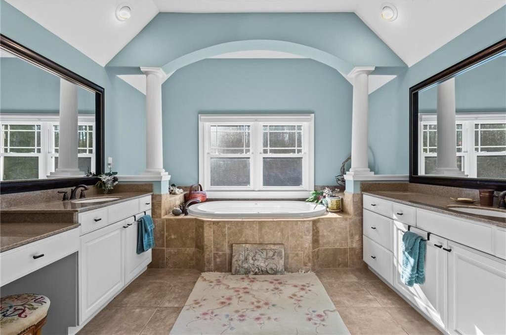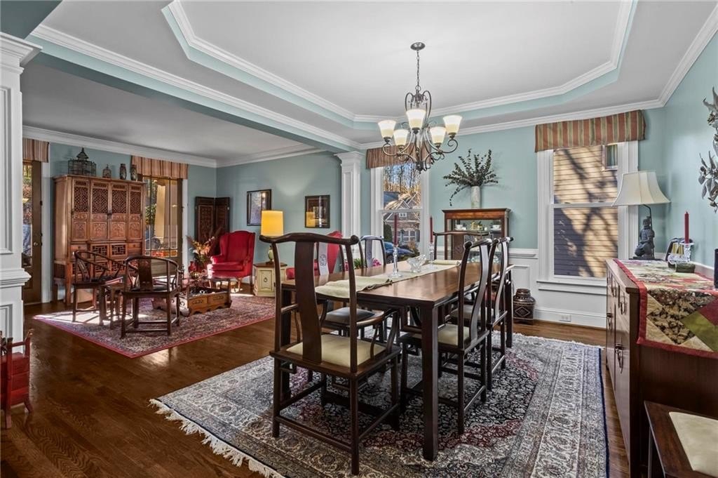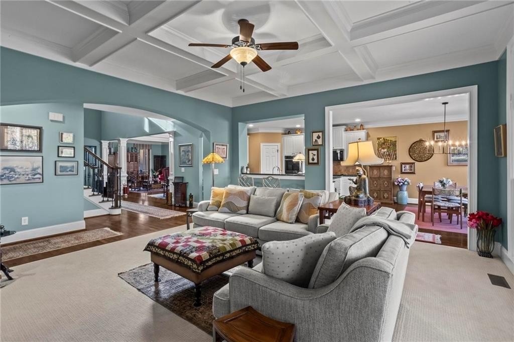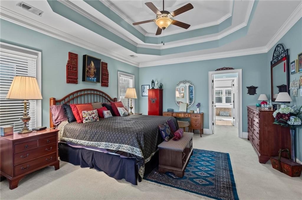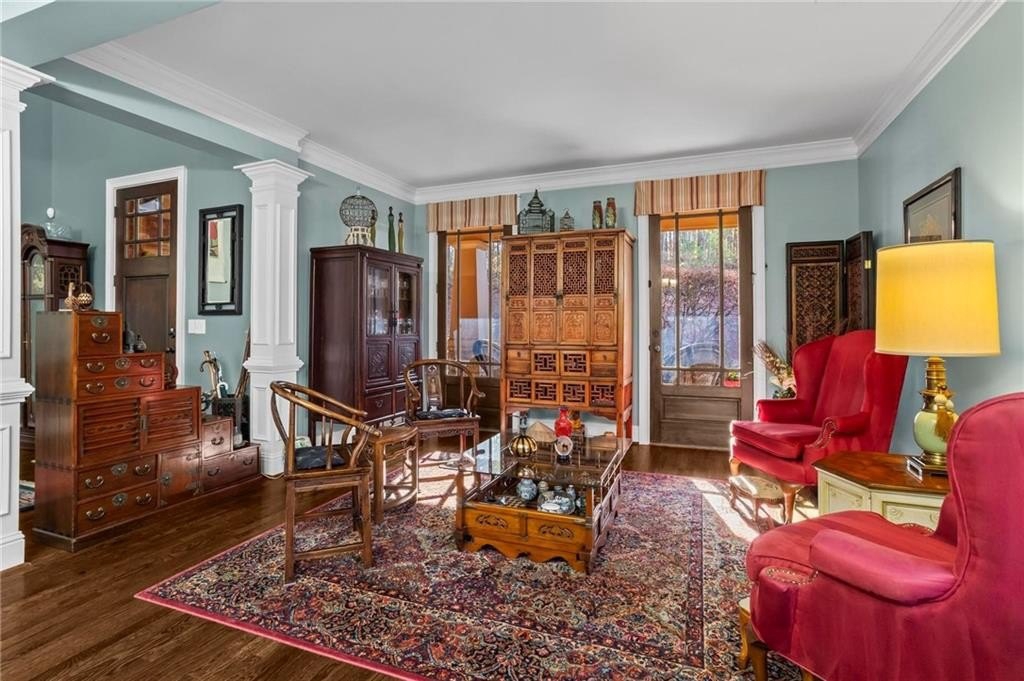 Private and serene, yet convenient to EVERYTHING (schools, shopping, entertainment and outdoor recreation.) This stunning home, located in the Barnes Mill community and situated on a quiet cul-de-sac street, seamlessly combines stately elegance with cozy comfort. The elegant aspects include the grand two-story foyer and upscale architectural details such as columns, arched doorways, crown moldings along with both tray and coffered ceilings. These design elements blend with stacked stone fireplaces in both the oversized primary suite and the spacious living room, which opens onto a large, private screened porch, creating a comfortable "easy living" style. The kitchen features a pass through with bar stool seating, an island, stainless steel appliances, stone countertops and a farm sink with instant hot water. The breakfast room boasts a lovely view of the wooded back yard. The primary suite features a cozy sitting room, his and her closets, and a spa-like bathroom with a vaulted ceiling, double vanities, a Jacuzzi tub, a separate shower, and an electric bidet toilet. Two additional bedrooms, which share a Jack and Jill bathroom, and an ample bonus room complete the upstairs. The bedroom on the main level is currently being used as an office. Downstairs there is loads of storage and unlimited potential in the full, unfinished terrace level. The property offers wonderful amenities such as a clubhouse, swimming pool, tennis courts and a playground. The Barnes Mill community is ideally located with easy access to the East-West Connector and to the Silver Comet Trail for recreation. Don't miss this opportunity to make this house your home!