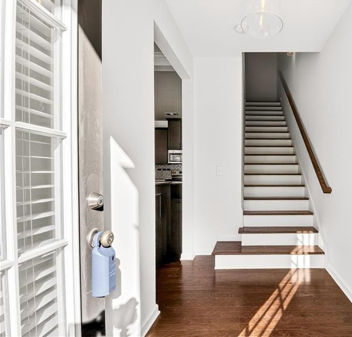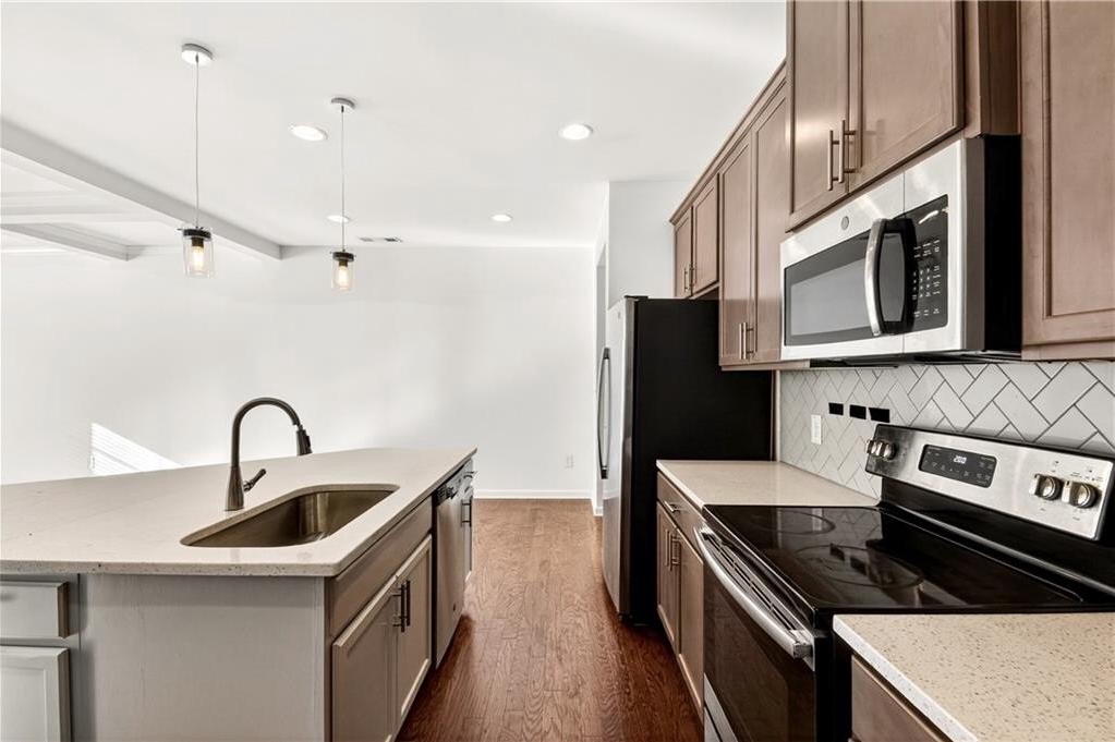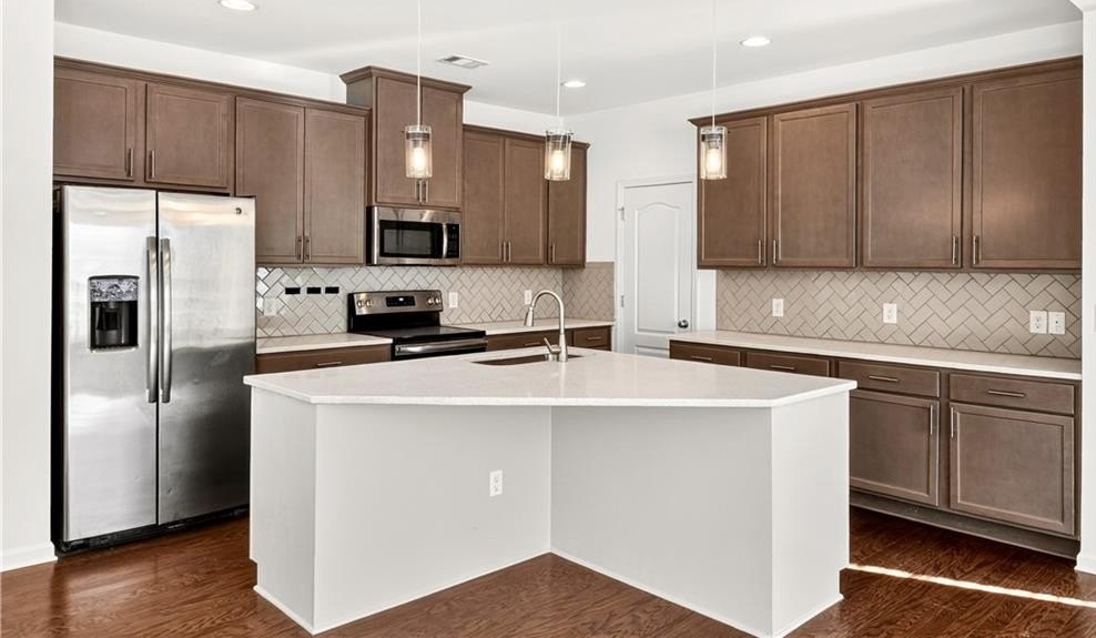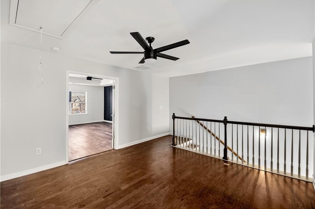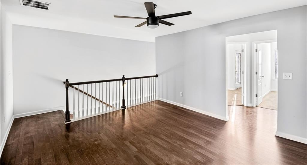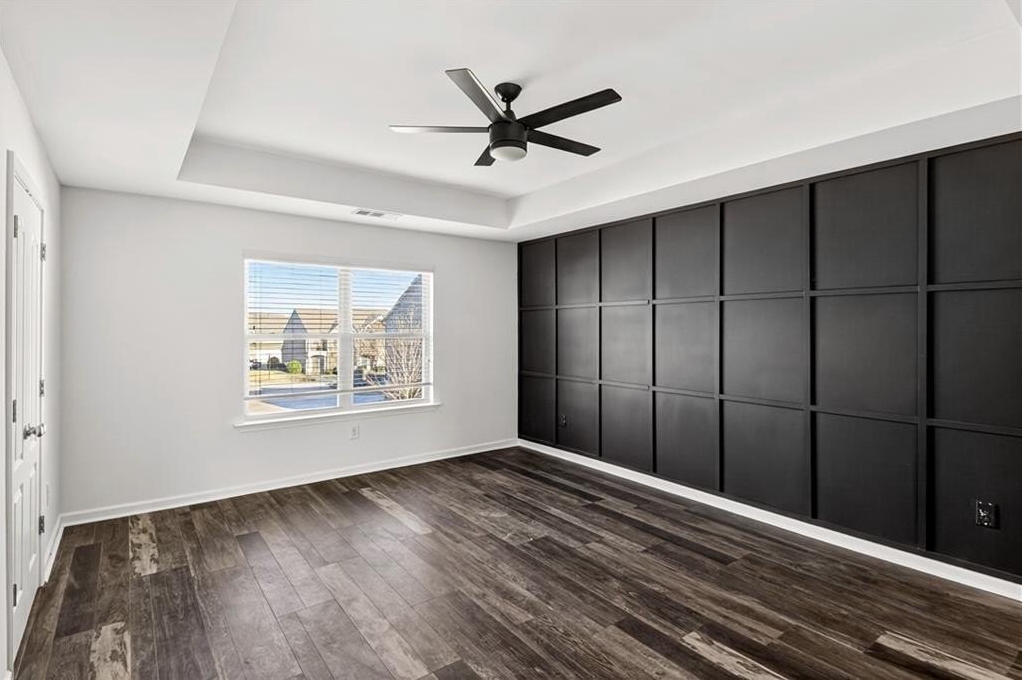 This spacious two-level, practically new 3 bedroom, 2.5 bathroom townhome has been freshly painted and updated, offering a sophisticated lifestyle in a highly convenient location. The open main level welcomes you with an open-concept living room featuring elegant coffered ceilings and a cozy fireplace. The gorgeous chef's kitchen is fully equipped with quartz countertops, stained cabinetry, stainless steel appliances, and a massive walk-in pantry. The large eat-in island is perfect for morning coffee or casual entertaining, while a convenient half-bath completes the first floor. Upstairs, the oversized landing serves as a versatile bonus area, ideal for a home office, den, or playroom. Behind double French doors lies the primary suite, a true retreat showcasing a dramatic accent wall, tray ceilings, and a tranquil ensuite. You'll love the dual vanity, deep soaking tub, and the sleek glass-enclosed shower. The two additional bedrooms share a hall bath. One guest room features private balcony access, offering a welcome outdoor escape to enjoy the fresh air. Additional features include a two-car garage and plenty of storage throughout. Living here means more than just a beautiful home; you'll have access to fantastic community amenities including a pool, clubhouse, and tennis courts. Convenient to 85, the airport, and shopping in the immediate vicinity, you'll settle in and love the neighborhood! Some photos have been virtually staged.