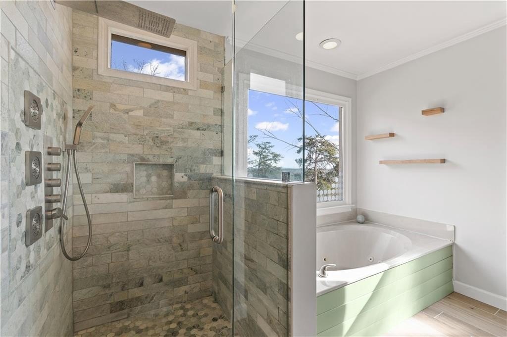 Discover a Mountain View Retreat in Metro Atlanta Stunning home sits on one of the few mountains in the metro Atlanta area, which offers panoramic city views and a warm, inviting atmosphere filled with natural light. From the moment you arrive, the property's charm and serenity set the tone for a lifestyle surrounded by beauty, comfort, and nature. Wake up each morning to breathtaking sunrise views from the owner's suite, featuring floor-to-ceiling window walls. The master bedroom features a generous walk-in closet with cabinets and a bathtub jacuzzi overlooking the mountains and city lights. Inside, the vaulted-ceiling living room welcomes you with abundant sunlight and sweeping views. The spacious kitchen is designed for gathering, featuring a large island and plenty of room for cooking and entertaining. A second living area with its own fireplace offers a cozy place to unwind. Step onto an expansive wooden deck, complete with a pergola for shade, and enjoy peaceful moments overlooking the city. The second floor includes three large bedrooms, a Jack-and-Jill bathroom, and a sizeable storage area. The finished in-law suite is a complete living space of its own-ideal for guests, extended family, or rental income. It features a large living room, a fully finished kitchen, a gym area, spacious storage, a laundry room, a tool room, and a bright bedroom with its own large window. It also has a private entrance for added convenience. Step outside to enjoy multiple gathering spaces. The backyard firepit area is perfect for evening conversations under the stars. The large front yard features a stone wall with seating, offering incredible views-an ideal spot to enjoy holiday fireworks. The large, level driveway and cul-de-sac location add ease and safety. Recent updates include the roof, HVAC systems, water heater, hardwood floors, and carpet-all within the last 3-8 years. The community offers exceptional amenities: two lakes, a country club, tennis courts, a pool, a sauna, a children's playground, and scenic mountain walking trails. A vibrant calendar of social events ensures a sense of community for all. With 5 bedrooms and 3.5 bathrooms, this home is designed for comfort, versatility, and unforgettable moments. A truly special place to create lasting memories. Great school district, Lassiter HS, David ES.