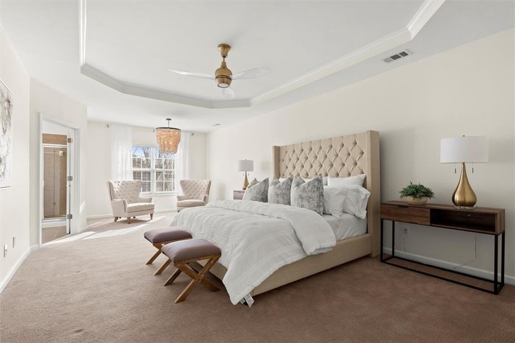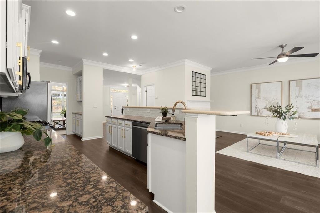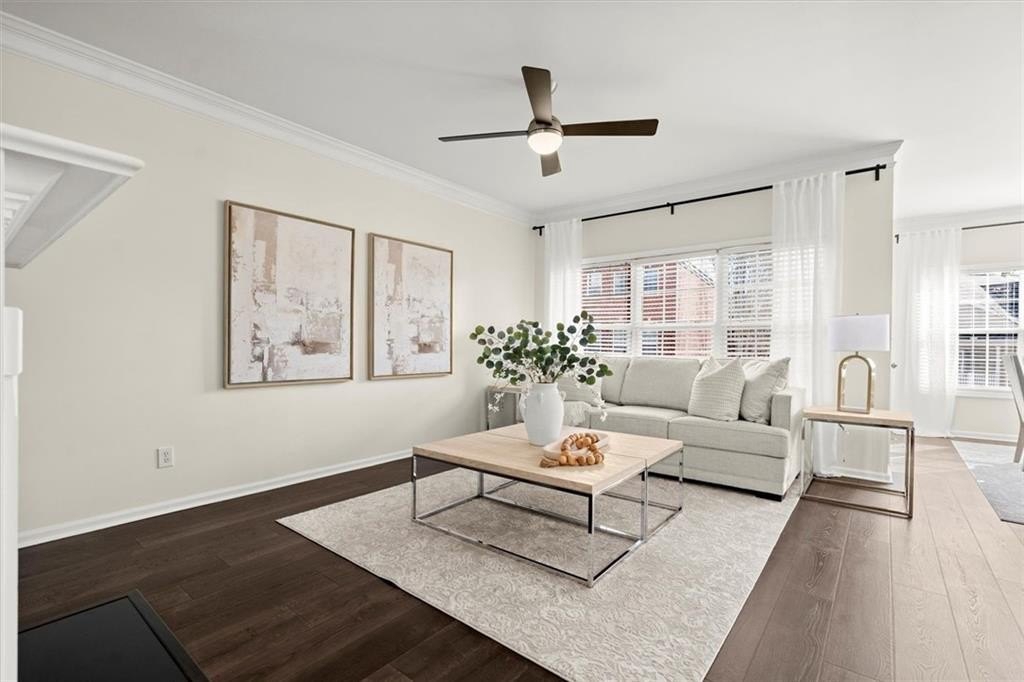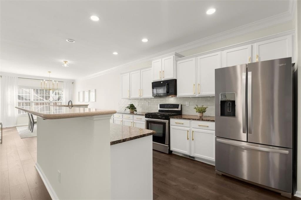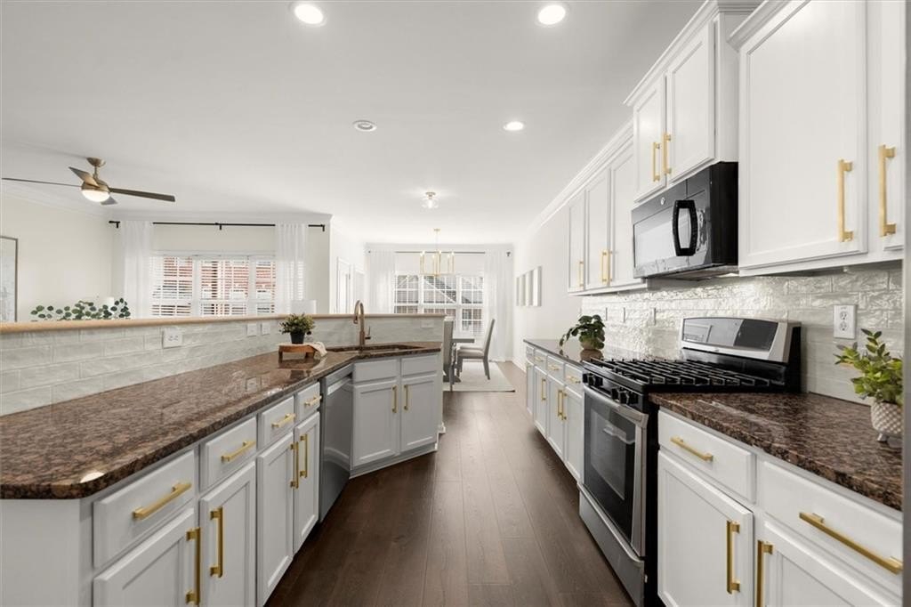 Elegant 4-Bed, 3.5-Bath Townhouse in Lake Deerfield. This beautifully upgraded three-level townhouse combines modern luxury with timeless style. Flooded with natural light, the open living spaces showcase the refinished kitchen cabinets, new backsplash, premium hardware, and extended granite countertops. The master suite boasts a custom Elfa closet system, while the spa-like bathrooms feature refreshed vanities and high-end fixtures. Updated flooring on the first and second levels, complemented by plush upper-level carpeting, creates a seamless, sophisticated flow throughout the home. Freshly painted walls and ceilings, new designer light fixtures throughout, and an updated garage with new epoxy flooring add a bright, contemporary feel, completing this move-in-ready home. Step outside to the back porch, perfect for entertaining or relaxing in privacy. Nestled in the desirable Lake Deerfield neighborhood, this townhouse is just down the road from Avalon and only minutes to Halcyon. Enjoy convenient access to top schools, parks, shopping, dining, and all the amenities Alpharetta has to offer, while still experiencing the quiet charm and privacy of this established community.