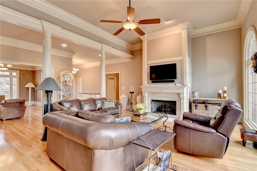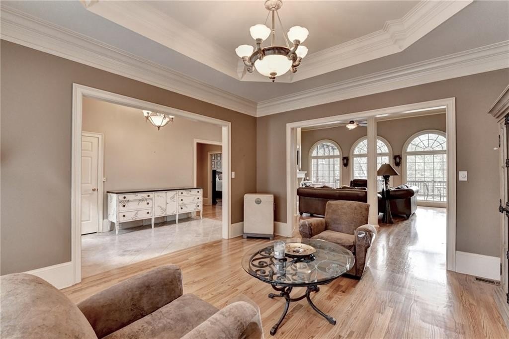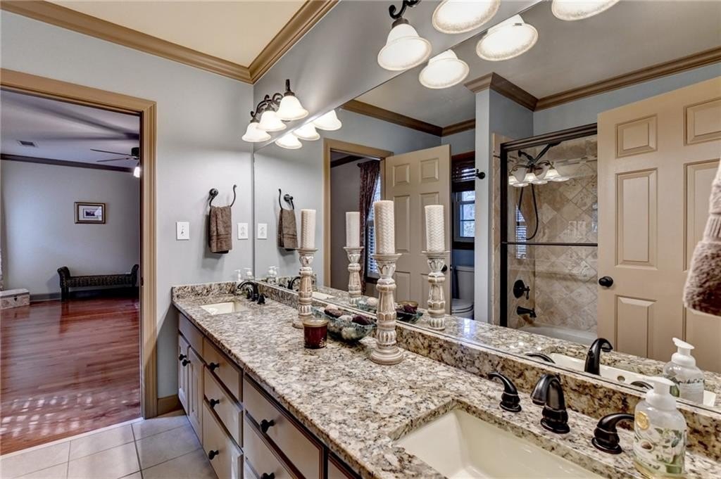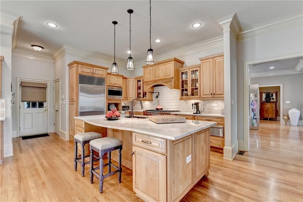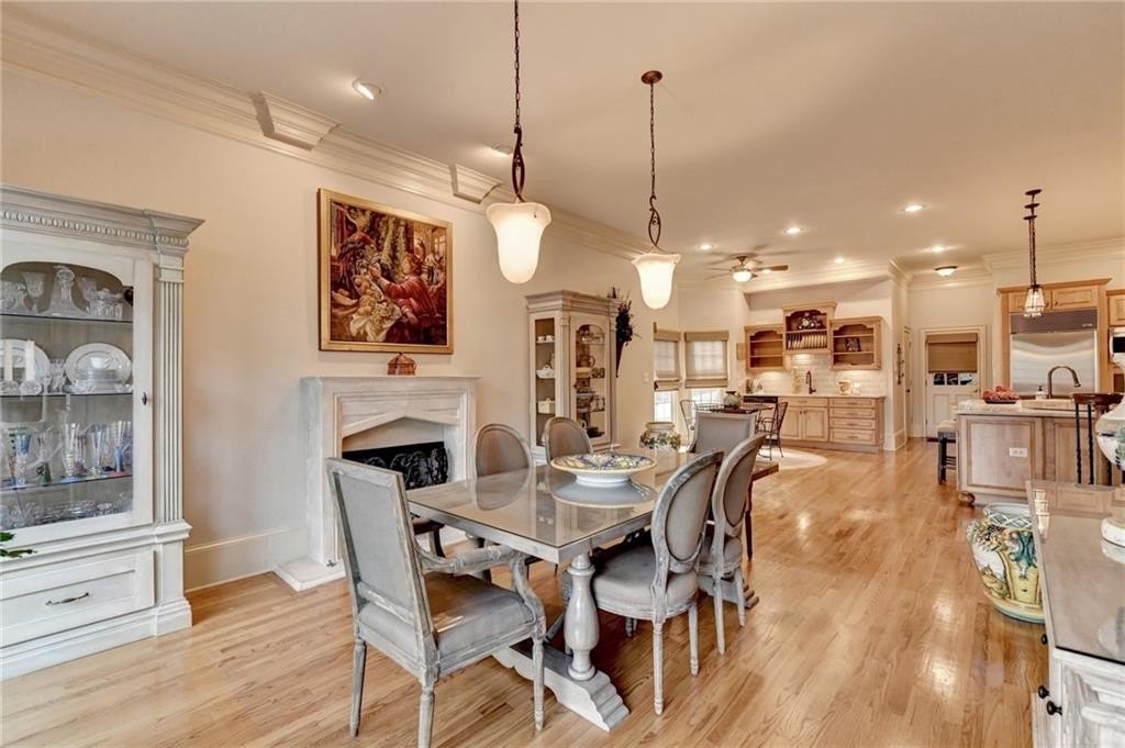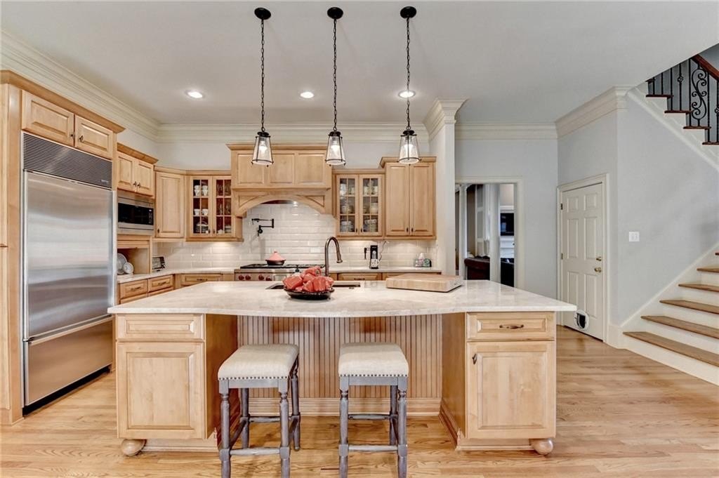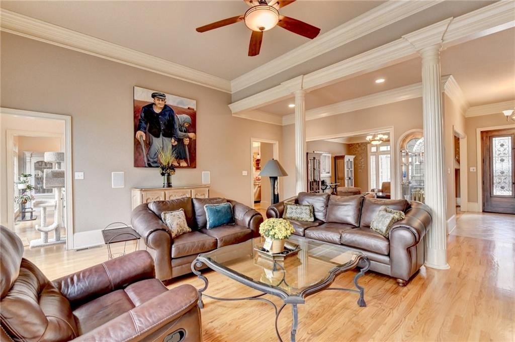 Luxury Living in St Ives: 203 Southern Hill Dr Experience unparalleled luxury and sophisticated living in the prestigious St Ives Country Club community with this exquisite estate home at 203 Southern Hill Dr. Boasting 5 bedrooms and 4.5 bathrooms, this residence is an entertainer's dream, centered around a state-of-the-art chef's kitchen featuring a massive central island, warming tray all complemented by a priceless, full secondary scullery kitchen. The main level offers an effortless flow between the elegant formal dining room, a sun-drenched keeping room, and the expansive great room, all designed for seamless hosting. A true sanctuary awaits in the spacious primary suite on the main level, providing ultimate privacy and convenience. Exit the french doors to your own private screened porch with amazing views of the yard and lake. Upstairs, you will find three generous secondary bedrooms and two full bathrooms. The finished terrace level expands the living space with an additional bedroom and full bathroom, a large recreation room, and ample partially unfinished space perfect for storage or future expansion. Enjoy the advantage of artificial turf in the backyard. Set on a gorgeous lot, the home offers a serene, picturesque backdrop complete with tranquil lake views, truly defining the coveted Johns Creek lifestyle.