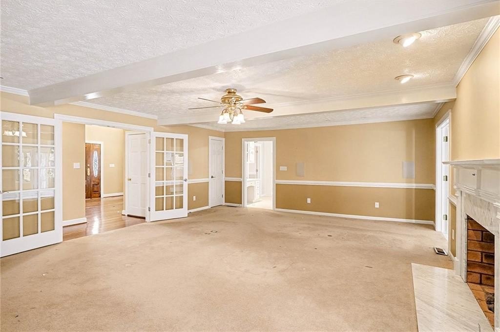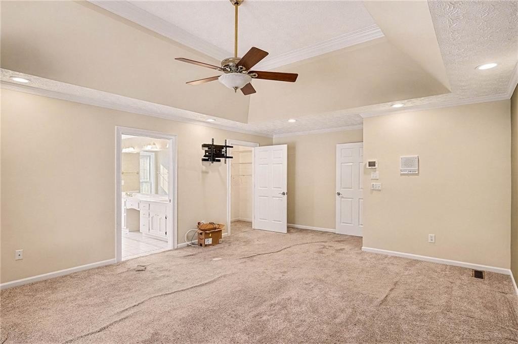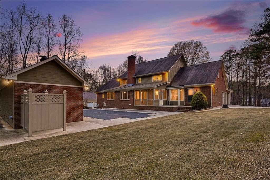 Stunning four-sided brick home in the highly desirable North Shores at Lake Spivey community! Just across from the private lake, this exceptional property is a car enthusiast's dream with six garage doors, two driveways, and tandem parking beneath the home accommodating eight or more vehicles. A large rocking-chair front porch sets the tone for true Southern-style living. Step inside to a soaring two-story foyer with a curved staircase and a grand, statement entry. The main level offers a formal dining room, a massive family room with a cozy fireplace and beamed ceiling, and an expansive kitchen with a large peninsula and eat-in area. A bright sunroom provides additional living space. Down the hallway are two main-level suites-one featuring pocket-door access to a home office/library and full bath, and the second offering tray ceilings, a spacious bath with separate tub and shower, and his-and-hers closets. Upstairs are three additional bedrooms. Two feature two walk-in closets each plus sitting or play areas and are joined by a large Jack-and-Jill bath with two separate showers and dual vanities. A third bedroom/bonus room is accessed by the rear staircase leading from the kitchen. Outdoor living is a true highlight. Situated on a level one-acre lot, the property features an in-ground pool and a full pool house with bath, entertainment space, storage, and outdoor shower. There is ample green space for recreation, pets, or hosting large gatherings. A deeded private dock with boat lift and cover provides direct enjoyment of Lake Spivey. Conveniently located near shopping, dining, and Hartsfield-Jackson Airport. Call today for a private showing!