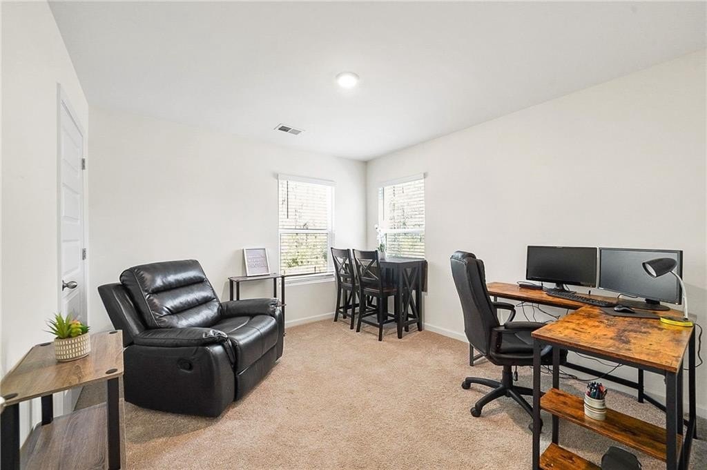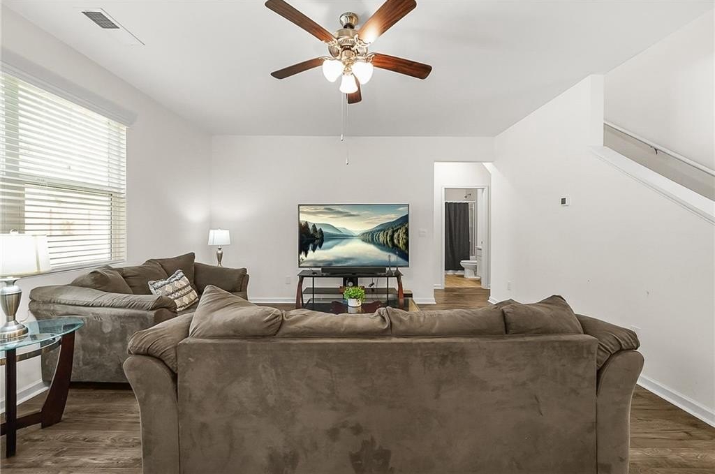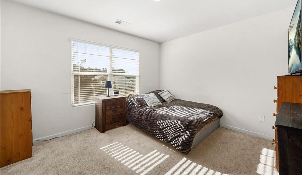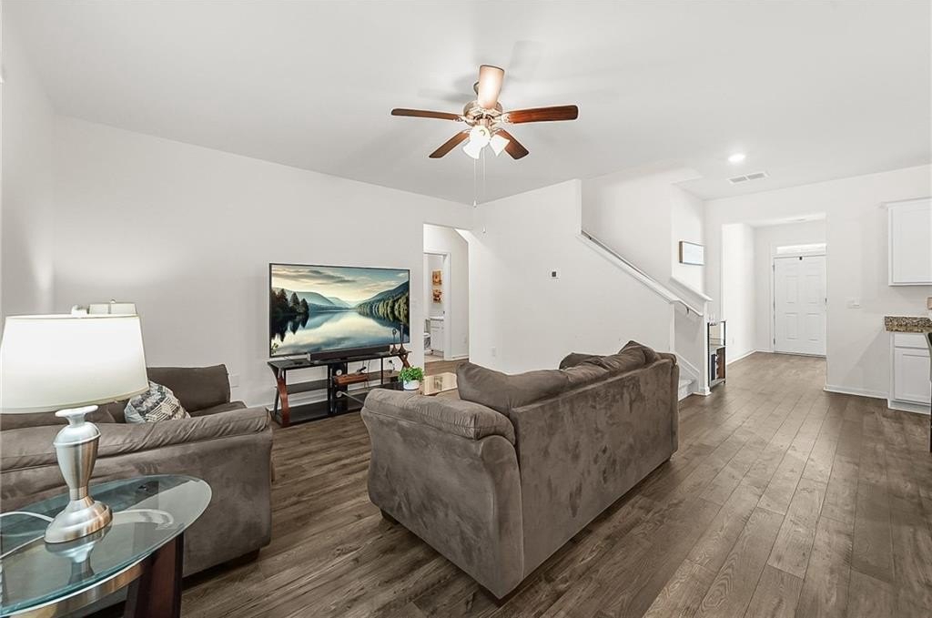 This exceptional five bedroom, three bath home in the heart of charming Hampton offers the space, flexibility, and comfort buyers are looking for, without sacrificing location or lifestyle. Situated on a tree lined street, the home provides a welcoming setting with room to grow. The open concept main level is ideal for everyday living and gathering with friends and family. The kitchen features stainless steel appliances, spacious walk in pantry, a large island with seating, and an eat in dining area that naturally brings everyone together. A separate dining room or flex space adds versatility for a home office, playroom, or formal meals. A main level guest bedroom or office with a full bath offers convenience and privacy for visitors or work-from-home needs. Upstairs, a spacious loft creates an additional living area perfect for movie nights, homework space, or simply relaxing. The oversized primary suite is filled with loads of natural light and includes a double vanity, soaking tub, separate shower, and large walk in closet. Three additional bedrooms, a shared double sink bathroom, and upstairs laundry make daily routines easy. The private, level backyard is surrounded by mature trees and a newly stained wood privacy fence, great for outdoor entertaining, pets, or quiet evenings at home. Community amenities include a playground and mail kiosk, adding to the neighborhood appeal. Located just minutes from I-75 and Highway 20, this home offers quick access to McDonough, Locust Grove, and Atlanta, with nearby shopping and dining at Publix, Walmart, South Point Shopping Center, and Tanger Outlets Locust Grove. Outdoor recreation is close by at Nash Farm Park and Heritage Park. A well designed home that delivers space, comfort, and convenience in a location that continues to grow in popularity.