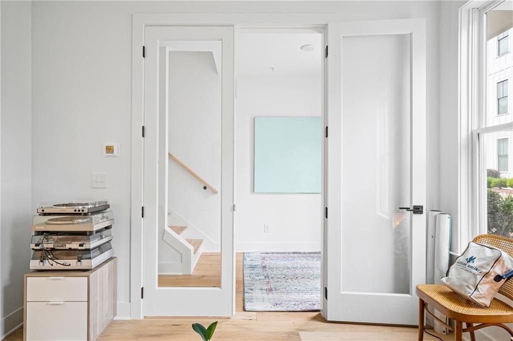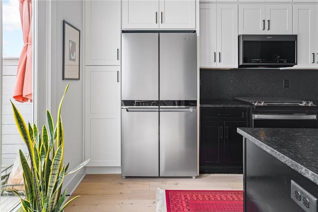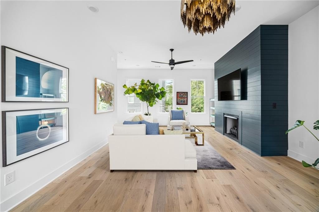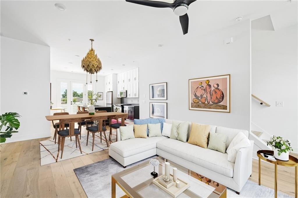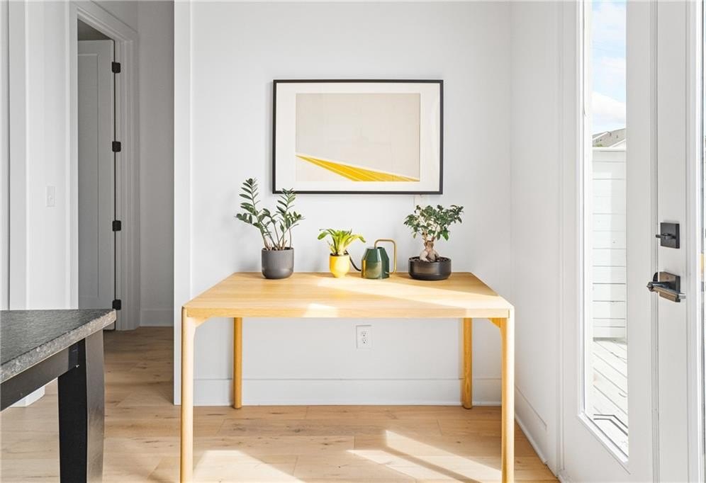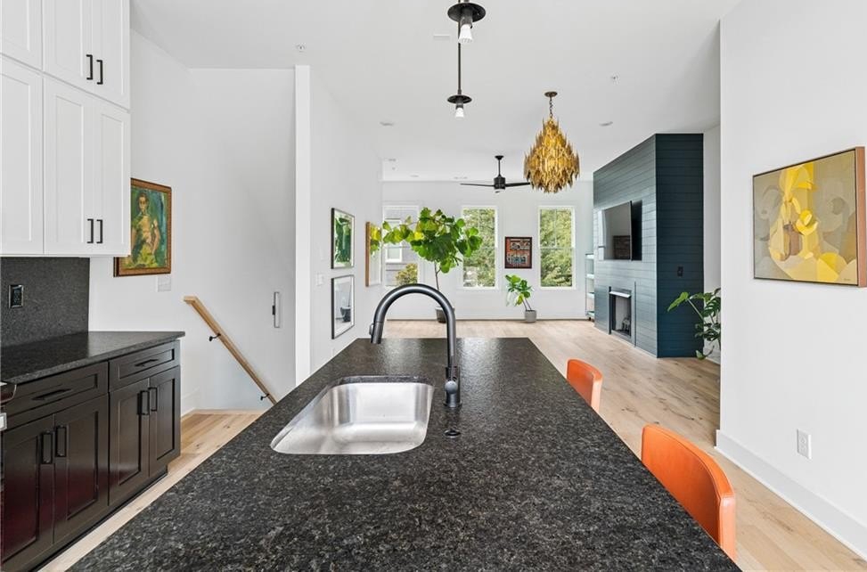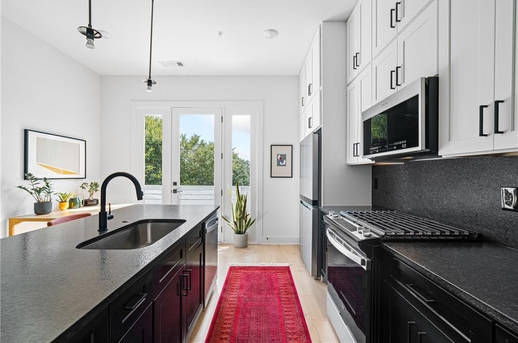 Experience the best of ALL worlds: this better-than-new luxury townhome offers small-town village charm, global access, AND close proximity to vibrant city living. Located in historic Asbury Park, you're right around the corner from Hapeville's small-town "downtown" with local shops and dining, Hartsfield-Jackson Airport for effortless international travel, and only 15 minutes from bustling Midtown Atlanta. The home itself is only 4 years old, offering a low-maintenance, lock & leave lifestyle. Loaded with builder upgrades and a flexible floor plan, each bedroom features its own private ensuite bath allowing for a primary suite to be located on either the top or bottom level. Soaring ceilings are 9 ft on the entry level, 10 ft on the main floor, and 12 ft on the top floor, creating an open, light-filled experience throughout. Scandinavian-inspired interiors include white oak flooring, sleek black hardware, modern light fixtures, and striking custom black-and-white cabinetry and bath tile. The chef's kitchen features stainless steel appliances with a gas range, leathered granite counters, ample cabinetry and pantry for storage. A gas fireplace anchors the open living space with plenty of room for formal dining, entertaining and relaxing alike. And, the private balcony extends the living area even further outdoors for a breath of fresh air. The 4-year old building is extremely energy-efficient with insulated windows and extra interior insulation, keeping those utility costs in check. Laundry is conveniently located upstairs, near the bedrooms, with a front-loading washer and dryer included. To top it all off, a two-car rear-entry garage provides ample parking and storage. Delta & Porsche employees and jetsetters, this is the one for you. Modern, flexible, and impeccably located-this is Hapeville living at its best!