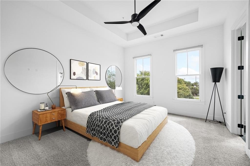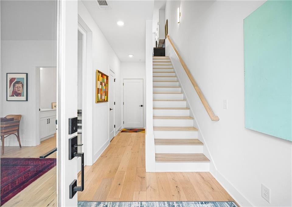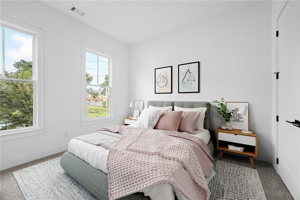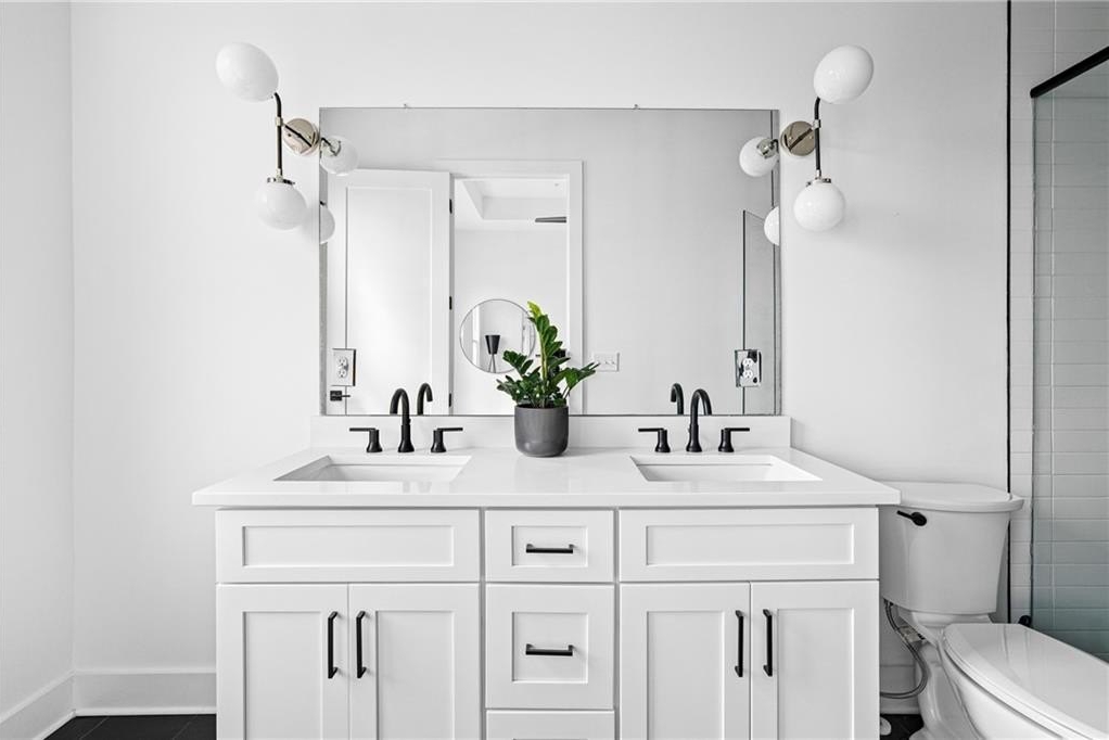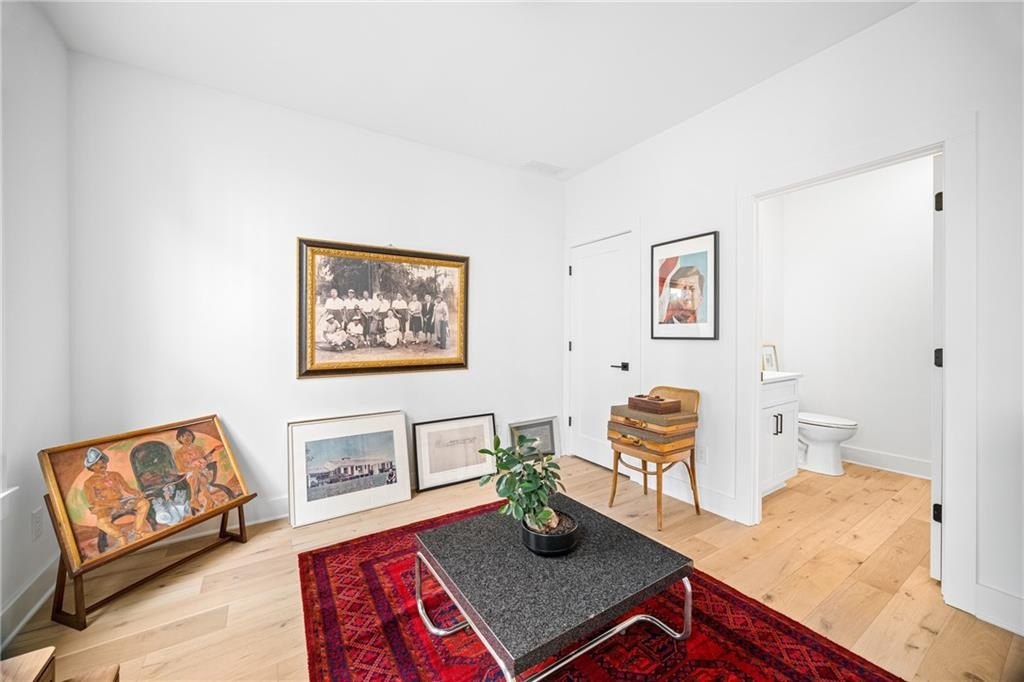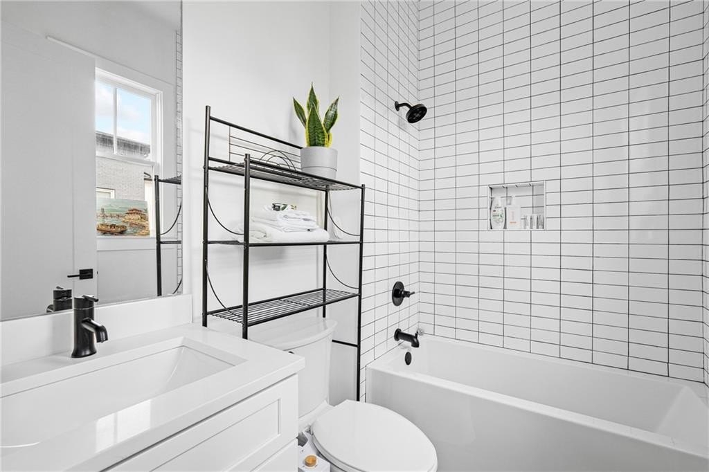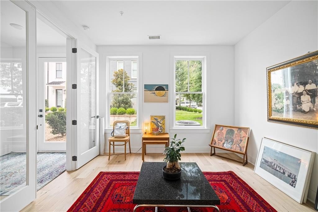 Experience the best of ALL worlds: this better-than-new luxury townhome offers small-town village charm, global access, AND close proximity to vibrant city living. Located in historic Asbury Park, you're right around the corner from Hapeville's small-town "downtown" with local shops and dining, Hartsfield-Jackson Airport for effortless international travel, and only 15 minutes from bustling Midtown Atlanta. The home itself is only 4 years old, offering a low-maintenance, lock & leave lifestyle. Loaded with builder upgrades and a flexible floor plan, each bedroom features its own private ensuite bath allowing for a primary suite to be located on either the top or bottom level. Soaring ceilings are 9 ft on the entry level, 10 ft on the main floor, and 12 ft on the top floor, creating an open, light-filled experience throughout. Scandinavian-inspired interiors include white oak flooring, sleek black hardware, modern light fixtures, and striking custom black-and-white cabinetry and bath tile. The chef's kitchen features stainless steel appliances with a gas range, leathered granite counters, ample cabinetry and pantry for storage. A gas fireplace anchors the open living space with plenty of room for formal dining, entertaining and relaxing alike. And, the private balcony extends the living area even further outdoors for a breath of fresh air. The 4-year old building is extremely energy-efficient with insulated windows and extra interior insulation, keeping those utility costs in check. Laundry is conveniently located upstairs, near the bedrooms, with a front-loading washer and dryer included. To top it all off, a two-car rear-entry garage provides ample parking and storage. Delta & Porsche employees and jetsetters, this is the one for you. Modern, flexible, and impeccably located-this is Hapeville living at its best!