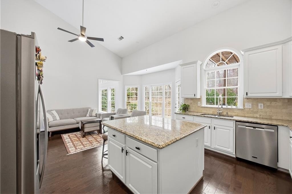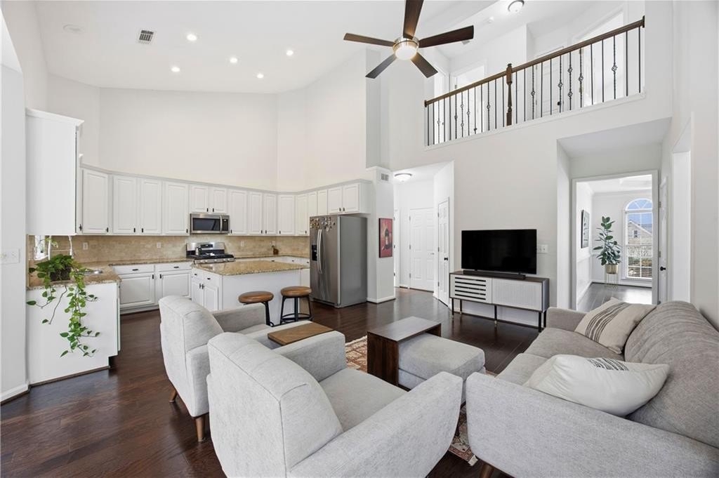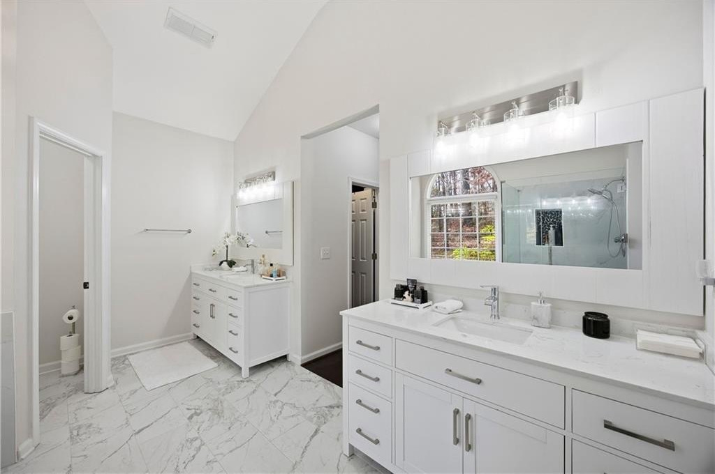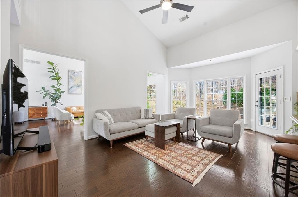 welcome to this beautiful home in an Outstanding neighborhood located in Alpharetta with added bonus of lower Forsyth County taxes. Upon entry you will find an inviting 2 story foyer that opens up into a light filled and spacious family room with amazing 2 story windows and exquisite fireplace. To the right of the foyer is a lovely formal dining room. To the left of the foyer is a hall leading to the double doored private office, updated Powder room and large master bedroom featuring high tray celling, his and hers closets and elegantly renovated master bath with his and hers vanities, bath tub and septate shower. Through the family room you will enter the spacious kitchen with vaulted ceilings, updated granite countertops, white cabinets, an island and separated kitchen area with enough space for another cozy sitting area. Off the kitchen you can head out to the 2 car garage that has been freshly painted. Upstairs you will find two large secondary bedrooms with beautifully updated tile floor and vanity. Lasts but no least head outside to the amazingly peaceful and private backyard. This is one special home situated in a fantastic swim/tennis community, with easy access to GA400, top rated schools, shopping, dining, Big Creek greenway, and halcyon center. Schedule your private tour today and make this dream home your reality.