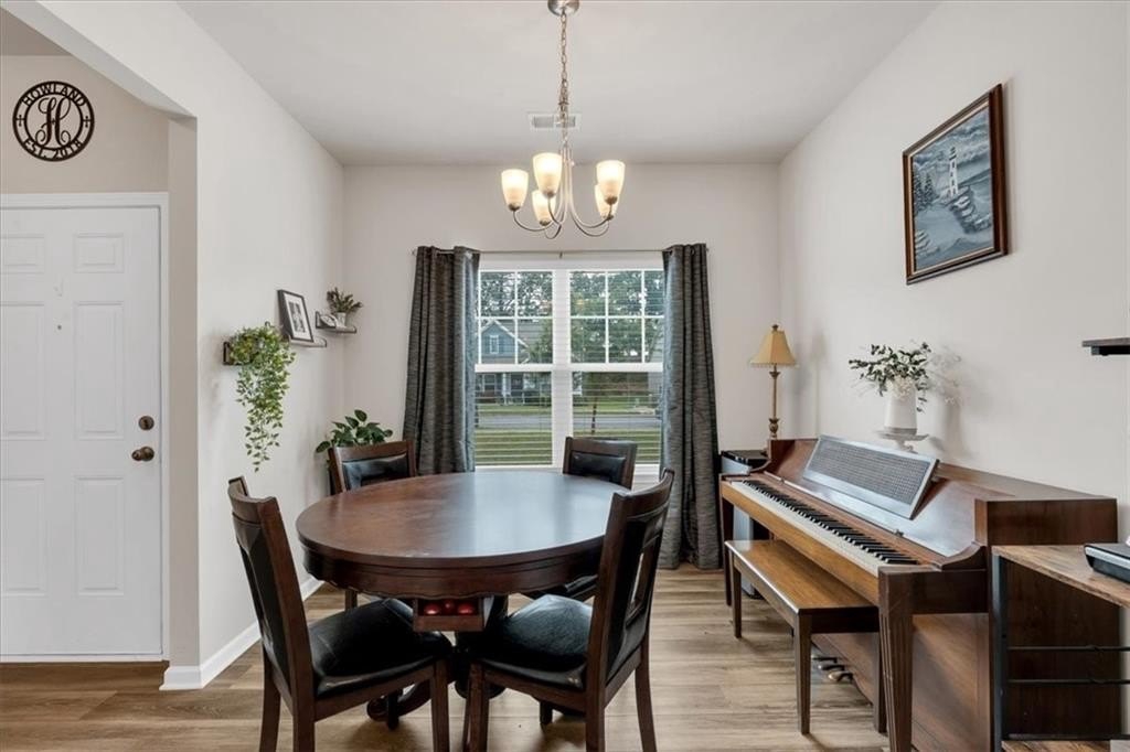 Welcome home to the Four Seasons! This beautifully maintained residence built in 2020, offers the perfect blend of modern luxury and comfort. Featuring 3 spacious bedrooms, 2 full baths and 1 1/2 bath which is conveniently located just outside the living area. Step inside to an inviting foyer leading to the dining room and kitchen with stainless steel appliances, granite countertops, beautiful backsplash, and large basin stainless steel sink. Luxury vinyl plank flooring throughout the main living area provides both elegance and durability. The oversized master bedroom is located on the main floor and has both his and hers walk in closets. The beautifully designed master bath has a huge walk in tile shower, double vanity, stained cabinetry, a separate water closet and linen closet. All bedrooms have newer carpet with thick padding. The home boasts stunning neutral paint colors throughout, creating a warm and inviting ambience. Additional features include WIFI garage door opener with keypad, wired ethernet ports in all bedrooms, living room, loft and kitchen. Spacious laundry located right near the master bedroom. Peaceful back porch with semi private backyard. This home would be a perfect fir for homebuyers seeking low maintenance 2 story, master on main style home in a well maintained neighborhood.