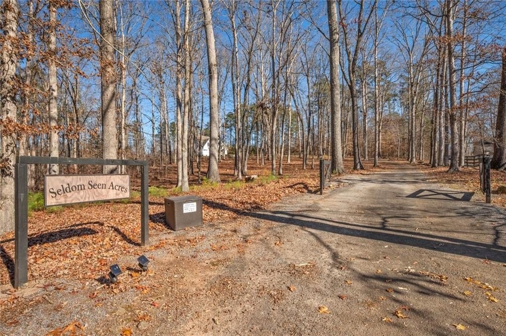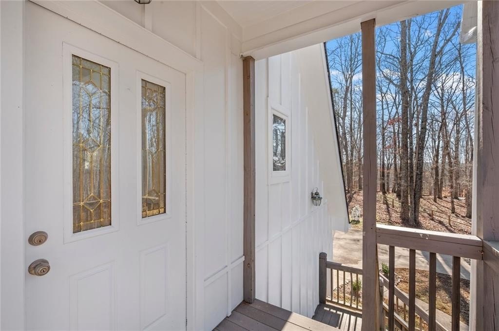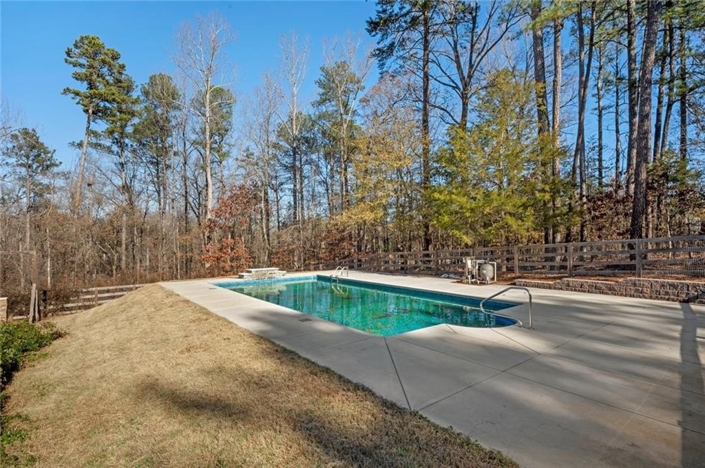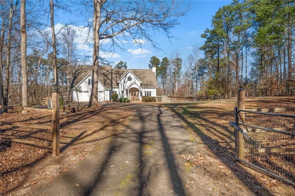 Great private retreat on 5 acres Convenient to Milton and Alpharetta for great shopping and dining. Top rated Cherokee County schools. Lots of outdoor space from the big deck overlooking the oversized inground pool, to several large fenced in area for play and for pets, plus a charming front yard platform deck setting to relax and enjoy nature and sunsets. The main living area features a 2-story vaulted ceiling with stacked stone fireplace facade, tons of natural light throughout, open concept dining space, with patio doors opening to the side deck and back porch, with views to the pool area. The kitchen has great cabinet and counter space and also opens to the living area. Super master on main with a luxurious master bath featuring a double vanity and oversized shower, plus a divine walk-in closet. The second floor features another bedroom and full bath, plus a grand two story artist studio, game room, ball room, or home office space with a separate walkup exterior entrance - guest or teen suite deluxe. The terrace level has a full bath, two possible bedroom spaces, plus a rec/entertainment area and walkout access to the backyard. Guest bed and bath options at the second floor and terrace levels. This is not your "cookie cutter" home. Tons of natural light throughout. Amazing land and setting for this price on a street of multi-million dollar homes on much smaller lots with less privacy.