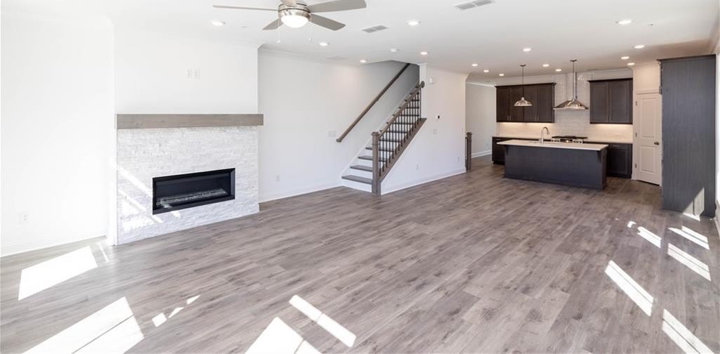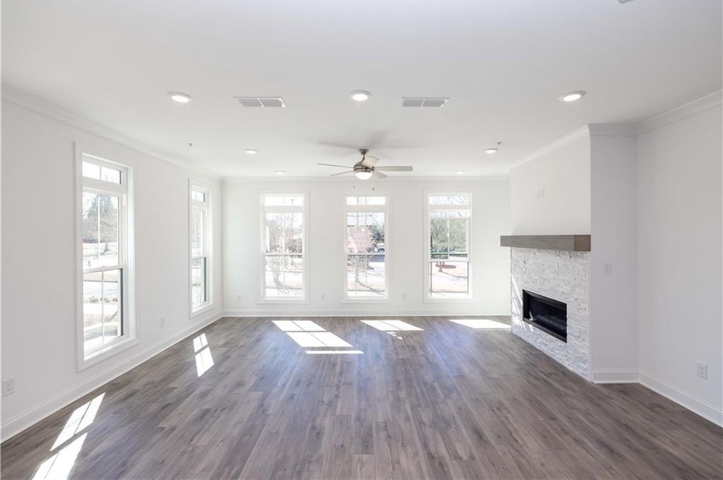SEASON OF SAVINGS - Build your Savings and Unwrap the Joy of a New Home with $45k Promotion! Promotions can be applied towards a price reduction, upgraded appliances, closing cost, Rate-Buy down and more- giving you the flexibility to save where it matters most. Discover the The Benton I by The Providence Group. HOME IS READY NOW! CLOSE IN 30 DAYS! Come tour this 3 story END UNIT Benton I plan featuring 3 bedrooms and 2.5 baths with a stunning and open floor plan with many cool features. Terrace Level Entry opens up to an Office / Media / Work Out / Flex Room, perfect for remote working or entertaining. Slider doors open to the covered patio featuring an outdoor fireplace which allows for a more expansive space on the entry level. Upon entering the main floor, you find an Open Concept Kitchen, Dining and Family Room. The Family Room is flooded with light having 8 big windows. A Ventless Linear Fireplace has beautiful quartzite surround and a box beam mantel to warm the room on chilly evenings. The Kitchen is elegant with a Warm Slate Design Package presenting Calacatta Prado Quartz Countertops, 4x12 tile Backsplash, beautiful stained Cabinets with Crown Molding and soft close doors and under cabinet lighting. Top of the line GE Appliances included a Gas Cooktop, Electrical Oven, Built-in Microwave, Dishwasher and Stainless Range Hood. Just behind the kitchen is a nice relaxing Sunroom with access to a covered Deck. Laundry Room, Powder Room and Closet are also tucked away off Kitchen. This is an END UNIT so you are getting not only beautiful side windows but also a Side Balcony. On the upper level, there are 3 bedrooms with 2 full baths. The primary suite has everything you need with Tray Ceiling and a huge closet big enough to share. An extra feature in the primary bedroom is a little balcony that is perfect for your morning coffee. Lastly, this primary retreat has a spa like bath offering a dual vanity, a Free Standing Soaking Tub and a separate tile shower. 2 Secondary Bedrooms open up to another deck perfect for a breath of fresh air first thing in the morning. A 2 car garage and more unassigned parking spots throughout of the community. Elevate your lifestyle and make Alpharetta your new home. PERFECT LOCATION - walkable to many restaurants and shopping. Easy access to GA 400! Virtual tour of previously built Benton plan. [The Benton I]