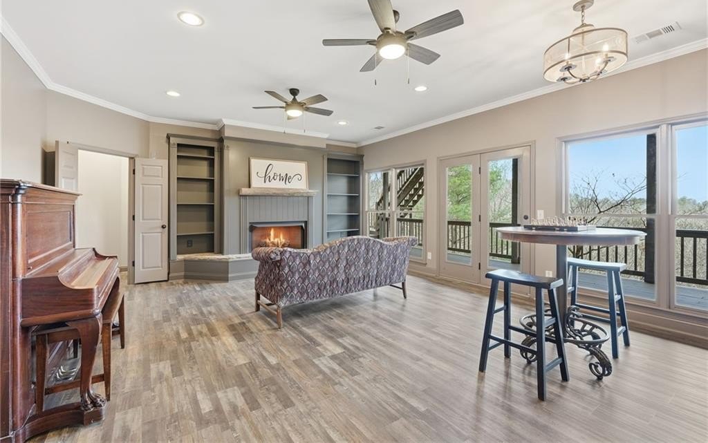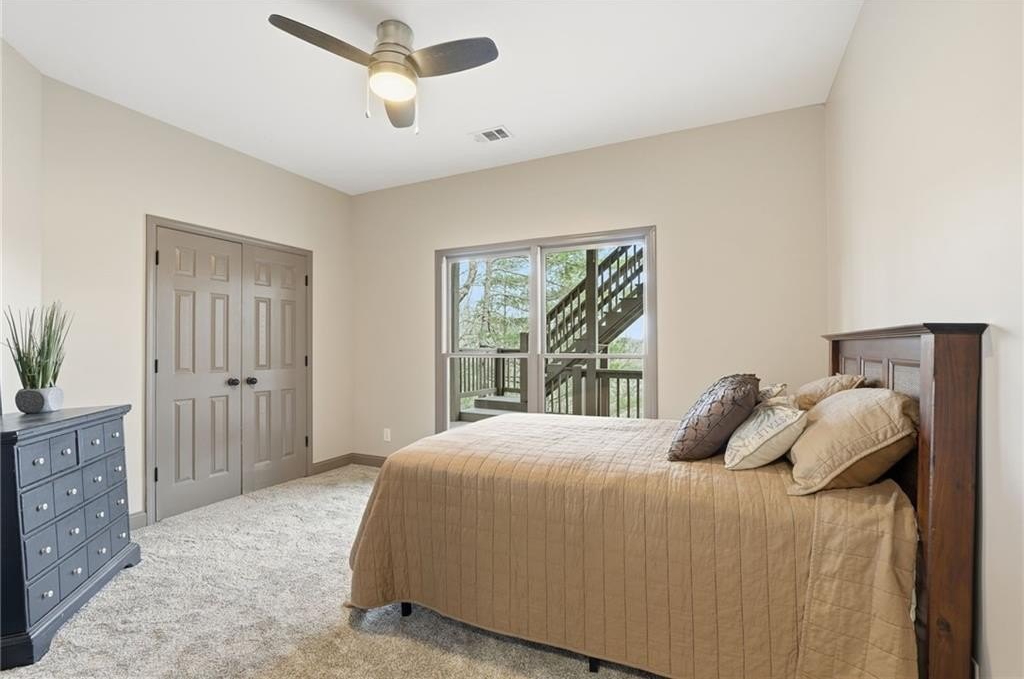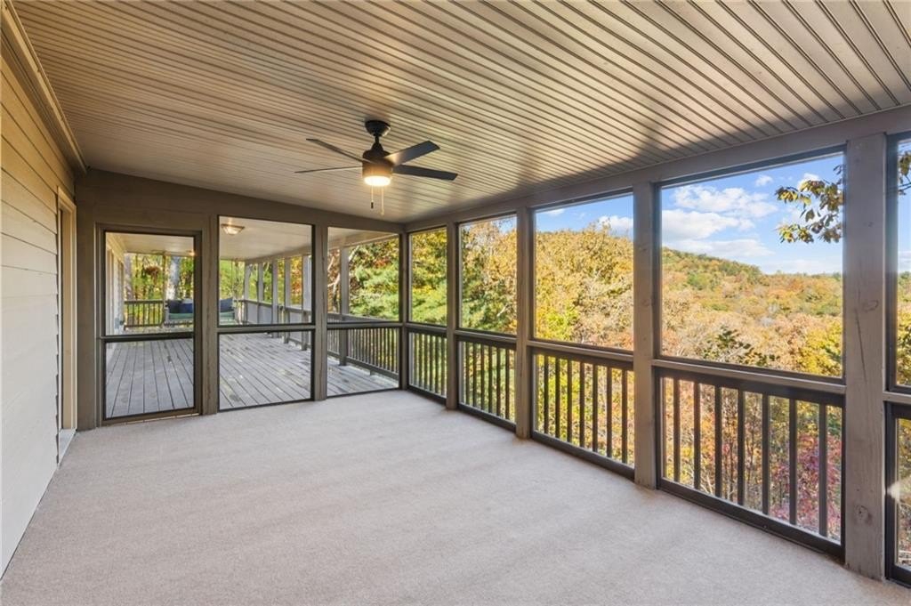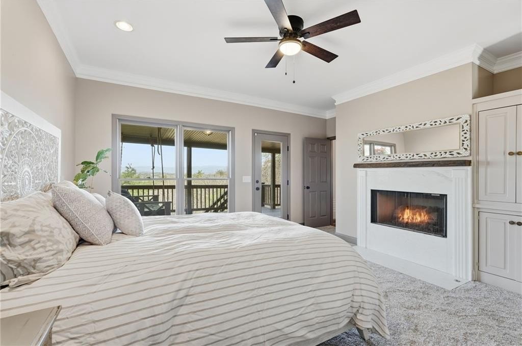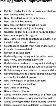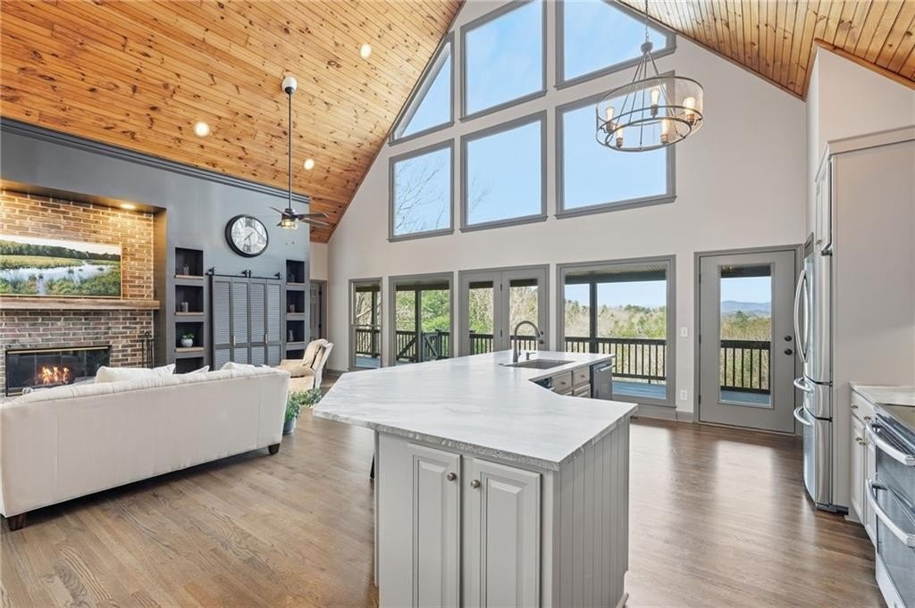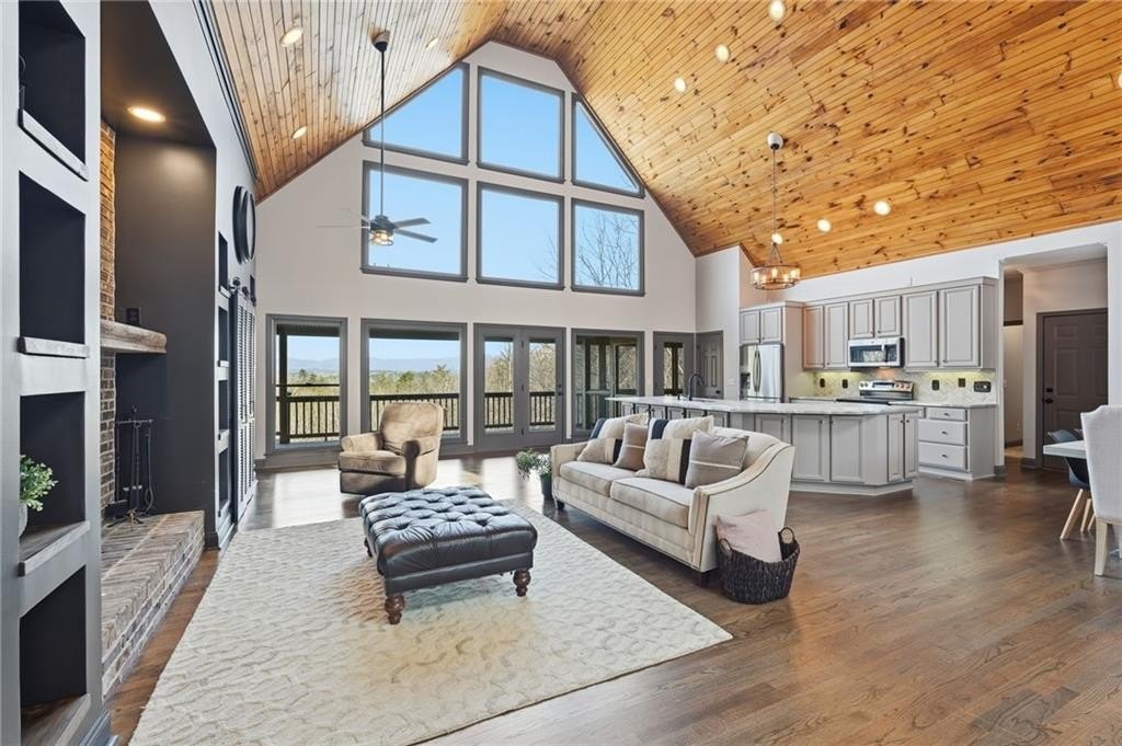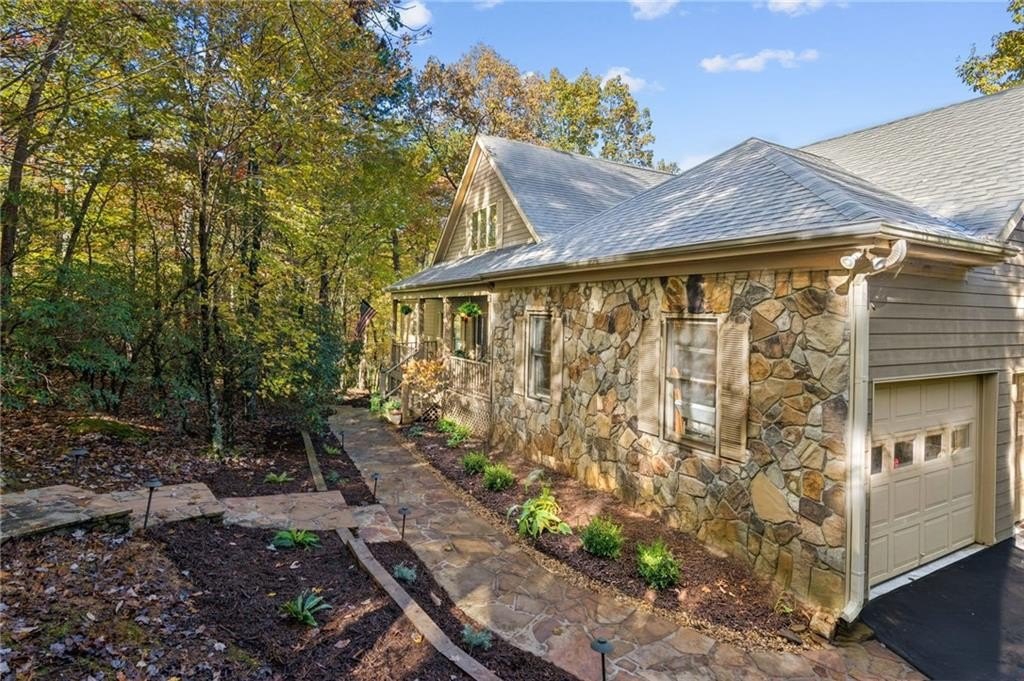 This beautifully transformed mountain home with long range mountain views including Amicalola Falls is ready to welcome you home. Set on 2.42 private acres, this thoughtfully renovated property has been completely updated with every room touched, offering move in ready condition and timeless mountain style. The main level features two large bedrooms, each with en suite bathrooms, including a primary suite with a cozy fireplace that creates a warm and inviting retreat. The open concept kitchen has been updated with leathered granite countertops, an island perfect for gathering, and flows seamlessly into the extra large family room featuring sleek custom built in shelving and refinished and newly installed hardwood floors. New carpet throughout the home, all new bathroom fixtures, and new lighting throughout enhance the fresh, modern feel. Vista pruning has opened the expansive mountain views, allowing you to enjoy the natural beauty from both levels of the home. The terrace level offers a spacious family room with a third fireplace, a wet bar with wine cooler ideal for entertaining, two bedrooms with a Jack and Jill bathroom, and two additional flex rooms perfect for an office, gym, playroom, or extra sleeping space. One flex room includes a private bath and separate exterior entrance with stairway access, making it ideal for an adult child, caregiver, or au pair suite. Two laundry rooms, one on each level, add convenience to daily living. Expansive decks on both levels and a screened porch on the main level provide wonderful outdoor living space for relaxing and watching the wildlife. With new systems throughout, this home is centrally located near Lake Petit and community amenities and is just 5 to 7 minutes from the north gate with multiple access routes, making this mountain retreat easy to love, easy to live in, and truly a place that feels like home. If your agent is not able to show this home to you, no worries. I am happy to show my listings as a courtesy to your agent. Buyer to verify all information and dimensions deemed important.