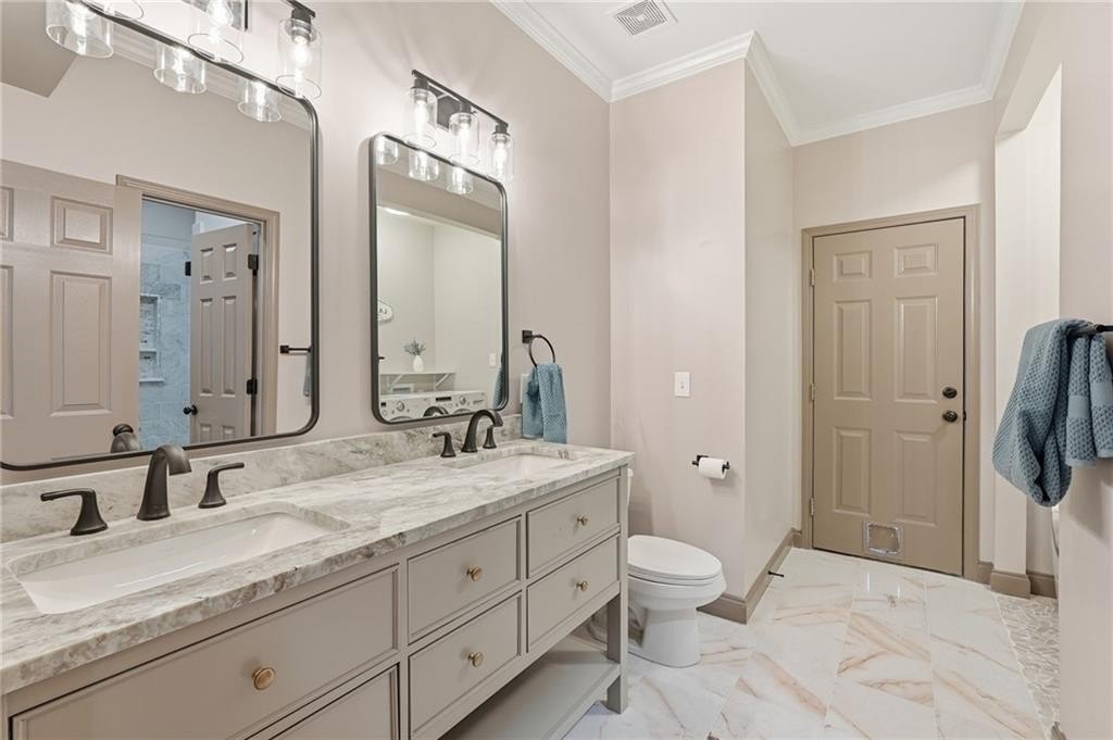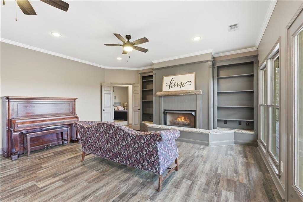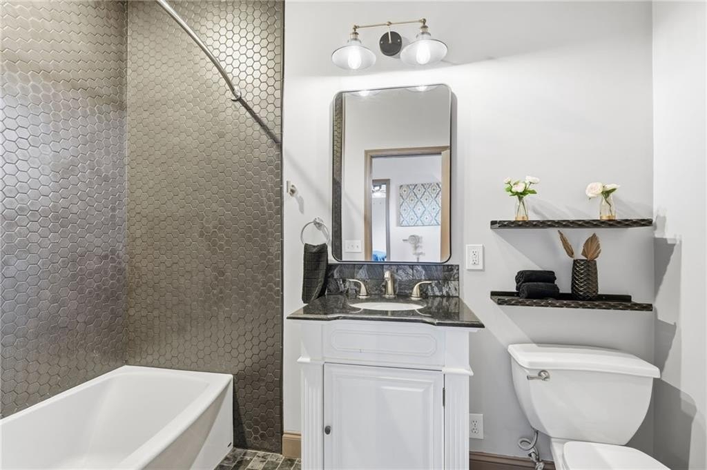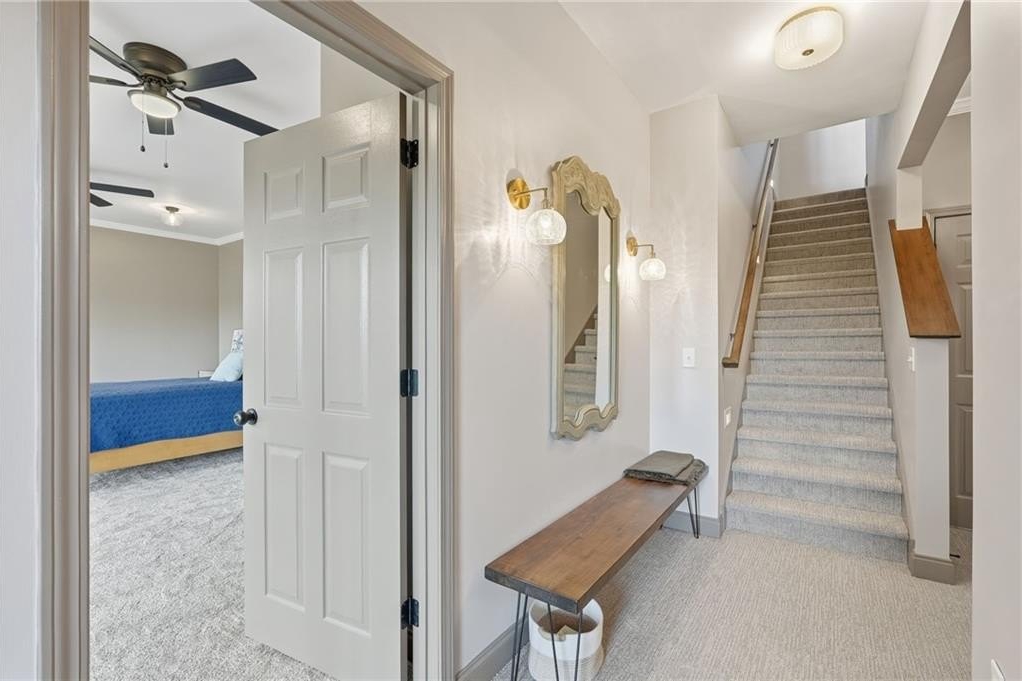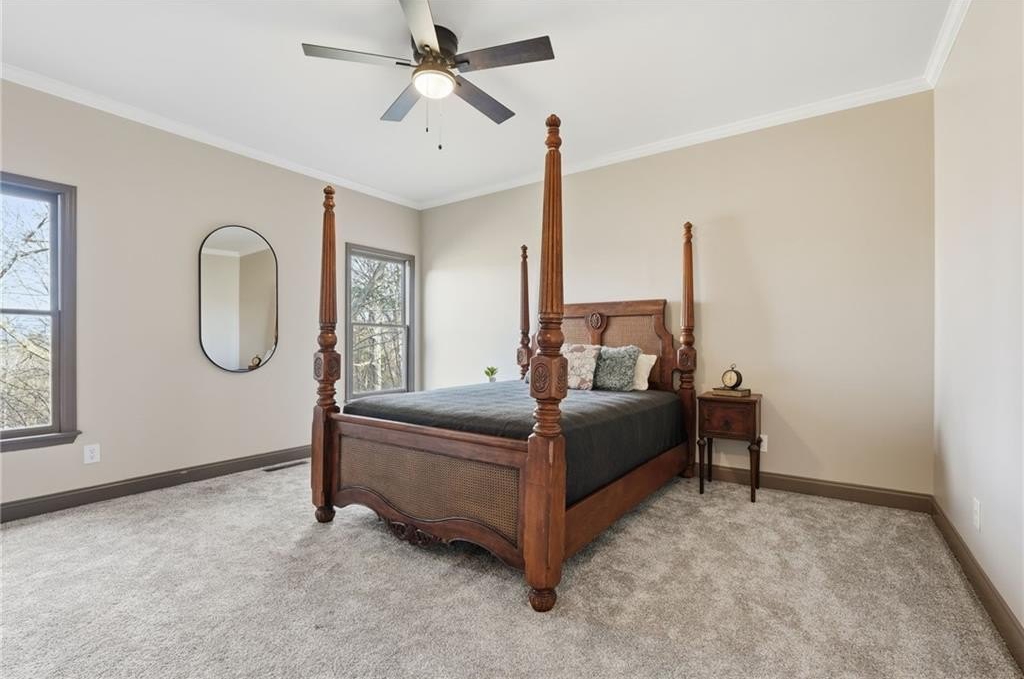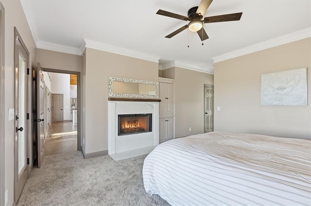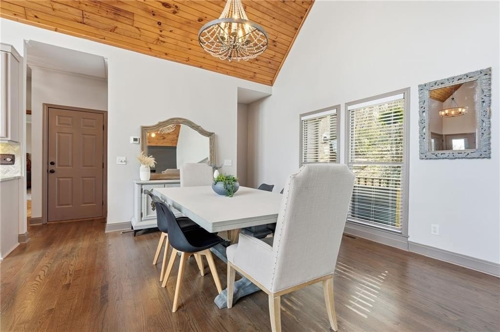 This beautifully transformed mountain home with long range mountain views including Amicalola Falls is ready to welcome you home. Set on 2.42 private acres, this thoughtfully renovated property has been completely updated with every room touched, offering move in ready condition and timeless mountain style. The main level features two large bedrooms, each with en suite bathrooms, including a primary suite with a cozy fireplace that creates a warm and inviting retreat. The open concept kitchen has been updated with leathered granite countertops, an island perfect for gathering, and flows seamlessly into the extra large family room featuring sleek custom built in shelving and refinished and newly installed hardwood floors. New carpet throughout the home, all new bathroom fixtures, and new lighting throughout enhance the fresh, modern feel. Vista pruning has opened the expansive mountain views, allowing you to enjoy the natural beauty from both levels of the home. The terrace level offers a spacious family room with a third fireplace, a wet bar with wine cooler ideal for entertaining, two bedrooms with a Jack and Jill bathroom, and two additional flex rooms perfect for an office, gym, playroom, or extra sleeping space. One flex room includes a private bath and separate exterior entrance with stairway access, making it ideal for an adult child, caregiver, or au pair suite. Two laundry rooms, one on each level, add convenience to daily living. Expansive decks on both levels and a screened porch on the main level provide wonderful outdoor living space for relaxing and watching the wildlife. With new systems throughout, this home is centrally located near Lake Petit and community amenities and is just 5 to 7 minutes from the north gate with multiple access routes, making this mountain retreat easy to love, easy to live in, and truly a place that feels like home. If your agent is not able to show this home to you, no worries. I am happy to show my listings as a courtesy to your agent. Buyer to verify all information and dimensions deemed important.