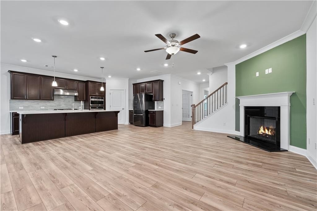 Welcome home to 1204 Tahoe Place, located in the highly sought after active adult community of Hickory Bluffs in the heart of Canton. This charming Craftsman-style cottage is loaded with curb appeal, featuring a covered front porch with stone accents, metal roof detailing, shake finishes, easy to maintain landscaping, and a two-car garage. Step inside to find gorgeous LVP flooring, abundant natural light, and modern finishes throughout. The thoughtfully designed floor plan offers 3 bedrooms, 3 full bathrooms, and multiple bonus spaces, all within an inviting open concept layout. Just off the entry, a beautiful home office with glass French style doors provides the perfect space for working from home, a study, or a cozy den. The main living area seamlessly connects the family room, kitchen, and dining space, creating an ideal setting for everyday living and entertaining. The family room is spacious and welcoming, centered around a cozy fireplace. The chef's kitchen features rich dark wood cabinetry, tile backsplash, stainless steel appliances, a walk in pantry, and a stunning center island with bar seating. Adjacent to the kitchen is the open dining area with views of both the backyard and family room, along with a charming keeping room perfect for a sitting area filled with natural light and a view into the back. The primary suite is a true retreat, offering generous space, a double tray ceiling, a huge walk in closet, and a luxurious en suite bath. The oversized primary bath boasts a walk in tile shower, double vanities, and beautiful stone tile flooring. A secondary bedroom and full bath with a shower/tub combo are also located on the main level. Additional conveniences include a mudroom area off the garage hallway and an oversized laundry room with custom shelving, accessible from both the hallway and the primary suite making laundry a breeze. Upstairs, you'll find a finished loft space with flexible options for a game room, media room, or hobby area. The third bedroom is also located upstairs and features its own en suite bath with a shower/tub combo. Outdoor living is just as impressive, with a covered rocking chair front porch and a relaxing screened in back patio. All appliances are staying, including washer and dryer. Home also features a reverse osmosis water system! Hickory Bluffs offers resort-style amenities, including a stunning clubhouse with game rooms, sitting areas, two full kitchens, a common den, workspaces, meeting rooms, quiet reading nooks, multiple TV lounges, and a gym. Outdoor amenities include sidewalks, tennis and pickleball courts, a covered patio for yard games, and a beautiful pool with sundeck. This vibrant community truly offers it all-and you may never want to leave home. When you do, you'll love the central Canton location, just minutes from shopping, dining, Downtown Canton community events, The Mill at Etowah, and more.