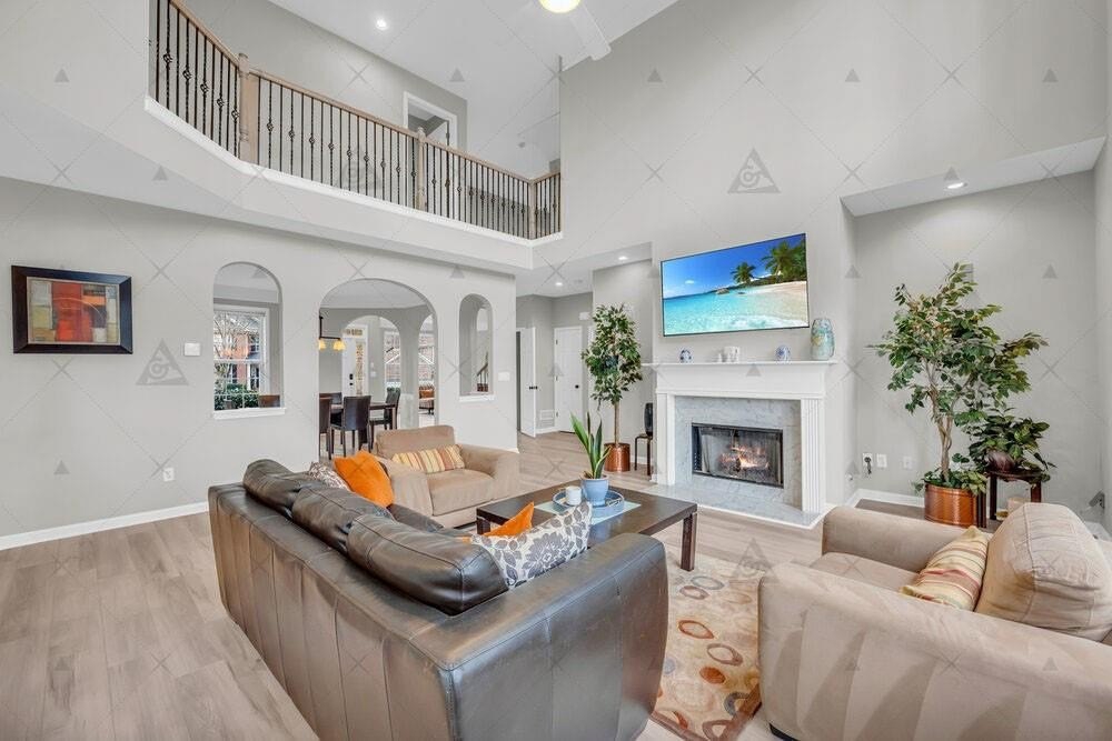 Experience refined living in this beautifully crafted Peachtree Corners residence, where modern design meets comfort. Every space - from the abundant natural light in the grand two-story great room to the thoughtfully finished terrace level reflects a seamless blend of style and function. Nestled on a quiet cul-de-sac lot, this home offers both privacy and prestige, located minutes from the Forum, top-rated schools, parks, and dining-the home perfectly balances sophistication and convenience in one of Metro Atlanta's most desirable swim/tennis communities. Some of the many features include beautifully arched walkways, a main-level office or guest suite, brand new flooring on main and second level, an oversized primary suite with a spa-style en-suite bath and a custom walk-in closet, a separate dining room, convenient upstairs laundry, smart wiring for modern living, dual-level outdoor living with an expansive upper deck and a covered lower patio, and endless potential for future amenities. The finished terrace level is the ultimate entertainment haven featuring a custom Dolby Atmos cinema with a Denon system, dual subwoofers, 12 speakers & 110" 4K projector, Performance stage with retractable screen, Wet bar + dining area, Game zone & entertainment space, large half bath, Built-in life-sized dollhouse play area, Bonus room for gym/office/guest.
