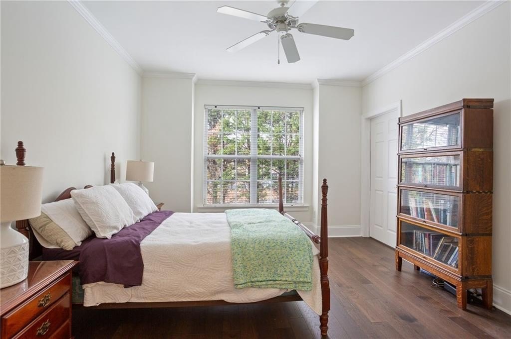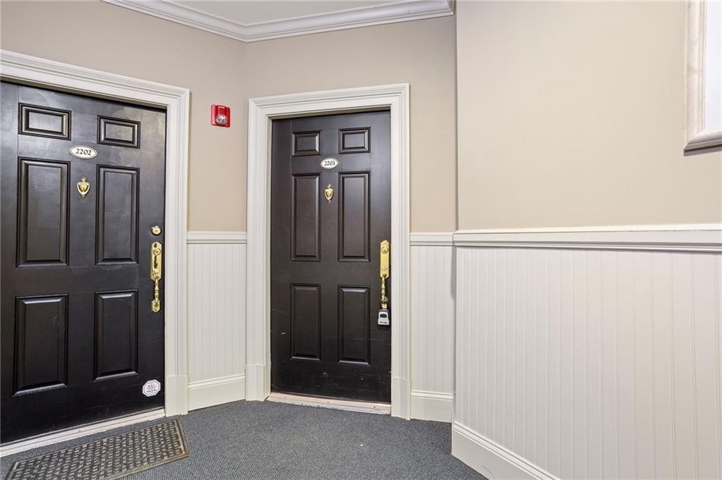 Welcome to 4100 Paces Walk SE #2203, where charm meets convenience in the heart of Vinings. Nestled within the sought-after gated community of Vinings Vineyard, this light-filled 2-bedroom, 2-bath condo invites you to slow down and savor every moment. Step inside to a spacious layout designed with both elegance and ease in mind. The open-concept living and dining areas are anchored by a cozy fireplace and framed by crown molding, dark hardwood floors, and French doors that open to a private balcony, perfect for sipping your morning coffee or unwinding at sunset. A thoughtful built-in shelving nook and chandelier add just the right touch of sophistication. The kitchen is a classic with rich wood cabinetry, granite countertops, and a breakfast bar that flows effortlessly into the main living space, ideal for entertaining or casual weekday meals. Retreat to the generously sized primary suite, complete with a walk-in closet and en-suite bath featuring dual vanities, soaking tub, and separate glass-enclosed shower. Community amenities include a sparkling swimming pool, fitness center, walking paths, and a beautifully landscaped courtyard with fountains that create a serene escape just minutes from the city buzz. Plus, you're just moments from the shops and restaurants of Vinings Jubilee, with easy access to I-285, The Battery, and Buckhead. Whether you're looking for a peaceful place to land or a stylish spot to host friends and family, this is the one that feels like home from the moment you walk in.