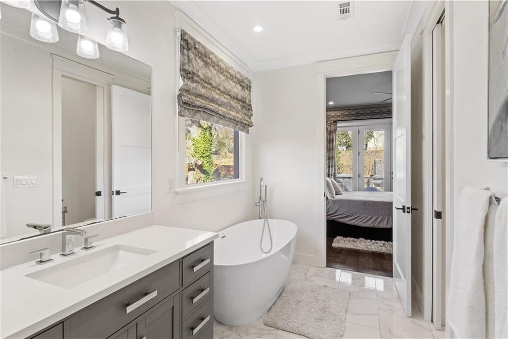 This exceptional 4-bedroom, 2.5-bath luxury residence is a true showcase of refined craftsmanship, thoughtful design, and high-end custom upgrades throughout. From the moment you arrive, the inviting front porch sets the tone for the elegance found within, while the open-concept layout is both sophisticated and welcoming, offering seamless sightlines from the family room into the dining area and gourmet kitchen, perfect for everyday living and effortless entertaining. The kitchen is a statement in both beauty and function, featuring a center island with breakfast bar, striking white cabinetry, stunning countertops, and a beautifully appointed butler's pantry, with every finish carefully selected and enhanced by custom drapery and designer details throughout the home. The primary suite serves as a serene retreat with a spa-inspired bath that includes a luxurious soaking tub, expansive walk-in shower, double vanity, and generous his-and-hers closets, along with private access to a second-floor walk-out balcony that overlooks the backyard oasis. Outdoor living reaches an extraordinary level in the meticulously designed backyard, where over $100,000 has been invested to create a breathtaking private sanctuary complete with a tranquil flowing water feature reminiscent of a gentle river, a pergola with built-in seating and table, a wood-burning fireplace, and a fire pit, all within a fully fenced yard that offers privacy and an ideal setting for both intimate evenings and unforgettable gatherings. Spacious secondary bedrooms provide comfort and flexibility, and with every inch of the home reflecting intentional design and luxury living, this one-of-a-kind property is ideally located within walking distance to the zoo, seamlessly blending upscale indoor living with an unparalleled outdoor experience.
