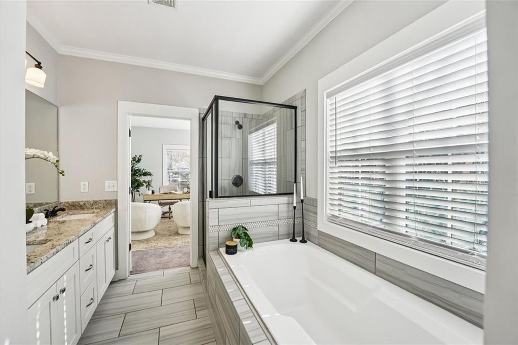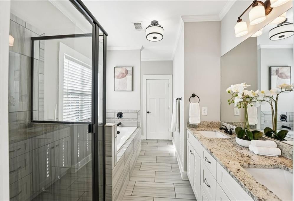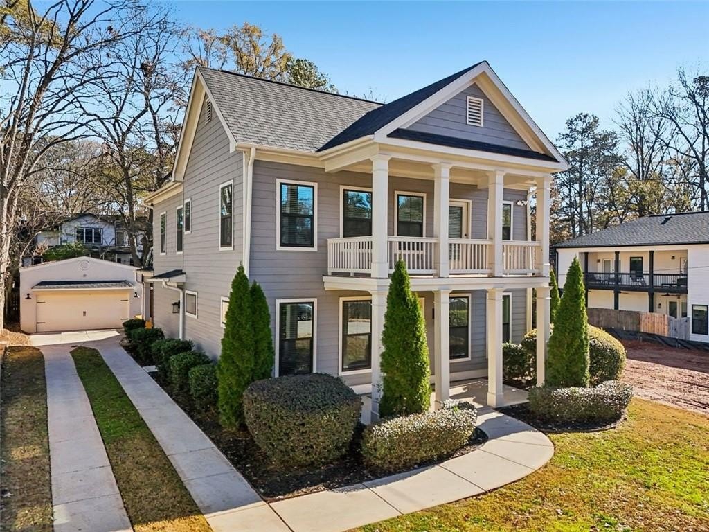 Live in the middle of it all. Two story, 4 bedroom and 4.5 bathroom, including a dual primary suite layout, ideal for flexibility, privacy, or multi-generational living. Which one will you make your retreat? The luxurious main-level primary suite or an oversized upstairs suite with two separate closets, a sitting, and direct access to the upper level porch.The open-concept floor plan is built for both everyday living and entertaining, featuring 10-foot ceilings, custom built-ins, and hardwood floors throughout the living area. The kitchen includes an island and breakfast bar, stainless steel appliances, and a walk-in pantry. Step outside to a fully fenced backyard, perfect for pets, play, or outdoor gatherings. Two welcoming front porches offer additional space to relax and unwind. A detached two car garage for cars and hobbies is a great bonus. Located just minutes from Hosea + 2nd, Oakhurst Village, and neighborhood favorites, with McCoy Park nearby for outdoor fun. This home also sits within a priority neighborhood for Drew Charter School, adding long-term value and appeal.