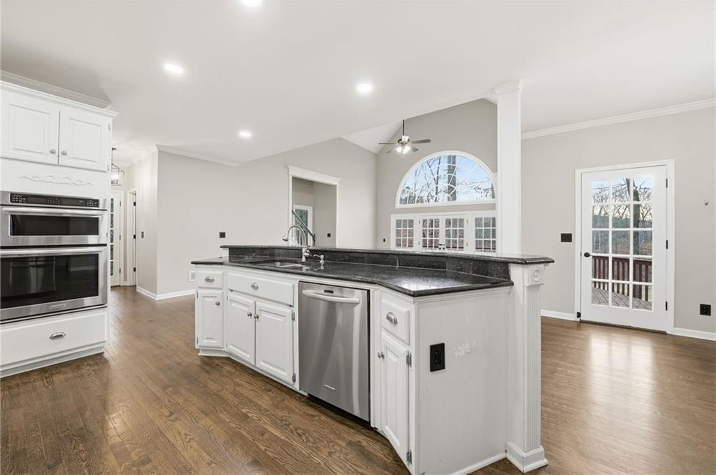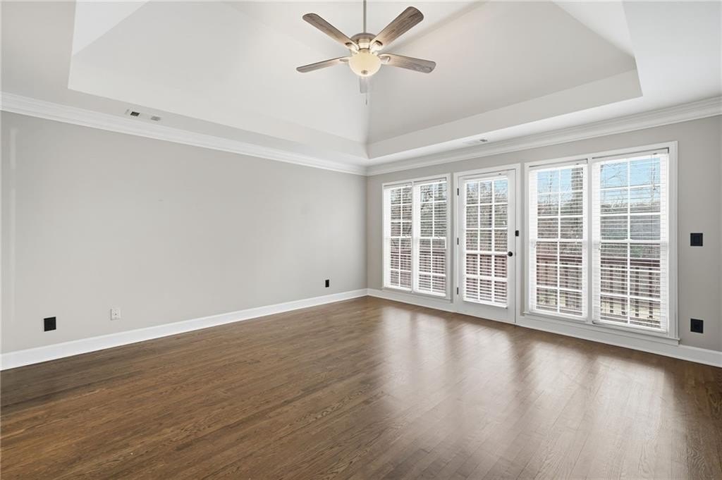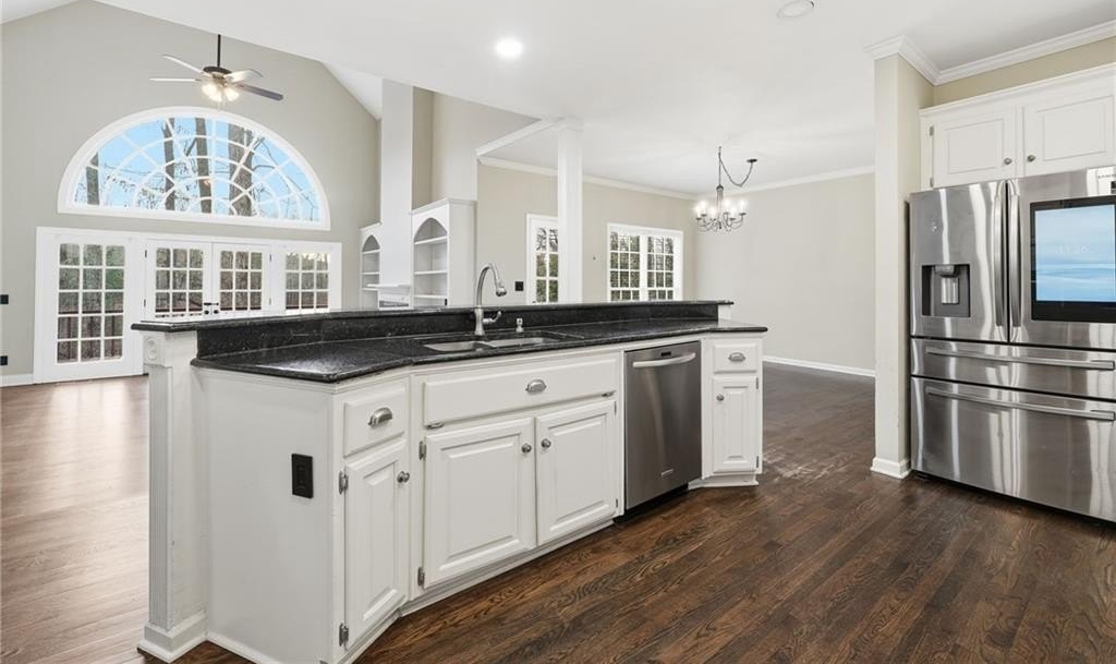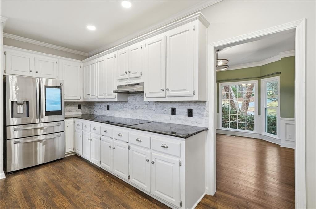 Welcome to this gorgeous traditional home perfectly situated on the 12th hole in the highly sought-after Eagle Watch subdivision of Woodstock, Georgia. Offering approximately 4,564 square feet of living space, 5 bedrooms, and 3.5 bathrooms, this home delivers classic elegance, modern updates, and breathtaking golf course views. Recent upgrades include a newer roof and newer major systems, including HVAC and water heater, providing comfort and peace of mind. Beautiful hardwood floors flow throughout the main and upper levels, while a soaring two-story foyer welcomes you inside. Just off the entry are a formal living room-ideal as a home office-and a formal dining room, perfect for entertaining. The heart of the home is the chef's kitchen, featuring granite countertops, newer stainless steel appliances, a breakfast bar, and a breakfast room, all seamlessly open to the impressive two-story fireside family room-ideal for gatherings large or small. The oversized owner's suite is a true retreat with a vaulted ceiling, upgraded spa-inspired bathroom, his-and-her closets, and a private balcony overlooking the golf course. Upstairs also offers three spacious secondary bedrooms and an expanded, upgraded Jack-and-Jill bathroom. The finished terrace level adds even more versatility with an additional bedroom, full bathroom, and flexible living space, perfect for guests, a media room, home gym, or in-law suite. Eagle Watch is known for its five-star amenities, including golf, swim, tennis, fitness center, clubhouse, and a vibrant calendar of neighborhood events throughout the year. Located in top-rated Cherokee County schools and just minutes from shopping, dining, and convenient interstate access, this exceptional golf course home offers the perfect blend of luxury, lifestyle, and location. This is a rare opportunity to own a golf course home in one of Woodstock's most desirable communities!