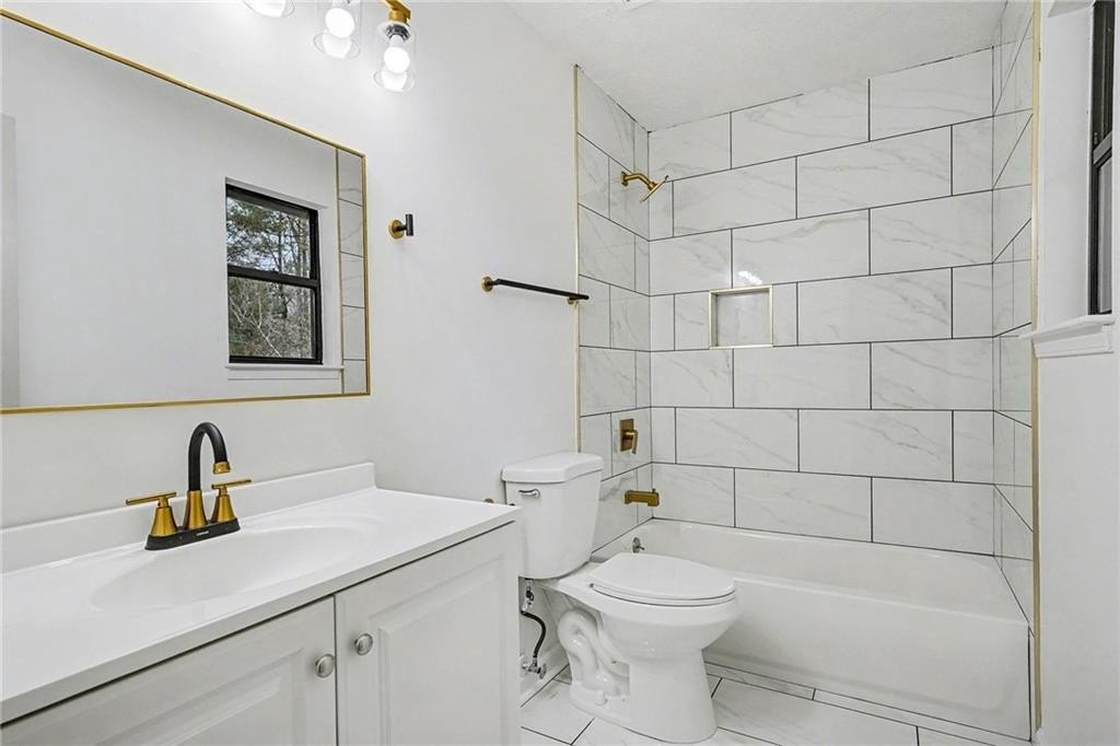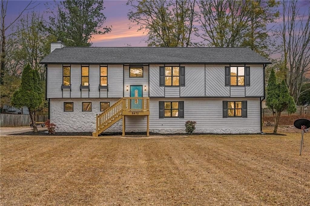 Have someone else pay your mortgage! This beautifully renovated split-level home comes with an income-producing basement apartment or a space to accommodate multi-generational living or long-term guests. The main level features 3 bedrooms and 2 bathrooms, anchored by an impressive living room with 15 ft vaulted ceilings, a striking fireplace, and new lvp flooring throughout. The renovated kitchen showcases quartz countertops, new appliances and seamless flow into the dining area. French doors open to a spacious newly built deck, creating an effortless indoor-outdoor lifestyle. For even more peace of mind and value, the home has a brand new roof. The primary suite offers a true retreat with an oversized walk-in shower and a sun-filled sitting room wrapped in windows-perfect for quiet mornings or creative workspace needs. The lower level expands the home's possibilities with 2 bedrooms, 1 brand-new bathroom, and a full living room, plus a newly renovated kitchenette featuring new cabinets, appliances, and countertops. With vinyl flooring throughout, its own laundry room, and private outdoor access to the patio and yard, this level functions as a fully independent living space. Whether you envision a long-term tenant, short-term rental, in-law suite, or a private guest retreat, the layout is ideal for generating supplemental income or offering comfortable separation.