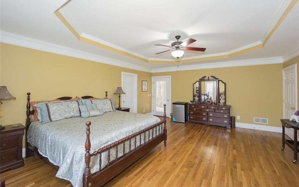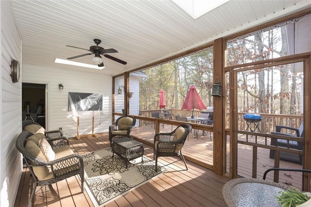 This beautifully maintained, custom-built home features three luxurious levels. The inviting front porch leads into a pristine main floor with hardwood flooring, office/living room, formal dining room, and a family room with a fireplace and double French doors to access the screened patio. The kitchen, complete with an island and breakfast bar. On the main level, you'll also find the spacious owner's suite with access to the screened patio features an oversized bathroom with a charming soaking tub, separate shower and his/her closets, a secondary bedroom, and a full bathroom. The enormous terrace level offers abundant space for entertainment with two separate ways to access the covered patio, along with an additional bedroom and full bath. There is also plenty of room for expansion. The home sits on a large lot providing space for privacy.