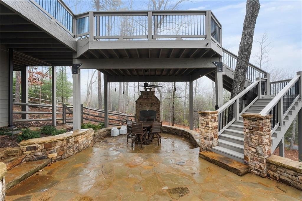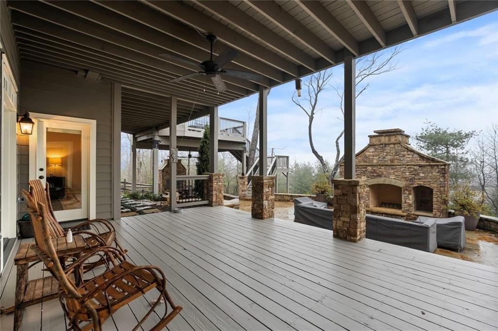 Welcome to "Sunrise Cottage" - a stunning 5 Bedroom home with 5 full bathrooms and 2 half baths located in the sought-after Wildcat neighborhood of Big Canoe just 5 minutes from the north gate equipped with a whole-house GENERATOR!! The LONG-RANGE VIEW of Mt. Yonah can be SEEN FROM EVERY ROOM IN THE HOUSE. This house truly is an entertainers dream with an EXPANSIVE OUTDOOR ENTERTAINMENT AREA that includes custom lighting, a massive fireplace, a pizza oven, a fire pit, dining areas, and space to host large gatherings of family & friends! The house has over 5,000 square feet of living area including a large open kitchen with five-burner gas cooktop, wall oven, built-in microwave, oversized island, walk-in pantry, extensive storage drawers and cabinets. There is a mudroom with laundry facilities off the kitchen. The vaulted living room features an inviting stone fireplace and access to the screened porch which also has a stacked stone fireplace. Each of the 5 bedrooms has a private en suite bath. The primary bedroom, located on the main floor, has an office, large bath with double vanity, large spa-like shower, and walk-in closet. There are two en suite bedrooms upstairs as well as a large loft area perfect as a gathering space for games, conversation, or a getaway for reading or alone time. The terrace level has an entertainment area with a kitchenette, two en suite guest bedrooms, a half-bath, and access to the outdoor living area. There are additional storage areas on the terrace level - including a possible wine cellar! Be sure to notice the fenced-in dog yard for your furry family members! The 2-car, side-entry garage has automatic door openers and is wired with a 220-volt outlet ready for you to install an electric vehicle charger if needed. The upper level of the garage is huge and could be converted to additional living space! The house offers everything you could want but add to that the hiking trails, waterfalls, lakes, nearby dog park, newly renovated club house, access to golf, tennis, pickleball, bocce ball, 3 swimming pools, fitness center (with indoor pool), the fact that it is located just 5 minutes from the north gate, and the natural beauty of Big Canoe and you have PERFECTION!! (NOTE: The Buyer pays a one-time Capital Contribution fee of $5,000; a POA transfer fee of $415; and a water transfer fee of $200 at Closing.)