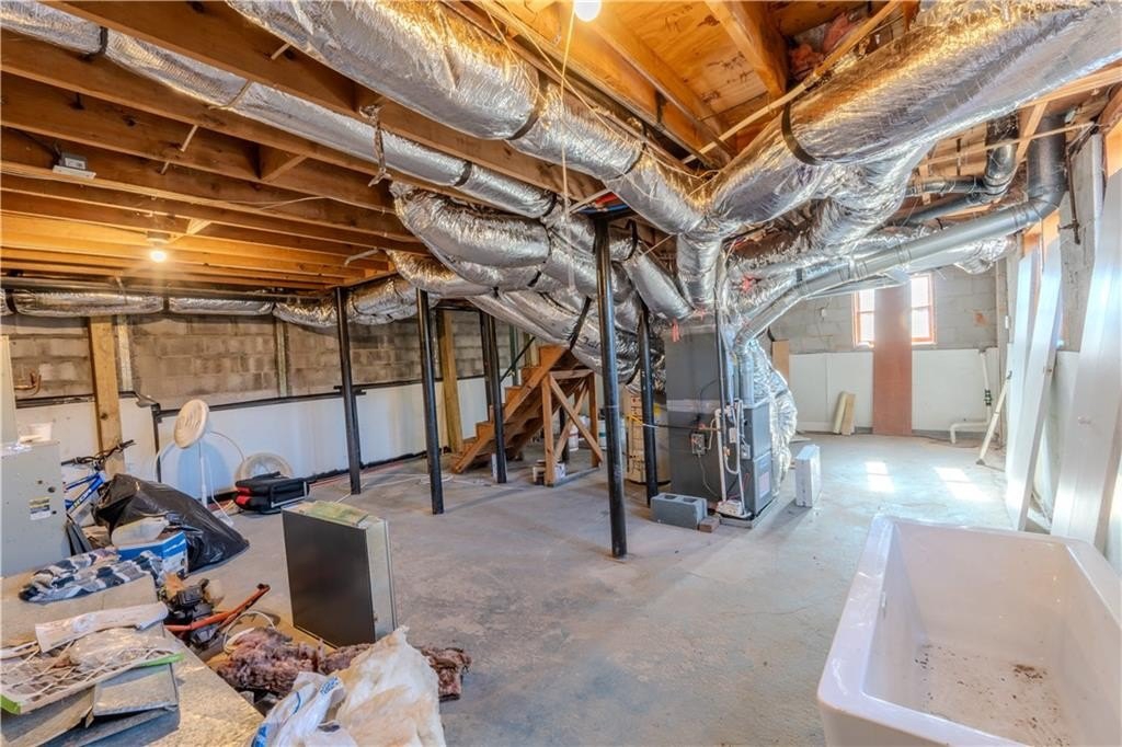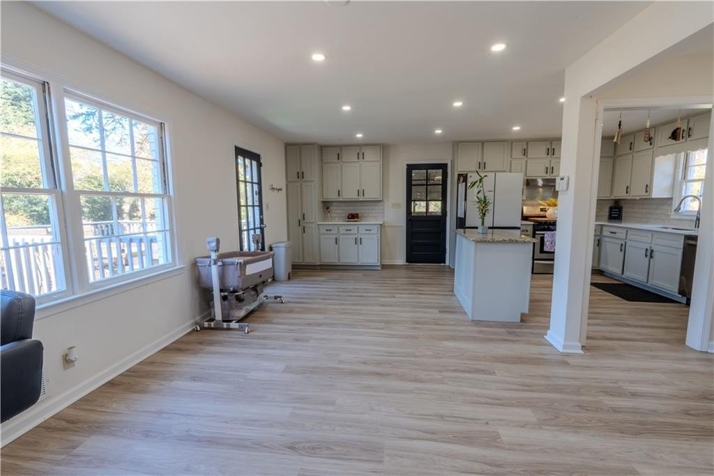 Welcome to this stunningly updated traditional home featuring 3 bedrooms and 2.5 bathrooms, perfectly situated on a spacious half-acre corner lot in the heart of Stone Mountain. As you enter, you'll appreciate the fully renovated interior with brand-new finishes throughout. The main level offers an open-concept layout where the inviting family room flows effortlessly into the upgraded kitchen, complete with quartz countertops, an elegant backsplash, stainless steel appliances, and a modern under-mount sink. This level also includes a refreshed half bathroom, a spacious laundry room, and a formal dining area, all enhanced with new flooring and contemporary lighting. Upstairs, you'll find three comfortable bedrooms with new carpet and updated fixtures. The two full bathrooms have been beautifully remodeled, featuring new vanities, modern lighting, and stylish tile floors. The unfinished basement provides endless possibilities for future expansion or customization.