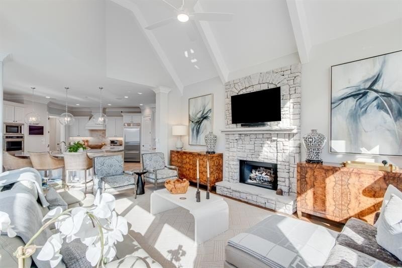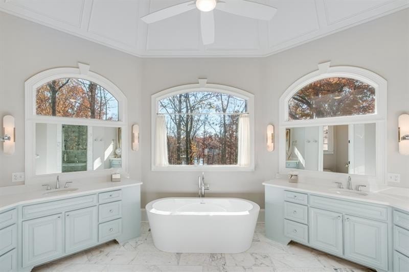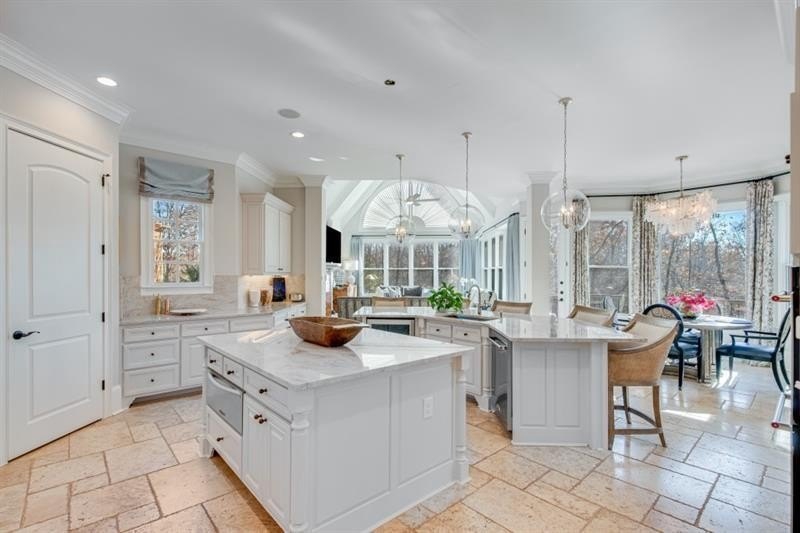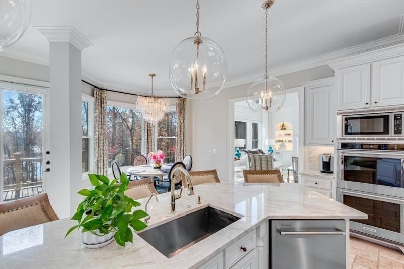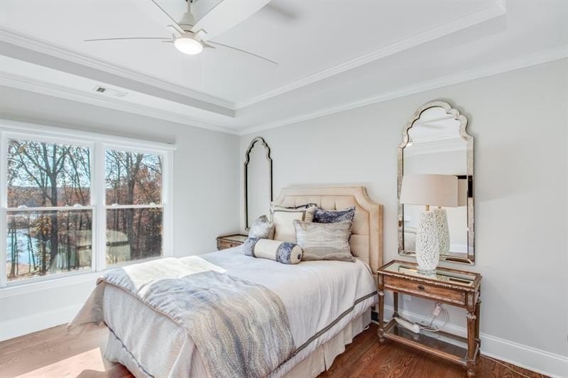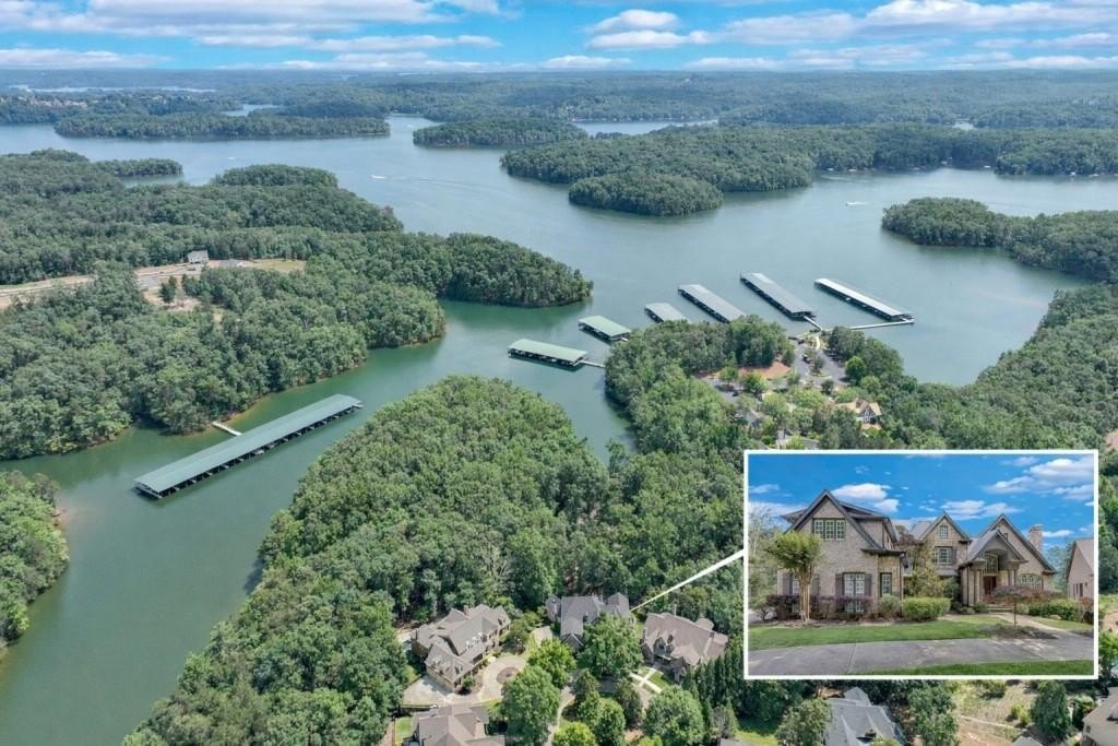 Welcome home to this stunning Lake Lanier estate with a coveted boat slip, year-round views and private lake access. This exquisitely renovated 5-bedroom, 6.3-bath home is perfectly nestled in a private cul-de-sac in the sought-after gated community of Marina Bay. You'll love the year-round lake views, direct access to Lake Lanier, and boat slip, G-6, you can see from your backyard. This home has been meticulously updated, featuring a gourmet kitchen with Quartzite countertops, Sub-Zero fridge, double ovens, gas cooktop, and a spacious keeping room with a stone fireplace and open floor plan. The main-level owner's suite offers vaulted ceilings, a private wet bar, spa-inspired en suite, and dual custom closets. Refined touches include new and refinished hardwoods, fresh light-filled paint, John Richard chandeliers, and remote-controlled blackout blinds. Upstairs includes four bedrooms, three with private en suites and ample storage. The terrace level is made for entertaining: a state-of-the-art theater, theater bar, billiards room, wine cellar, cigar lounge with ventilation, with a bourbon bar and a flex area, perfect for a home gym. Step outside to a covered patio with a built-in grill, fire pit, and 279 feet of lake frontage, perfect for gathering with family and friends or quiet relaxation. Marina Bay offers resort-style amenities including a clubhouse, pool, tennis, fitness center, cobblestone gated entry, playground and community docks. Ideally located near GA 400, Gainesville, shopping, dining, and the North Georgia Mountains. This home is more than a residence, it's a lifestyle. Don't miss it!