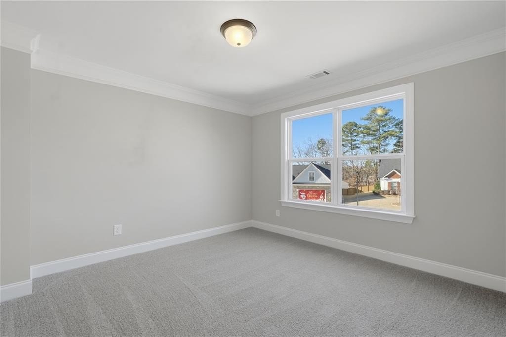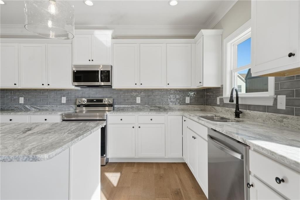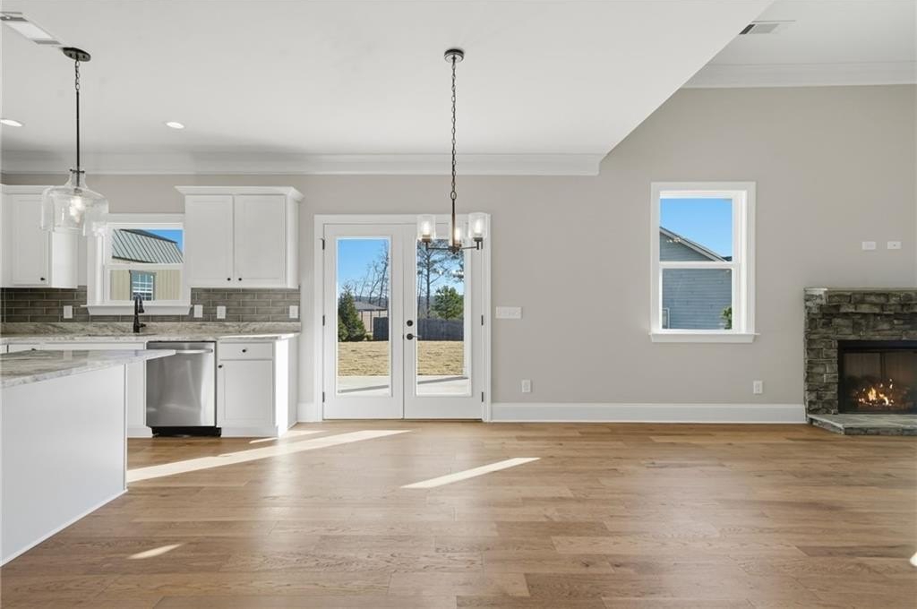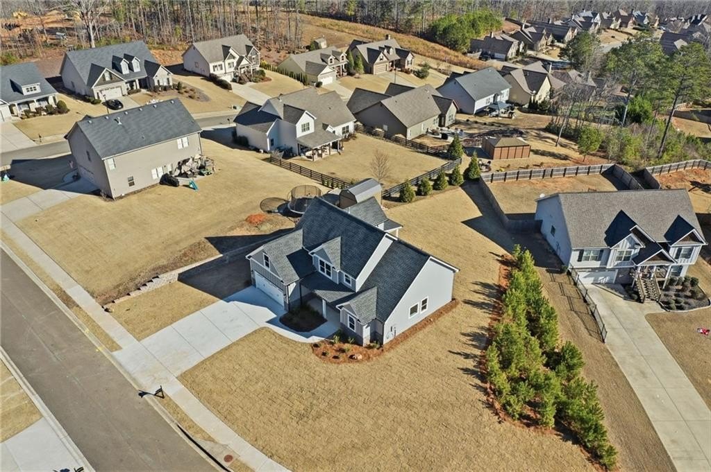 Welcome home to this beautiful new construction featuring a thoughtfully designed master-on-main floor plan and charming curb appeal that makes a great first impression. Step inside to a light-filled family room with a vaulted ceiling and cozy fireplace, seamlessly open to the breakfast area and well-appointed kitchen, perfect for everyday living and entertaining. The kitchen offers an abundance of cabinets and counter space to make meal prep effortless, along with easy access to the garage just steps away for added convenience. For larger gatherings, enjoy a dedicated formal dining room. The owner's suite is located on the main level and features dual vanities, a separate tiled shower, and a relaxing soaking tub. A powder room completes the main floor. Upstairs, you'll find two generously sized secondary bedrooms, a full hall bath, and a spacious bonus room above the garage-ideal for a home office, game room, or even an additional bedroom. The family room leads out to a covered patio overlooking the level backyard, perfect for outdoor relaxation. Located in the desirable Mountain Brooke community, this home is just minutes from Downtown Ball Ground with its charming shops and restaurants. A wonderful opportunity to enjoy modern living in a convenient location!