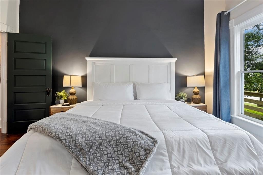 Welcome to The Dobbs, a rare and historic single-family residence opportunity in the heart of Old Fourth Ward offering over 3,700 square feet of living space. Once home to civil rights leader John Wesley Dobbs, this remarkable property blends history, character, and modern flexibility. Located just four blocks from the Atlanta BeltLine Eastside Trail, the home is surrounded by some of the city's best restaurants, breweries, shopping, and entertainment. Even more unique, the property sits directly on the Freedom Trail Path with easy access to Centennial Olympic Park, Mercedes-Benz Stadium, and Downtown Atlanta. Currently configured as a multi-family property, the home offers the option to remain as-is or be converted into a spacious single-family residence. The property is being sold fully furnished, allowing for immediate use or a seamless transition into a personalized single-family layout. The Main Level features 3 bedrooms and 2 full bathrooms, soaring 12-foot ceilings, and updated kitchen and bathroom finishes, creating an open and inviting living environment. The Second Floor offers 2 spacious bedrooms, 2 full bathrooms, and a flexible loft-style living area at the rear of the home, ideal for a media room, home office, guest suite, or additional living space. Professionally designed and thoughtfully curated, the home offers impressive outdoor living spaces in both the front and rear yards, surrounded by lush, resort-style landscaping that creates a private urban retreat. The driveway is currently fenced but can easily be converted back to a standard driveway, providing parking for up to four vehicles. Additional easy street parking is available on both John Wesley and Howell Street. This is a truly rare opportunity to own a historically significant property in one of Atlanta's most sought-after neighborhoods, offering walkability, character, and long-term value in the heart of Old Fourth Ward.