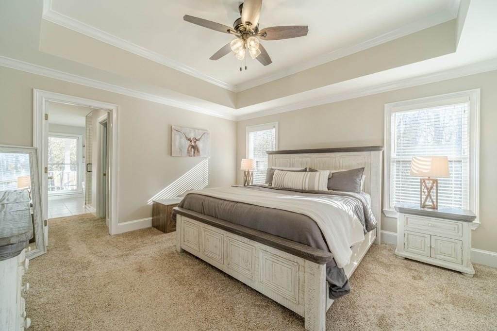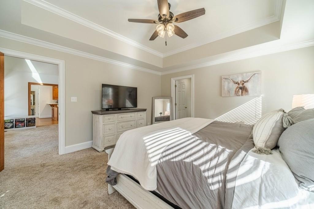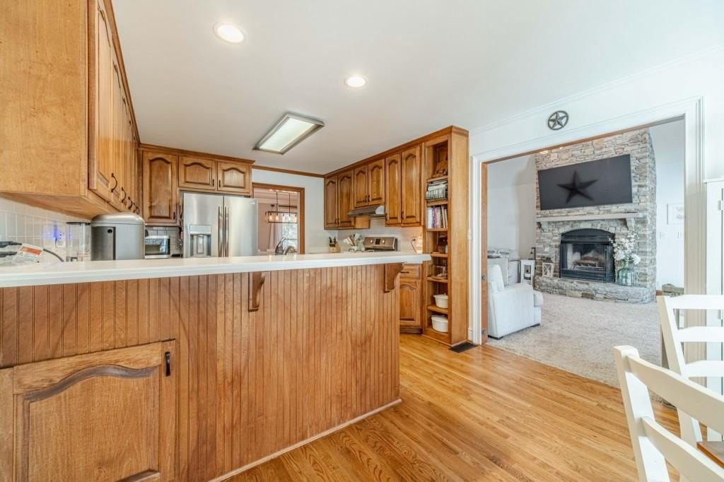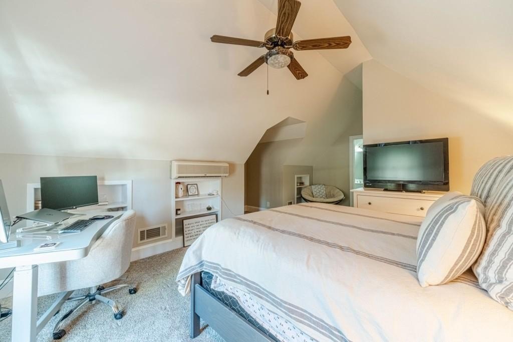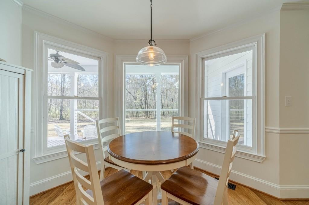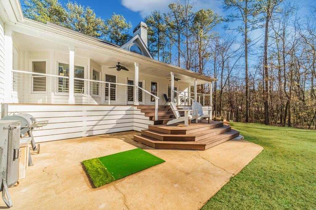 Have you been searching for a ranch home on acreage with no HOA? This is it. Situated on 4.8 gated acres of beautiful private property, this home offers space, versatility, and charm. The home features a two-car side-entry garage, plus a separate detached two-car garage with an office. Behind the detached garage is a fenced dog run and two chicken coops-perfect for chickens, goats, or other animals. Enjoy the large rocking-chair front porch and a covered rear deck with a new wide staircase leading to a level backyard. Mature trees provide wonderful privacy throughout the property. The main level offers three bedrooms and two full baths, both of which have been updated with tasteful, modern finishes. The oversized dining room easily accommodates a table for ten to twelve. The great room features a stacked-stone masonry fireplace with a propane starter and soaring vaulted ceilings. The kitchen includes abundant solid wood cabinetry, solid surface countertops, and a breakfast room with a bay window overlooking the backyard. The primary suite offers a large walk-in closet, double tray ceiling, and direct access to the rear deck. Built-in bookshelves are found in four rooms throughout the home. The main-level laundry room includes a sink and space to add an additional toilet. Upstairs is a bonus room with its own full bath, large walk-in closet, attic access, and a charming Romeo and Juliet balcony. Additional features include low utility costs with septic and well water, many Champion energy-efficient replacement windows, an 8-year-old roof, a new water heater, fresh neutral interior paint, HardiPlank exterior siding, and HVAC ductwork replaced in 2021. Plenty of storage throughout, plus a crawl space with a vapor barrier and a sump pump. The house is all electric; however, there are two propane tanks installed. One tank is for the range, and one is for the fireplace starter.