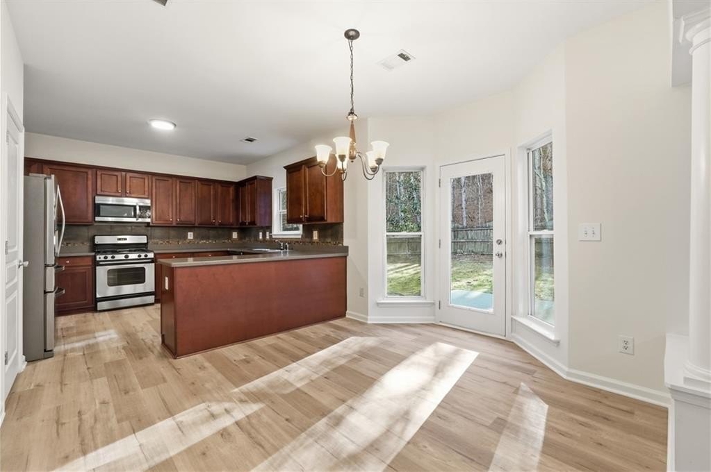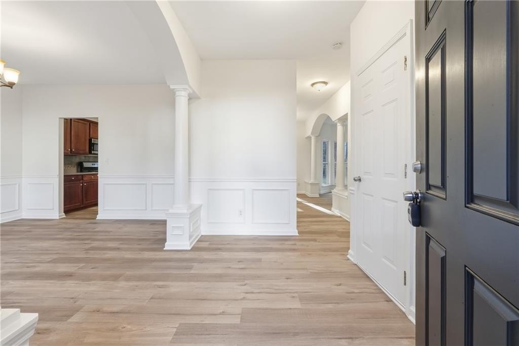 Celebrate 2026 as you step into your new home. This home has the makings for a perfectly cozy vibe from the moment you walk in as you add your personal touches. This 4 bedroom is just the right fit as step in and are greeted with a beautiful accent wall with arched entry into what can be your formal dining room or addition living space. The entry also flows perfectly into your family room, eat-in kitchen, & kitchen. Upstairs you will find a large primary bedroom and bath with separate tub and shower and two spacious closets. You will also find 3 additional bedrooms, one of which is extremely oversized with so much opportunity to create the space your family needs. Outside you will find a patio, fenced in backyard and lots of privacy behind you and no neighbors to your left. Updates include roof under 2 years old, new LVP flooring on mail level and carpeting upstairs. The house has also been painted inside providing a very neutral canvas for you to add your personality. Accessibility to 575 is perfect and shopping is just minutes away.
