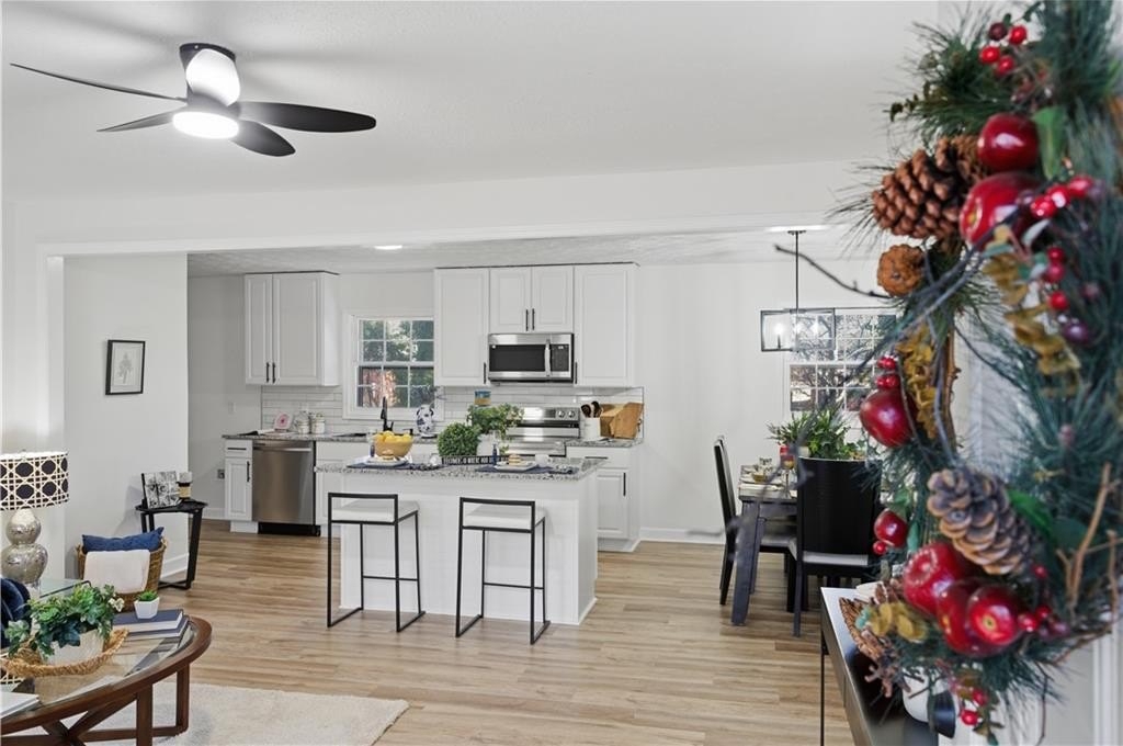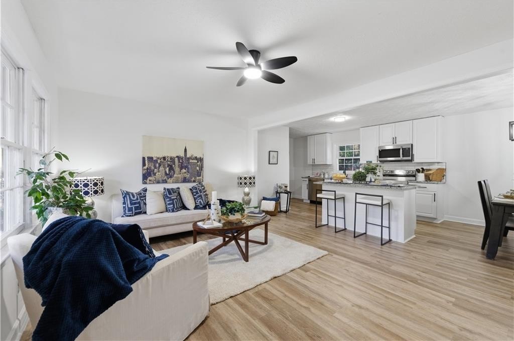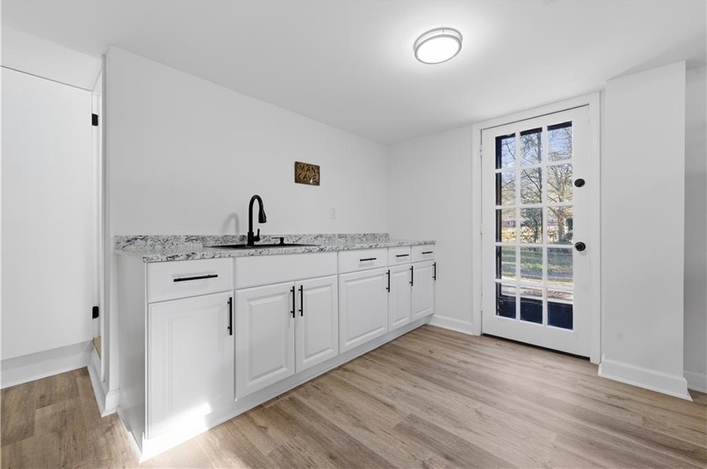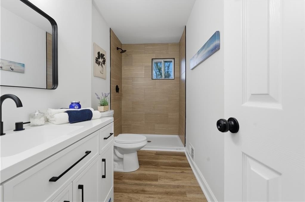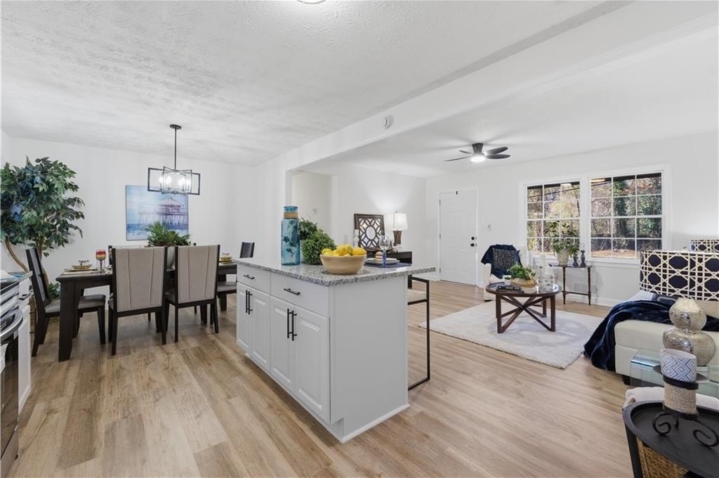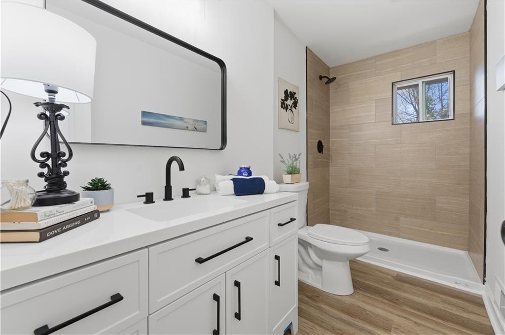 Welcome to this beautifully renovated home offering exceptional space, flexibility, and modern comfort in a peaceful Powder Springs setting. From the moment you arrive, you'll appreciate the charm, privacy, and thoughtful updates that make this property truly stand out. Inside, the home features a spacious and open layout designed for both everyday living and entertaining, with high ceilings, recessed lighting, and quality finishes throughout. The kitchen is a true highlight, offering an open-concept design with ample cabinetry, generous counter space, a large island, pantry storage, and seamless views into the main living areas-perfect for gatherings, family meals, and entertaining with ease. Multiple living and dining spaces provide flexibility for formal occasions, casual lounging, or home office needs. The bedroom layout is ideal for privacy and comfort, featuring a split-bedroom plan and oversized rooms, including a spacious primary suite with a well-appointed bathroom offering a soaking tub, separate shower, and modern finishes. Additional bedrooms are generously sized and adaptable for guests, work-from-home setups, or multi-generational living. The finished basement expands the living space even further, offering endless possibilities for a media room, game room, gym, guest suite, or additional living quarters, with both interior and exterior access. Outdoor living is equally impressive, featuring a deck, porch, and a private backyard with room to relax, entertain, or enjoy the surrounding natural setting. Located in a quiet yet convenient area, this home offers easy access to shopping, dining, parks, schools, and major highways, while still providing the space and privacy many buyers seek. Fully renovated and move-in ready, 4711 Brownsville Road delivers comfort, functionality, and long-term value in a desirable Powder Springs location.