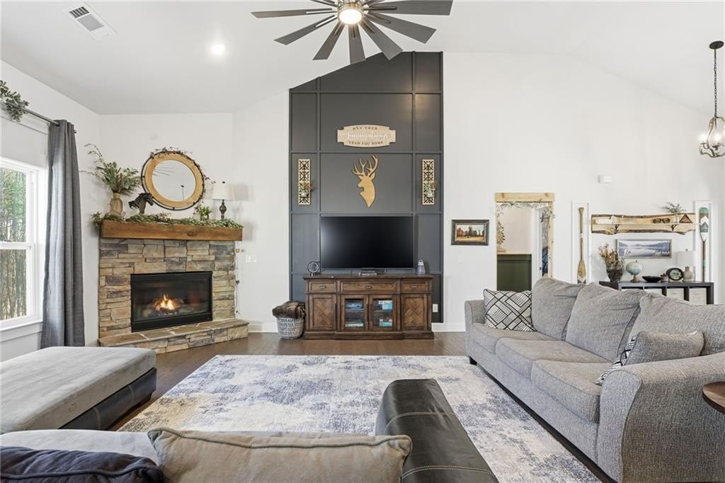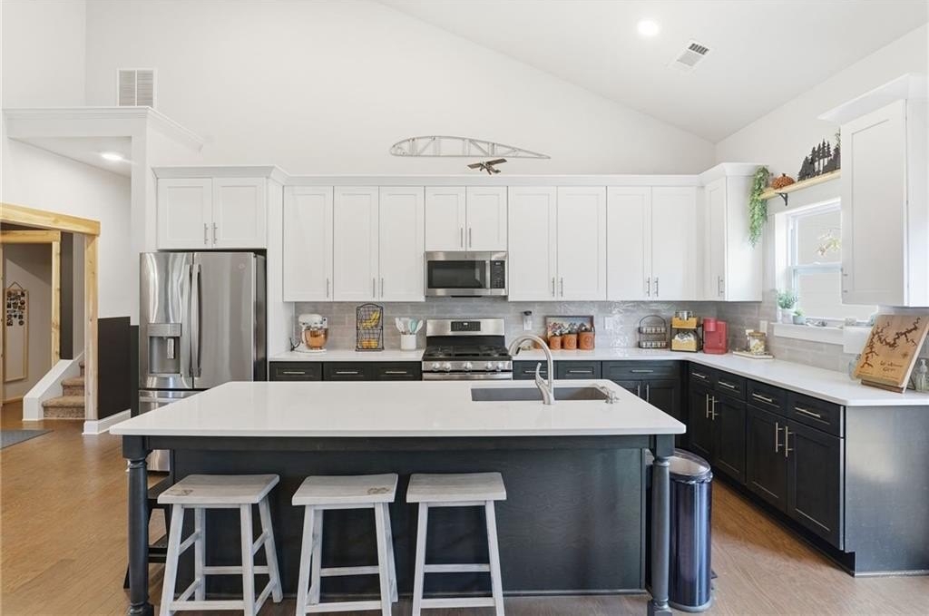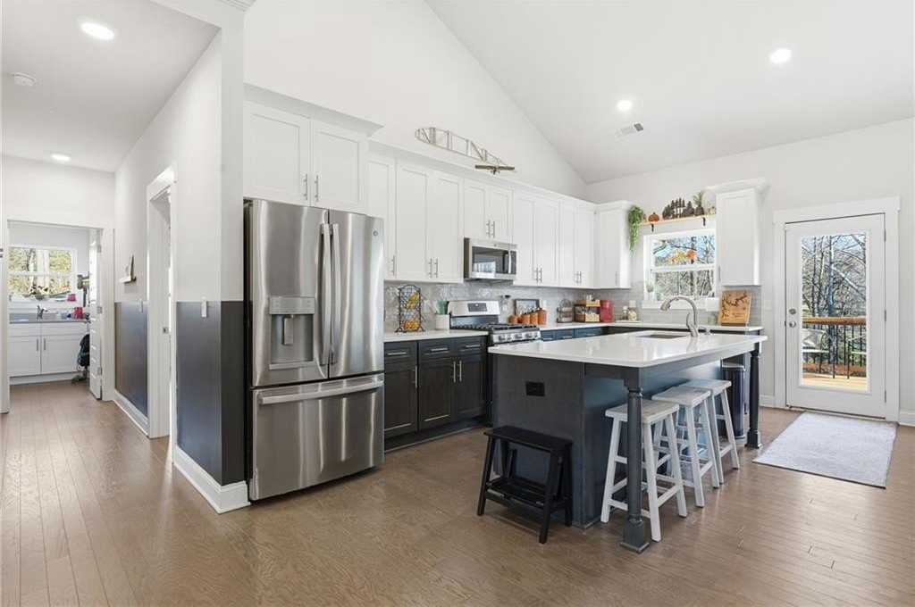 Welcome to a rare opportunity to own a nearly new 2022 home on 1.23 private acres in Acworth. It's perfectly positioned minutes from I-75 while offering the space, privacy, and outdoor living today's buyers crave. This beautifully designed 4-bedroom, 3.5-bath home blends modern comfort with thoughtful functionality. The open-concept main level is filled with natural light and features a spacious living area ideal for everyday living and entertaining alike. The kitchen flows seamlessly into the main living space, creating the perfect setting for hosting gatherings, holidays, and casual evenings at home. Upstairs, generously sized bedrooms provide flexibility for family, guests, or a home office. The primary suite offers a true retreat with ample space and a spa-like bath, while additional bedrooms and bathrooms ensure comfort and privacy for everyone. Step outside and enjoy what truly sets this property apart. Over an acre of usable land with room to relax, entertain, play, or simply enjoy the peace and privacy that's hard to find. Whether you envision outdoor gatherings, a future pool, garden, or quiet evenings under the stars, this backyard delivers endless possibilities.