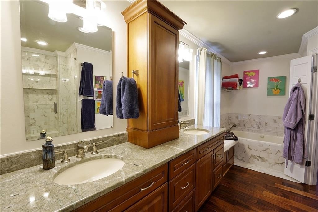 Beautifully refreshed home in the highly sought after Lassiter High School district, offering approximately 3,000 square feet of comfortable and versatile living space. The main level features a primary suite on the main, hardwood floors and a lightfilled layout with excellent flow for everyday living and entertaining. The kitchen has been tastefully updated and opens seamlessly to the family room with fireplace, creating a warm and inviting gathering space. Upstairs offers additional bedrooms and flexible space while the finished terrace level provides valuable bonus living area with exterior access ideal for guests, recreation, or a home office. Step outside to enjoy a beautifully landscaped yard with established perennials, garden areas and outdoor living spaces, creating a peaceful and welcoming setting. Located in a desirable swim/tennis community close to shopping, dining, and top East Cobb schools, this home is truly move-in ready.