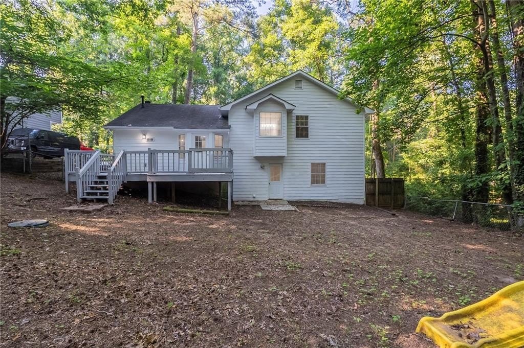 Welcome to 230 Mimosa Lane, a beautifully refreshed split-level home offering comfort and style throughout. The living area features soaring ceilings and a striking stone fireplace, creating a bright, inviting space. The updated kitchen shines with new quartz countertops, painted cabinets, and stainless steel appliances, while new LVP flooring and carpet add a clean, modern feel. Upstairs includes a spacious primary suite with a soaking tub and separate shower, plus two additional bedrooms. The lower level offers a large family room and fourth bedroom, perfect for guests or a home office. Enjoy outdoor living on the back deck overlooking a fenced yard, along with fresh interior and exterior paint and a new garage door-all in a lake community close to schools and shopping.