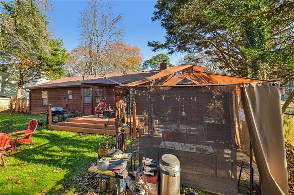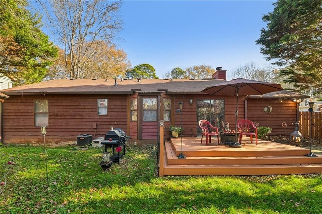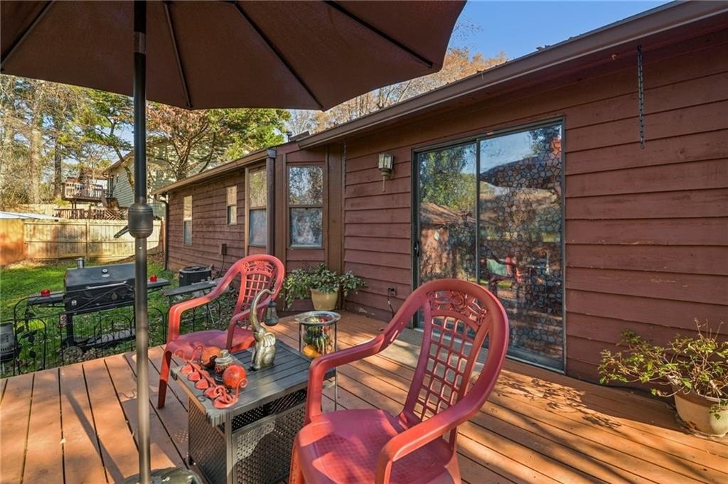 A spacious yard welcomes you to this charming ranch-style home! Inside, the living room features vaulted ceilings and beautiful slate tile floors, offering both warmth and easy maintenance. A stunning stone fireplace creates a cozy focal point. The breakfast bar opens to a bright kitchen with ample cabinet and counter space, along with an inviting breakfast room. Retreat to the large primary suite featuring an en-suite bath with a modern pedestal glass sink. Two additional spacious bedrooms and a full bath provide comfortable accommodations for everyone. A dedicated laundry room adds everyday convenience. Step outside to a fully fenced backyard oasis-perfect for entertaining-with a large deck for grilling, patio area, and space for a firepit. The property also includes a workshop for hobbies or storage. Recent updates include a new roof, gutters, and water heater. Conveniently located just 2 miles from Stone Mountain Park. Don't miss your opportunity to tour this home today!