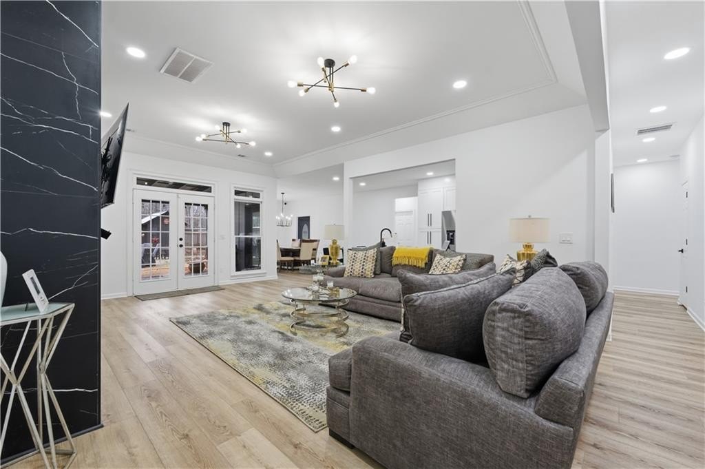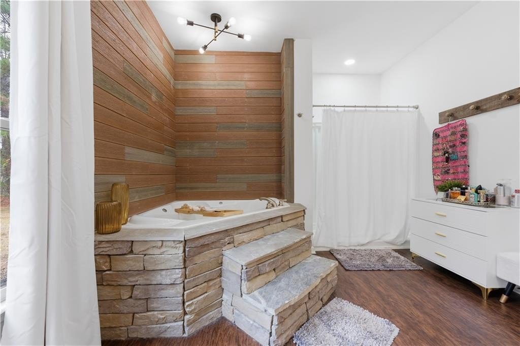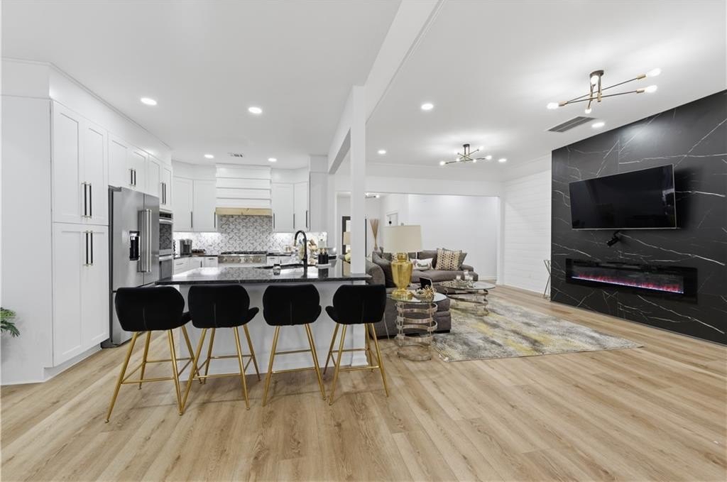 Welcome to a private, gated ranch retreat where space, comfort, and freedom come together on 5 fully fenced acres. This beautifully renovated home blends modern luxury with timeless charm, offering a lifestyle defined by privacy, elegance, and possibility. From the moment you arrive, the gated entrance sets the tone. This is more than a home. It is a sanctuary. Inside, you will find 4 spacious bedrooms and 2 full bathrooms, with the primary suite conveniently located on the main level. Two additional versatile rooms provide endless possibilities such as a home office, gym, creative studio, or additional bedrooms, allowing the home to evolve with your lifestyle. The main living areas feature updated LVP flooring and a striking modern fireplace, creating a sophisticated focal point for gathering and relaxing. The heart of the home is the brand new, fully remodeled kitchen designed to impress with exotic granite countertops, stainless steel appliances, double wall ovens, and an oversized walk in pantry measuring 18x10, perfect for both entertaining and everyday living. The spacious dining room and primary bedroom open directly to a large covered patio with stamped concrete, creating seamless indoor outdoor living ideal for slow mornings, sunset dinners, and unforgettable moments. The oversized primary suite offers space for a sitting area, forming a true retreat. The spa inspired primary bathroom includes a double vanity, large jetted tub, separate shower, an expansive walk in closet, and an adjacent laundry room thoughtfully designed for comfort and flow. Two secondary bedrooms share a Jack and Jill bathroom, while a private bedroom above the garage features its own mini split system, perfect for guests, extended family, or a private workspace. Outdoors, the property continues to deliver. Enjoy a fenced garden area with well water access, irrigation system, and chicken coop, supporting a lifestyle of sustainability and connection to the land. For those needing exceptional storage or workspace, the oversized detached garage is equipped with water, power, air compressor plumbing, and five roll up doors including two 12 foot electric doors and three 10 foot doors. An additional 8 bay open air storage area includes water and power, along with a full RV hookup featuring water, power, 30 amp service, and clean out. The home is serviced by county water, with the added benefit of well water, offering flexibility and peace of mind. Extensively renovated and meticulously maintained, this property offers far more than meets the eye. It is a place where you can slow down, breathe deeper, and truly live. A rare opportunity. This is a must see to fully appreciate.
