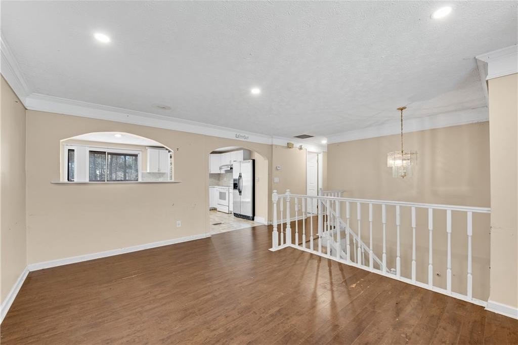 Bring your imagination to this Ryan Homes Resale on oversized 0.85 acre wooded lot! This home is also one of the largest SQ FT plans in the community! SOLD AS-IS with no repairs - will not pass for FHA or VA financing. Two-story foyer opens to upper living room w/updated recessed lighting and double crown molding. The kitchen also features updated recessed lighting and has access to the rear covered porch. Primary on main w/private bath + two additional secondary bedrooms share a hall bath. The finished terrace level has the laundry room, rec room w/fireplace, flex room, 3rd full bath, two secondary bedrooms and access to the HUGE backyard with two storage buildings.
