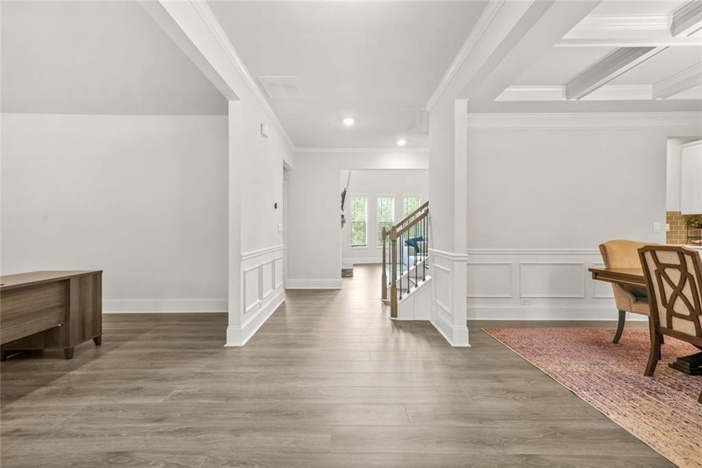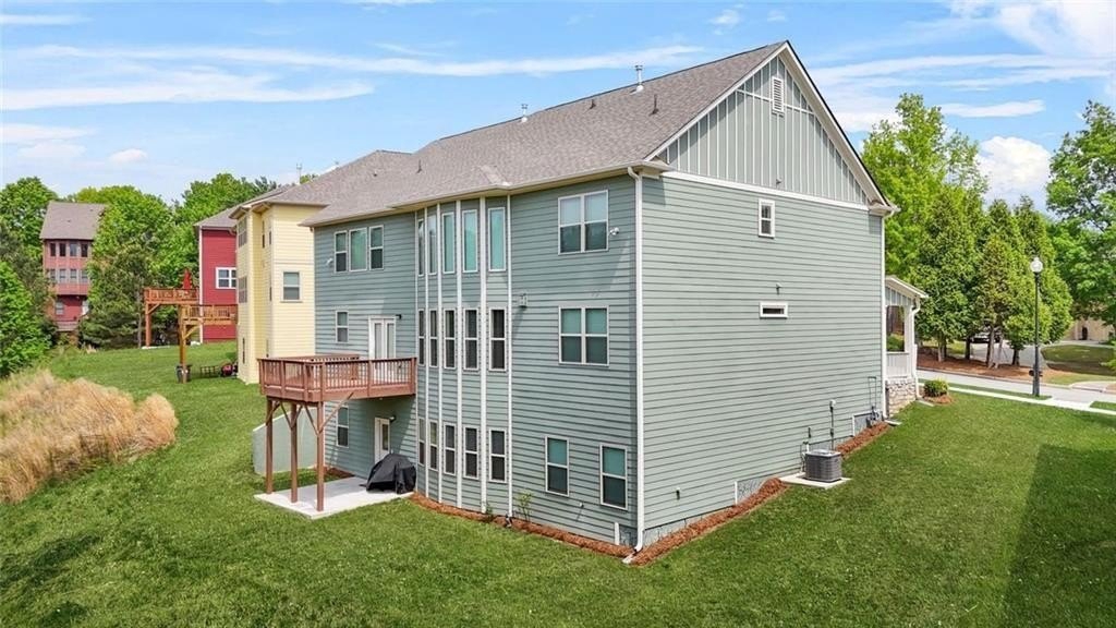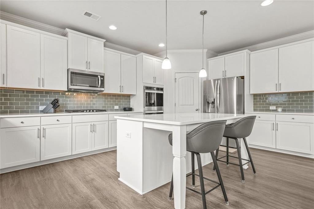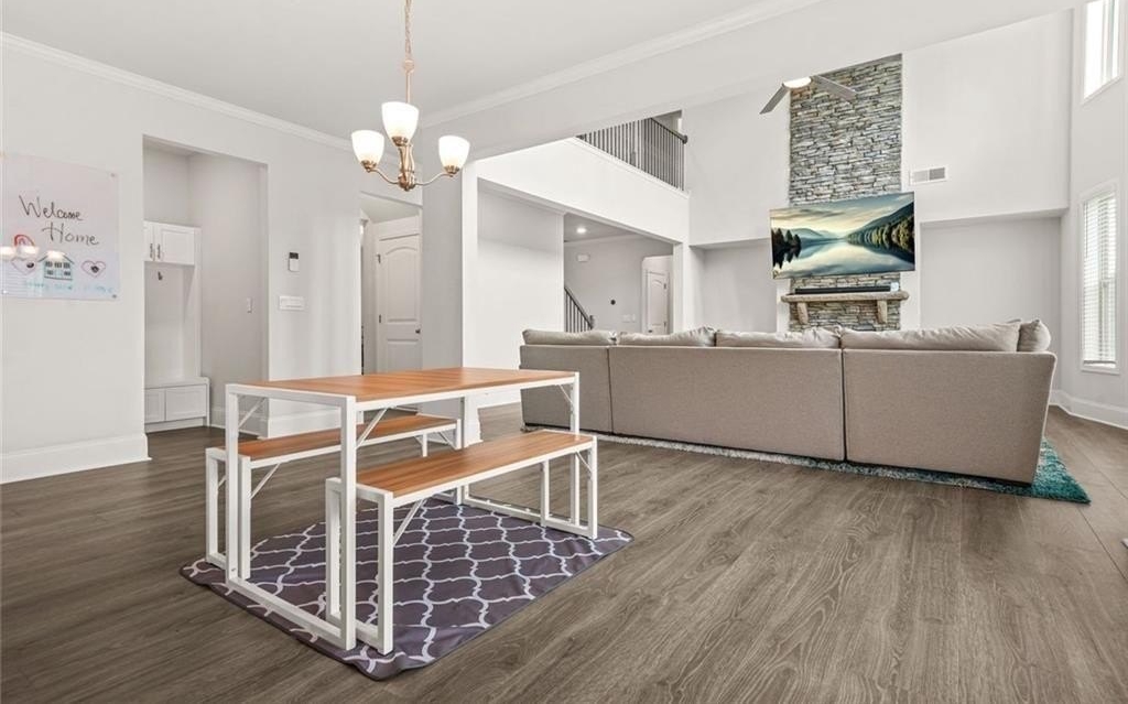 Welcome to 1606 Chancery Lane, a stunning 5-bedroom, 4-bath EarthCraft-certified home nestled in the award-winning Tributary at New Manchester community in Douglas County, Georgia. This impeccably designed 3,557+ sq ft residence offers luxurious, flexible living across three levels-including an expansive unfinished daylight basement that's framed and ready for your personal vision: home theater, fitness studio, in-law suite, golf simulator, or creative retreat. Step inside to find an inviting open floor plan, dramatic two-story great room with a floor-to-ceiling stone fireplace, and remote-controlled blinds that flood the space with natural light. A chef-inspired kitchen features quartz countertops, subway tile backsplash, stainless steel appliances, double ovens, and a large island with bar seating-perfect for entertaining. The main level includes a private guest bedroom with full bath, while upstairs you'll find oversized secondary bedrooms and a serene primary suite with a spacious sitting area, luxury en-suite spa bath with soaking tub and tiled walk-in shower, and a walk-in closet large enough to double as a dressing room. Enjoy the charm of a rocking chair front porch, professionally landscaped yard, and a back deck that overlooks wooded privacy-ideal for grilling or relaxing after a day of adventure. Tributary at New Manchester offers resort-style amenities, including: 3 swimming pools and splash park. Fitness center with Kid's Play Room. Tennis and pickleball courts. Miles of tree-lined sidewalks and nature trails. Village green, playgrounds, community events, and social clubs. HOA Includes Cable and internet as well. Located just 20 minutes from Hartsfield-Jackson Atlanta International Airport, and near Sweetwater Creek State Park, Douglas County Film Trail, and the upcoming Lionsgate Studio Campus, this home offers a rare blend of nature and accessibility. Zoned for top-rated schools, and minutes from I-20, shops, dining, and the Chattahoochee River, the location is ideal for commuters, creatives, and growing households alike. Whether you're seeking multi-generational flexibility, work-from-home space, or resort-style living close to Atlanta, this home checks every box.