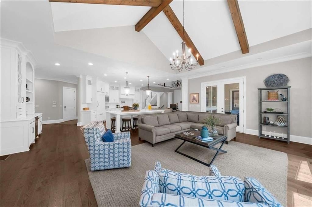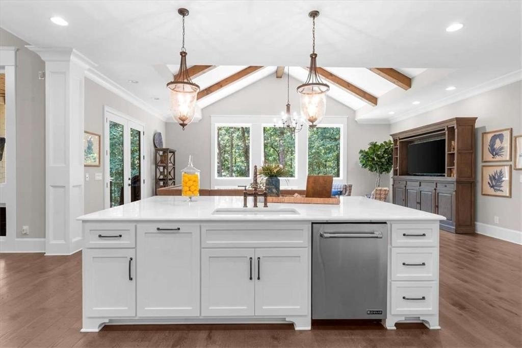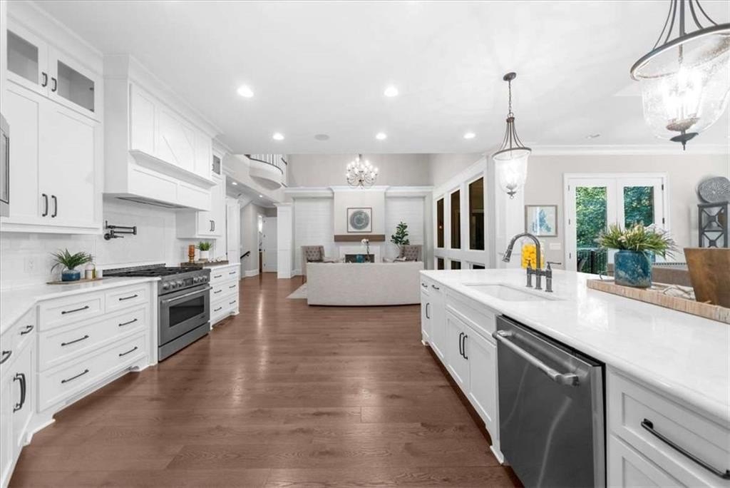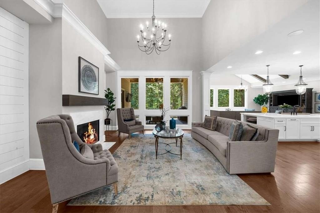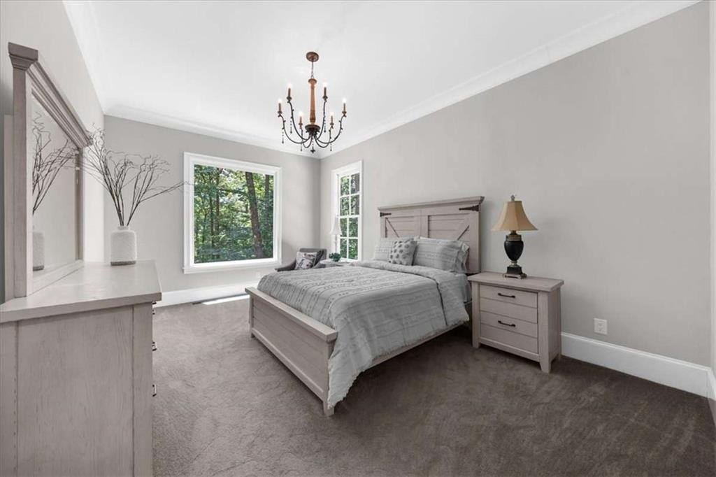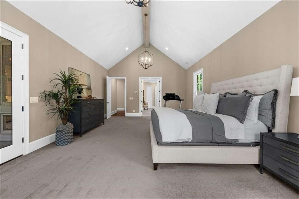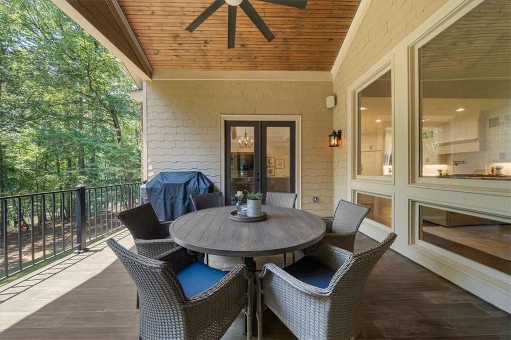 Experience luxurious lakeside living in this stunning custom-built home boasting 6,874 square feet on a beautiful level lot on Lake Lanier w/ breathtaking lake views. Free from HOA restrictions, this property offers ample space to potentially park your boat or RV, with convenient ramps available nearby at Van Pugh Park. While the property does not include a dock, it features a low Corps line and a paved road leading directly to the water, ensuring you can still fully enjoy the lakefront lifestyle. Inside, the home impresses with soaring ceilings, exposed beams, abundant natural light, and exceptional craftsmanship throughout. A sweeping curved staircase greets you in the dramatic two-story foyer, accented by elegant Juliet balconies and an open layout that seamlessly connects each living space. The main level offers two master bedrooms, each with stunning lake views, while an additional master suite is located upstairs for flexible living arrangements. The primary suite on the main level is a private retreat, featuring tray ceilings, a custom walk-in closet, and a spa-inspired bathroom complete with dual vanities, a luxurious wet room, a soaking tub, an oversized shower, and private deck access. Designed for entertaining and everyday living, the gourmet kitchen is a chef's dream with professional-grade appliances, a large island with seating, quartz countertops, a walk-in pantry, a pot filler over the gas range, and stainless steel appliances. The open-concept great room flows effortlessly to the covered deck, creating the perfect setting for indoor-outdoor gatherings. Additional main-level highlights include a formal dining room, a versatile flex room, and a laundry area equipped with a mud sink and cabinetry. Upstairs, you'll find two spacious en-suite bedrooms with private baths, plus a media or office room with a full bath for added convenience. The finished terrace level is ideal for in-law or multigenerational living, featuring a full kitchen, bedroom, bathroom, washer and dryer, and an expansive living area, along with ample unfinished storage space, a workshop, and plenty of room for lake toys and hobbies. This exceptional property also offers an oversized 3-car garage and a prime location just minutes from shopping, dining, and Interstate 985, providing easy access to Atlanta or the scenic North Georgia mountains. Situated in Hall County, you'll benefit from lower property taxes and school choice opportunities, all while being just minutes from the NFL Falcons Training Camp.