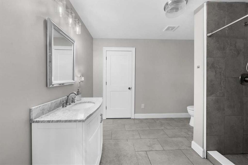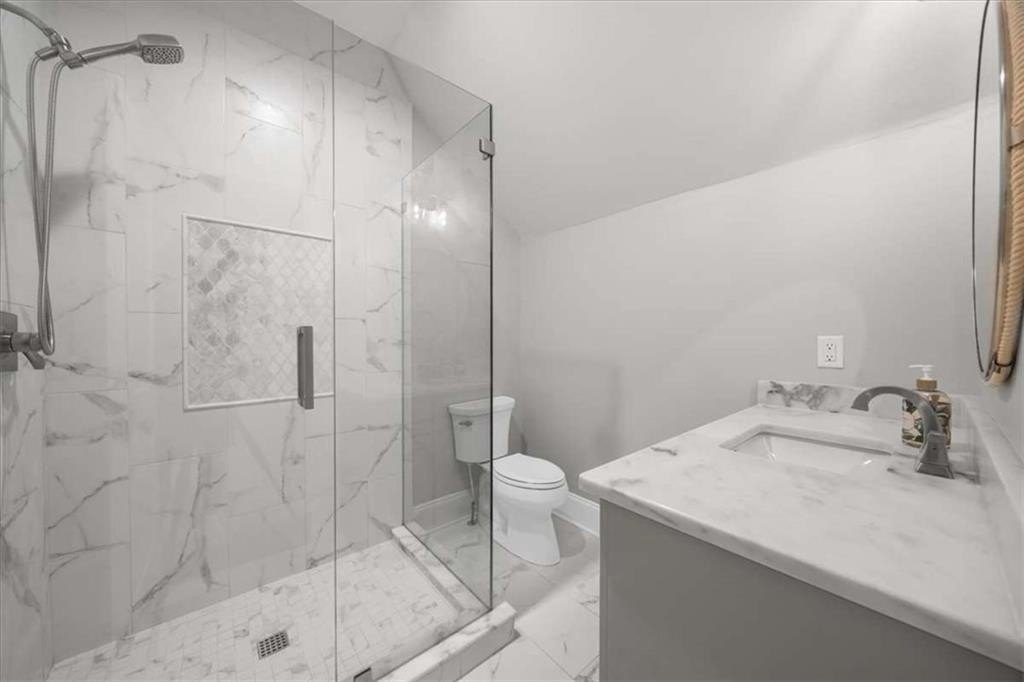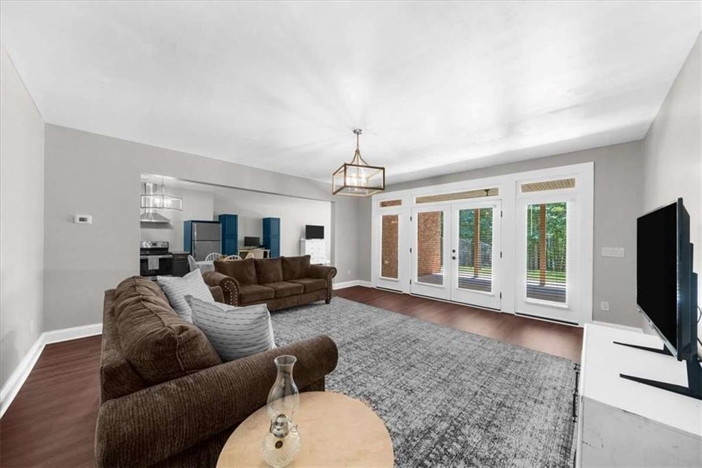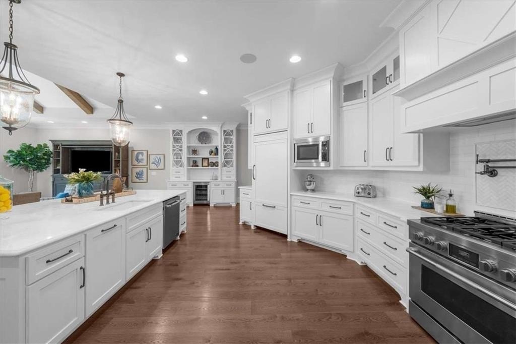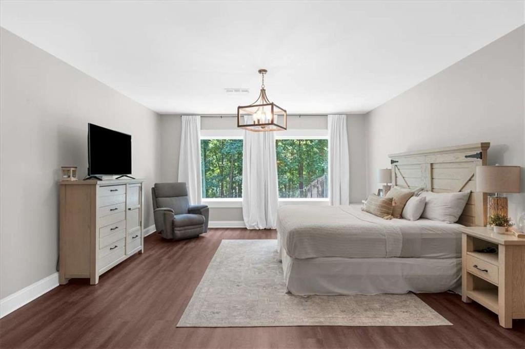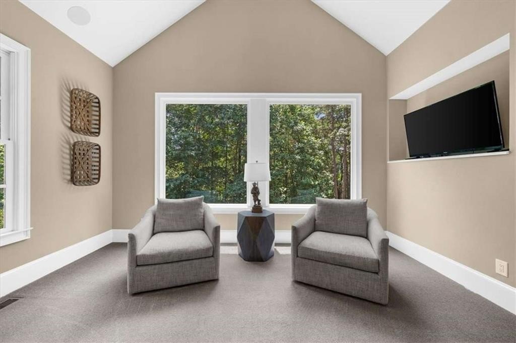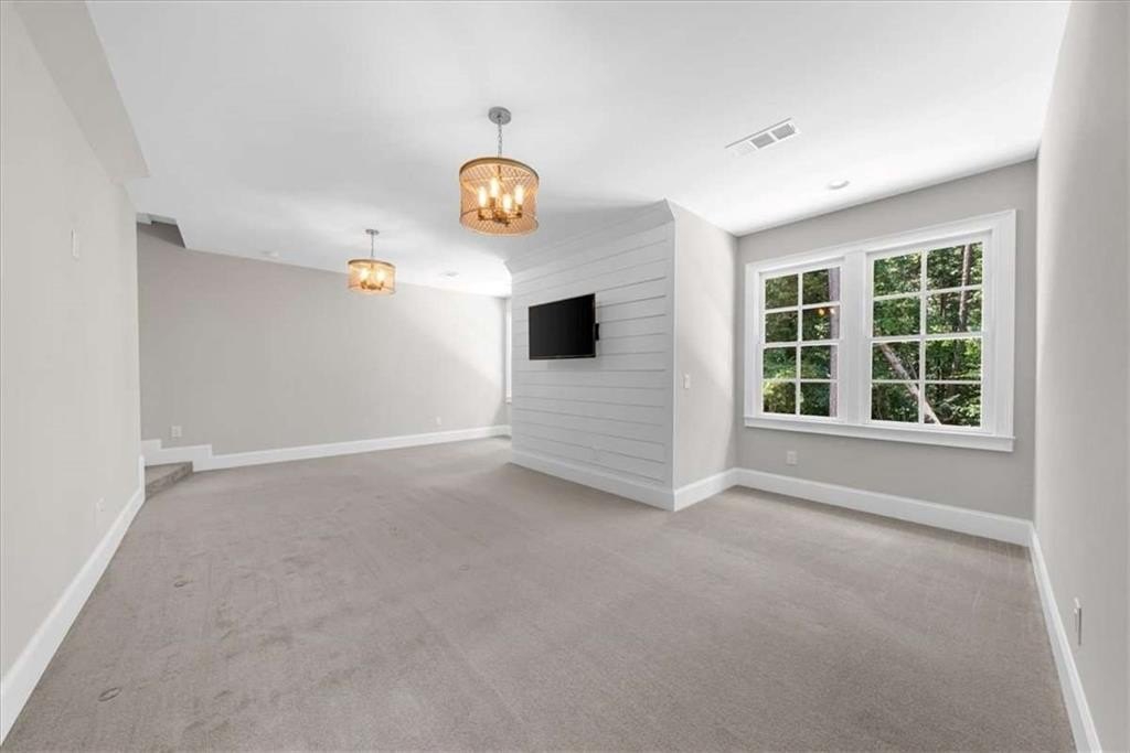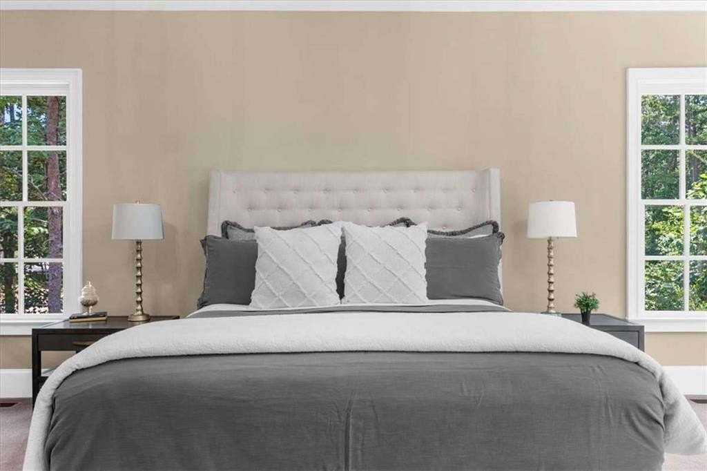 Experience luxurious lakeside living in this stunning custom-built home boasting 6,874 square feet on a beautiful level lot on Lake Lanier w/ breathtaking lake views. Free from HOA restrictions, this property offers ample space to potentially park your boat or RV, with convenient ramps available nearby at Van Pugh Park. While the property does not include a dock, it features a low Corps line and a paved road leading directly to the water, ensuring you can still fully enjoy the lakefront lifestyle. Inside, the home impresses with soaring ceilings, exposed beams, abundant natural light, and exceptional craftsmanship throughout. A sweeping curved staircase greets you in the dramatic two-story foyer, accented by elegant Juliet balconies and an open layout that seamlessly connects each living space. The main level offers two master bedrooms, each with stunning lake views, while an additional master suite is located upstairs for flexible living arrangements. The primary suite on the main level is a private retreat, featuring tray ceilings, a custom walk-in closet, and a spa-inspired bathroom complete with dual vanities, a luxurious wet room, a soaking tub, an oversized shower, and private deck access. Designed for entertaining and everyday living, the gourmet kitchen is a chef's dream with professional-grade appliances, a large island with seating, quartz countertops, a walk-in pantry, a pot filler over the gas range, and stainless steel appliances. The open-concept great room flows effortlessly to the covered deck, creating the perfect setting for indoor-outdoor gatherings. Additional main-level highlights include a formal dining room, a versatile flex room, and a laundry area equipped with a mud sink and cabinetry. Upstairs, you'll find two spacious en-suite bedrooms with private baths, plus a media or office room with a full bath for added convenience. The finished terrace level is ideal for in-law or multigenerational living, featuring a full kitchen, bedroom, bathroom, washer and dryer, and an expansive living area, along with ample unfinished storage space, a workshop, and plenty of room for lake toys and hobbies. This exceptional property also offers an oversized 3-car garage and a prime location just minutes from shopping, dining, and Interstate 985, providing easy access to Atlanta or the scenic North Georgia mountains. Situated in Hall County, you'll benefit from lower property taxes and school choice opportunities, all while being just minutes from the NFL Falcons Training Camp.