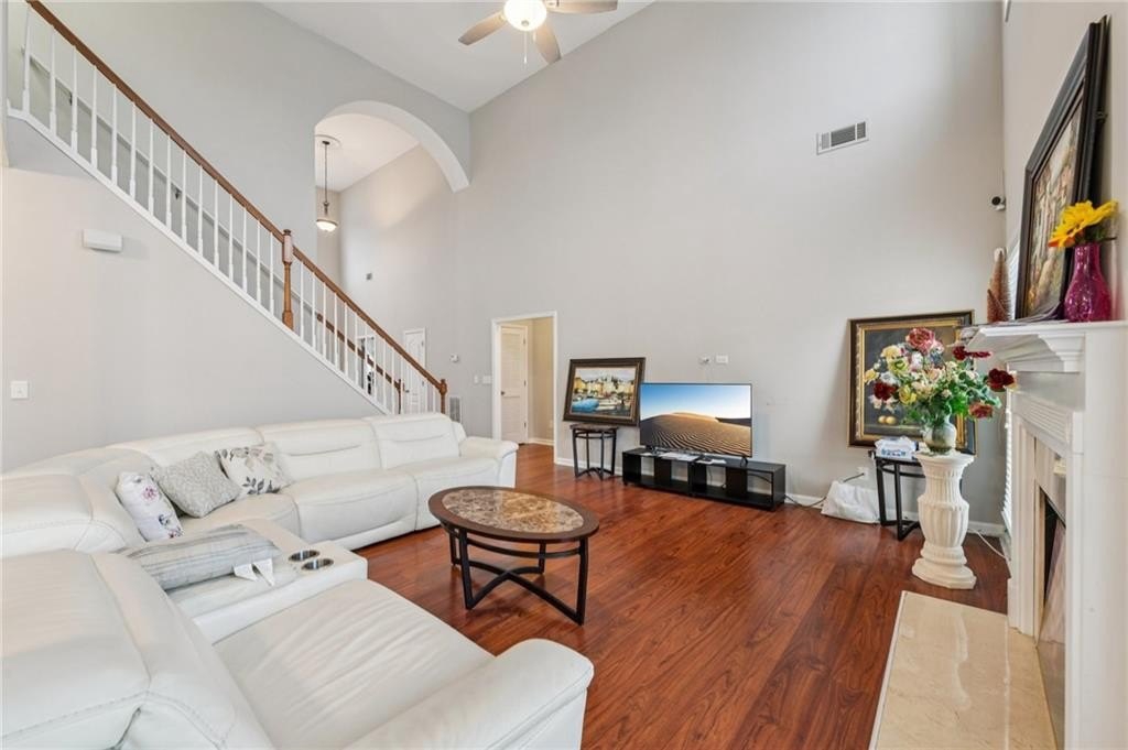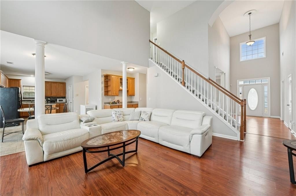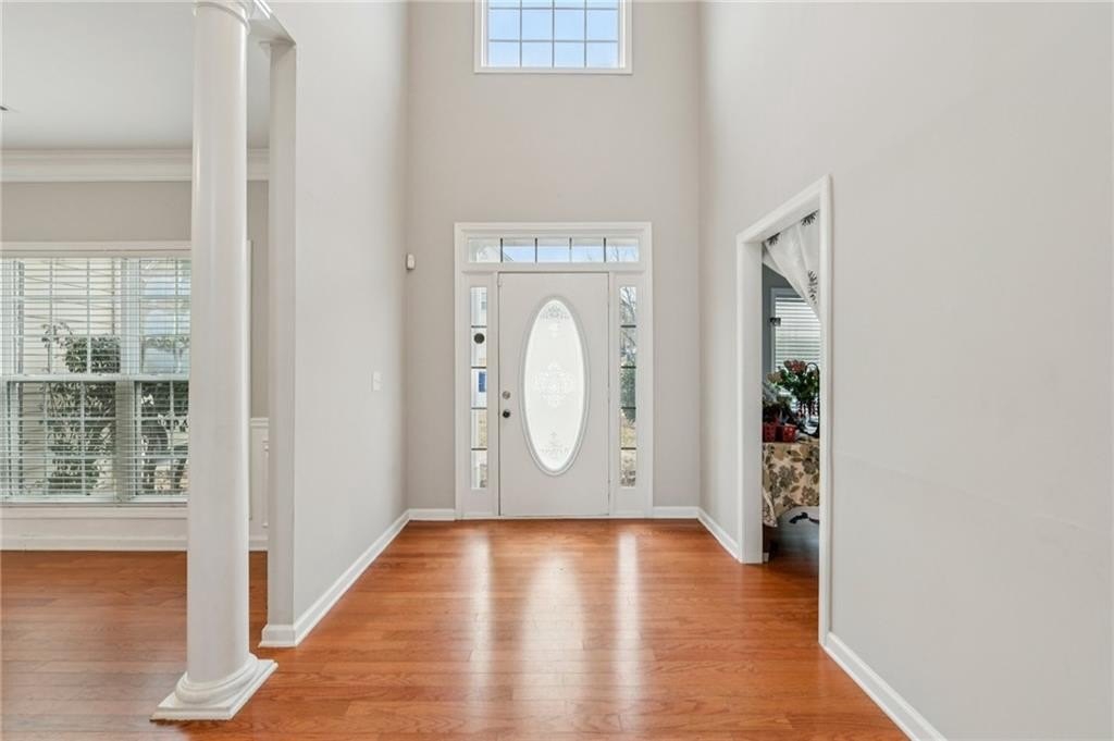 Welcome to this beautiful corner-lot home offering 5 spacious bedrooms and 2.5 baths in a highly desirable swim/tennis/playground community. The main level boasts an impressive two-story foyer and a bright two-story family room, perfect for gatherings. You'll also find a formal living room, formal dining room, a convenient guest bedroom with a full bath, a laundry room, a half bath for visitors, and a generously sized kitchen with plenty of cabinet and counter space. Upstairs includes four additional bedrooms and two full bathrooms, providing ample space for family, guests, or a home office setup. Located just minutes from Hwy 78, Hwy 124, and I-85, this home offers easy access to schools, parks, shopping, and dining. A fantastic opportunity to own a well-maintained home in a vibrant, amenity-rich community.