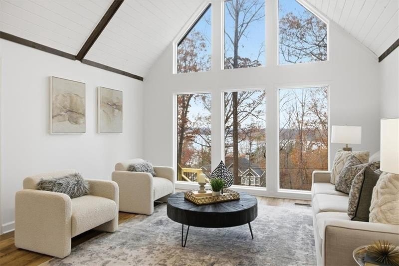 PRICE IMPROVEMENT and READY FOR YOU! Newly Renovated With Breathtaking Year-Round Lake Views! Let's make 2026 a fabulous year for you at your new home with amazing views of Lake Lanier! Welcome to your turn-key retreat overlooking the stunning waters of Lake Lanier. Perched on a gentle hill, this light-filled ranch captures panoramic sunset views from nearly every room-offering the kind of tranquility and beauty most people only dream of. Surrounded by quiet streets and million-dollar homes, this property delivers both privacy and prestige. Inside, the home has been thoughtfully renovated throughout, including a new roof, HVAC, kitchen, bathrooms, and more-giving you peace of mind and modern comfort from day one. Designed for easy living, the layout features everything you need on the main level plus a versatile bonus room perfect for game room, hobbies, or work-from-home flexibility. Step outside and you'll find multiple expansive decks-all oriented toward those incredible lake views-creating endless opportunities for outdoor dining, lounging, and entertaining. Your private backyard oasis includes a classic 10-foot-deep pool complete with an old-school diving board and slide-a rare find that invites fun all summer long. With ample parking, a designated RV area with water and power, and an EV-ready garage, this property is designed to fully support your lifestyle and lake adventures. A beautifully renovated home on almost a full acre. A peaceful setting. Sweeping water views every single day. This is the right-sized home where you can upsize, downsize, or simply live easier. List of improvements upon request.