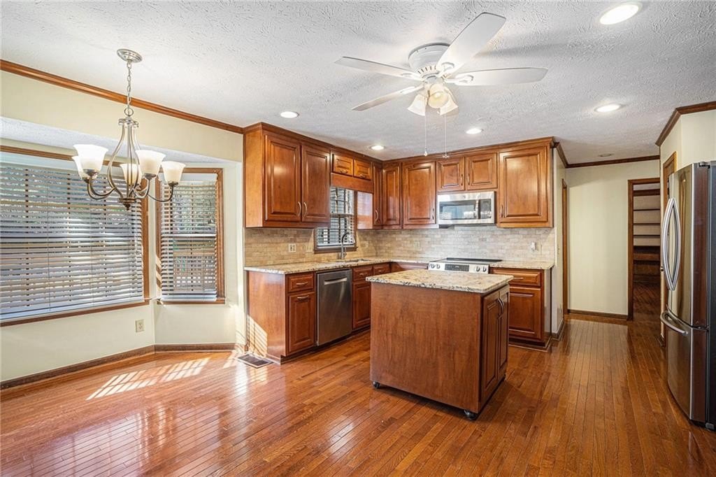 Welcome to this beautifully maintained 5-bedroom, 2.5-bath home located in the highly sought-after Parkview High School District, where thoughtful updates, timeless charm, and exceptional outdoor living come together. Inside, you'll immediately appreciate the inviting layout designed for both everyday living and entertaining. The updated kitchen is a standout, featuring granite countertops, custom maple cabinetry, tiled backsplash, stainless steel appliances, and a center island that provides additional prep space and gathering room. The main level also includes a formal dining room perfect for hosting, a versatile living room or home office, and a warm, welcoming family room highlighted by a brick fireplace and built-in bookshelves. An updated half bath adds convenience and style. Upstairs, the spacious primary suite offers a peaceful retreat with a walk-in closet and a beautifully refreshed en-suite bath featuring updated cabinetry, tile, and granite finishes. Three additional oversized bedrooms share a full bath, providing ample space for family or guests. A large bonus room could serve as a fifth bedroom, complete with a private staircase off the kitchen, offering endless flexibility-ideal for a playroom, media room, home office, or guest suite. New carpet throughout enhances the home's fresh, move-in-ready feel. Step outside to discover a truly special landscaped backyard oasis. Enjoy relaxing evenings on the screened-in patio, entertaining on the expansive deck, or watching kids play in the dedicated play area. The level, fenced backyard is adorned with mature fruit trees, and a storage shed with electricity adds functionality for hobbies, tools, or extra storage. Located in the desirable Cedar Creek community, residents enjoy access to optional swim and tennis amenities and a convenient location near trails, Downtown Lilburn, shopping, and top-rated Gwinnett County schools. This home offers the perfect blend of comfort, flexibility, and lifestyle-don't miss the opportunity to make it yours.