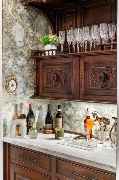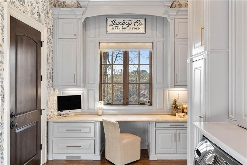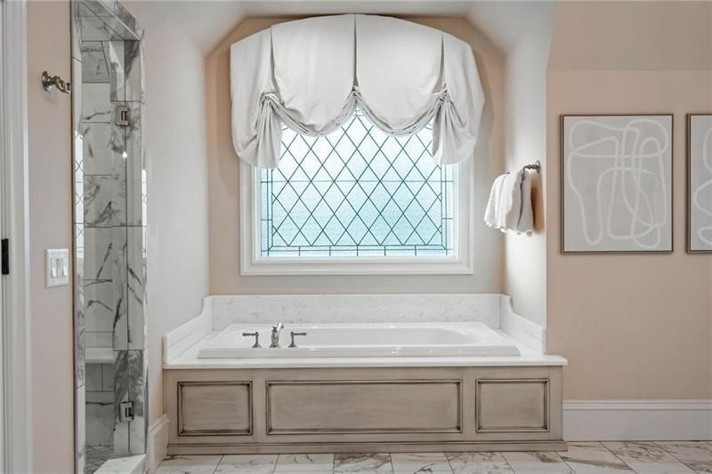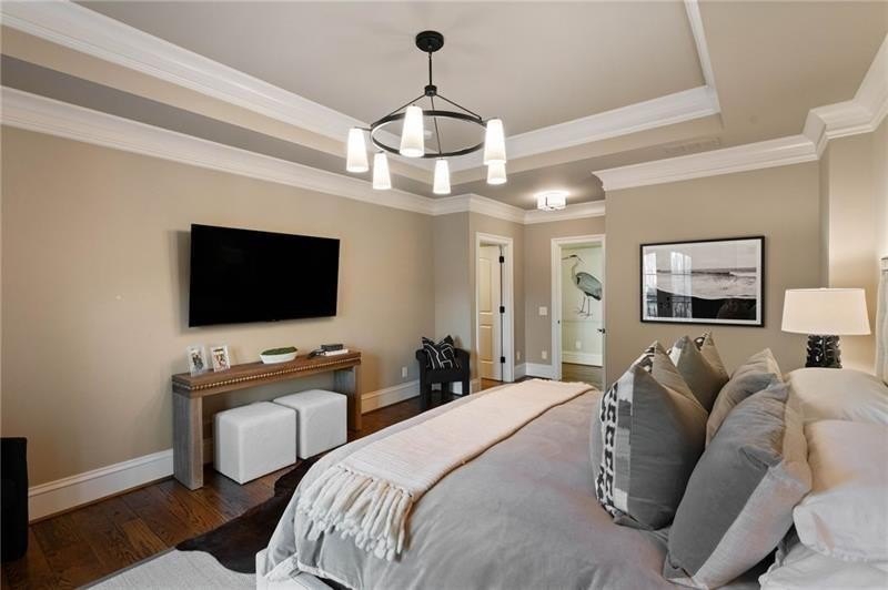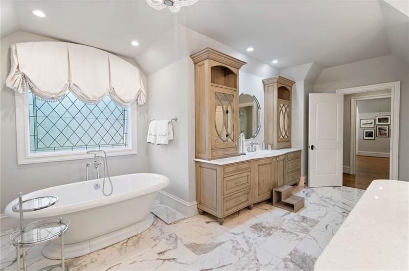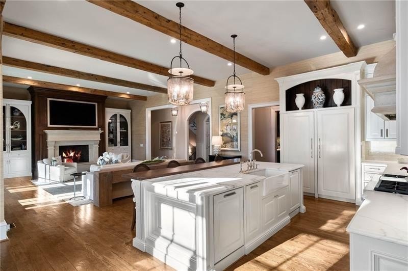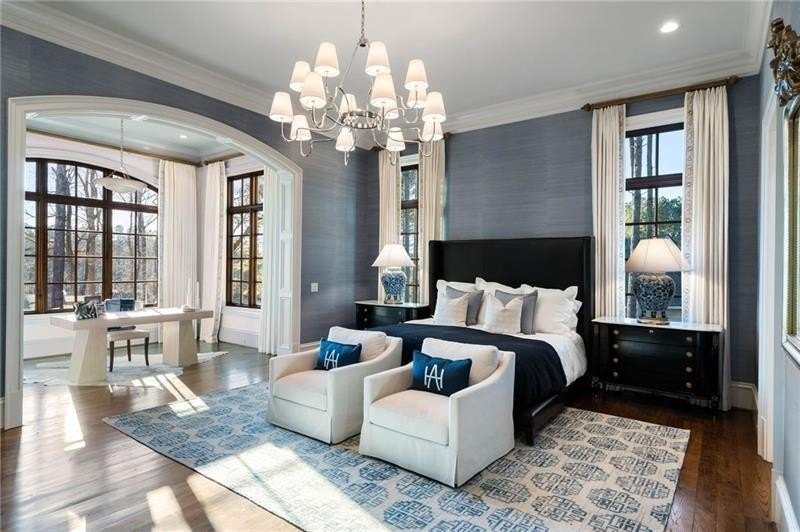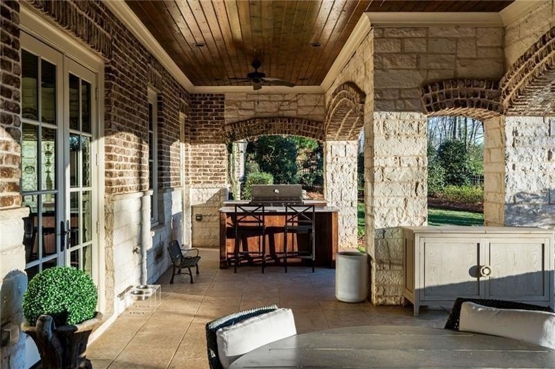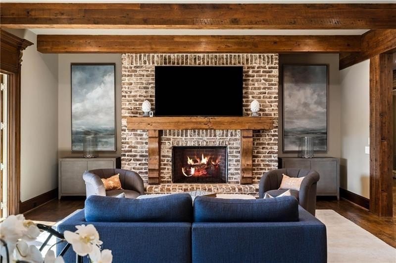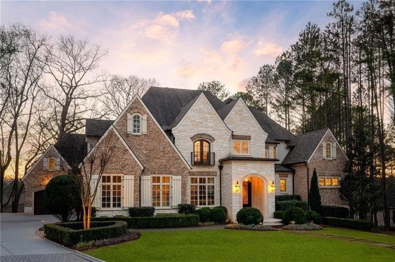 Discover an unparalleled experience in The River Club, where luxurious living meets a refined community, creating an experience unmatched anywhere else. Embrace a lifestyle of sophistication and leisure, where every day feels like a getaway in an exceptional neighborhood. This magnificent estate offers designer elegance with breathtaking views of the 13th hole of the golf course and lake, ensuring total privacy with the serene Chattahoochee River just beyond. The backyard is beautifully enhanced by an elegant English Garden-style landscape, creating a tranquil outdoor retreat. Upon entering, you are greeted by a welcoming foyer that flows seamlessly into the stylishly appointed martini room, which exudes a moody and sophisticated ambiance while also offering the versatility to serve as a formal dining room. The attention to detail is immediately apparent, with custom metal handrails adorning the staircase leading to the second floor. The expansive fireside great room, adorned with rustic wood beams, opens to a meticulously designed kitchen and breakfast room, perfect for both entertaining and everyday living. The kitchen extends to include a charming coffee bar area, complemented by a gorgeous walk-in butler's pantry, enhancing functionality and style. Double french doors lead to an outdoor retreat featuring a cozy fireplace, creating a seamless indoor-outdoor flow that enhances the overall ambiance. The luxurious primary suite is conveniently located on the main level and features distinctive herringbone-pattern hardwood floors that highlight the elegance of the space. The en-suite bath includes a separate soaking tub, an oversized zero-entry shower, dual vanities, a ladies' makeup vanity, and spacious his and her closets. A light-filled sitting room completes this exceptional suite. Ascending to the second floor, you will find three well-appointed secondary bedrooms. Two of these bedrooms are mirror images of each other, each boasting spa-like baths, sitting areas, and expansive closet space. Both suites enjoy access to private rooftop terraces with picturesque views of the lake and golf course. Additionally, convenient elevator service provides access to all three floors. The lower level is designed for entertaining and includes a custom bar, media room, state-of-the-art home theater, home gym, a massage room, and an oversized en suite guest bathroom. This home features an array of unique finishes that are truly one-of-a-kind, including reclaimed beams, exquisite ceiling treatments, distinctive door hardware, and custom lighting fixtures. Welcome home to The River Club where residents enjoy a wealth of amenities, including a championship golf course, a state-of-the-art fitness center, and a stunning clubhouse with elegant dining and event spaces. The resort-style swimming pool features Olympic lanes, a thrilling waterslide, and comfortable cabanas, while tennis and pickleball courts offer additional recreational opportunities. With picturesque walking trails, serene lakes, and beautifully landscaped parks, residents can embrace an active lifestyle and a strong sense of community.