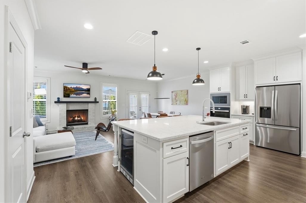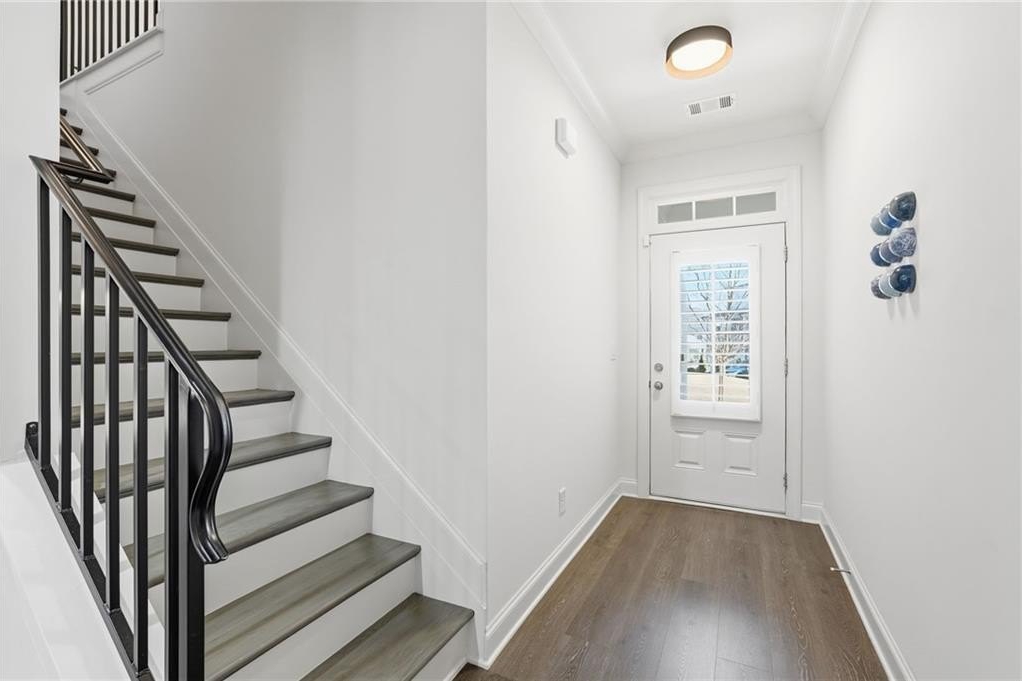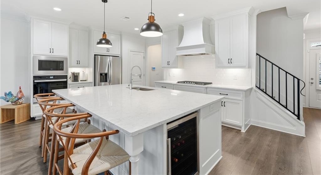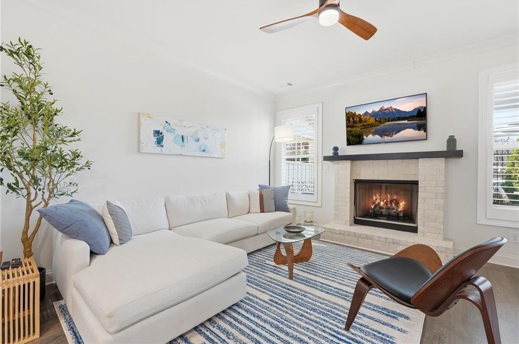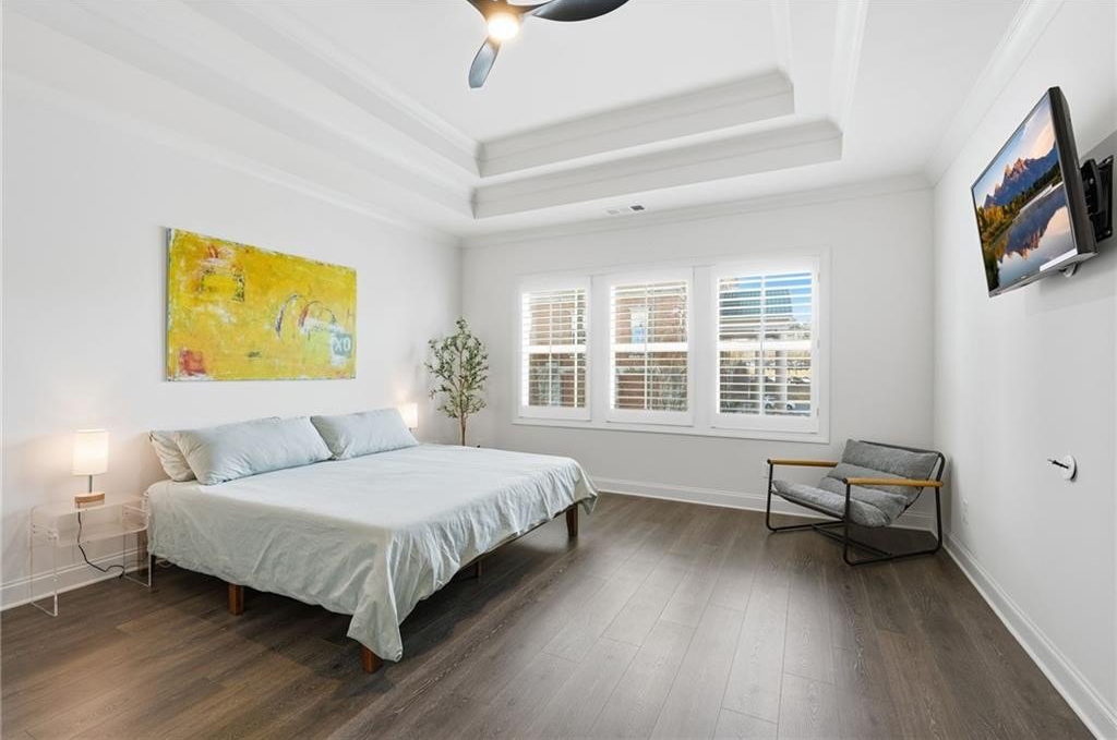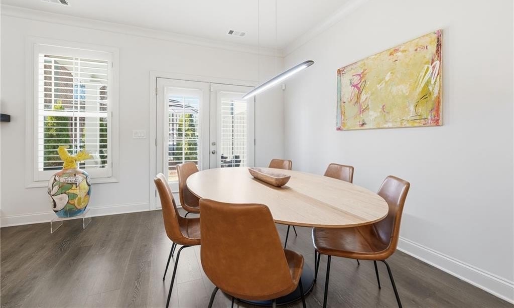 Welcome to your dream home in sought after Urban Square at SouthLawn, walking distance to lively Downtown Lawrenceville. Better than new with over $50,000 in upgrades recently added- Plantation Shutters, California Custom Closets, all New Interior Light Fixtures, Built-in undercounter Beverage Refrigerator, Upgraded Cabinet Hardware, Framed Mirrors, Upgraded Security System with cameras, and more! NO CARPET - wide plank Revwood laminate floors throughout the entire home. The ultimate kitchen with ceiling height cabinetry and GE Profile Stainless Steel Appliances including Gas Range with vent hood, built-in wall oven, microwave, and Refrigerator INCLUDED! Massive Island with gleaming QUARTZ countertops. Designed for both intimate gatherings and grand entertaining, the open floor plan is spacious and features abundant natural light. The entire home has had custom upgraded lighting added including pendant lights, sleek dining chandelier, upgraded CEILING FANS and more. Just off the Dining room you will love your COVERED PATIO with ceilng fan, the perfect spot to unwind! Don't miss the high-end PLANTATION SHUTTERS, crown molding, iron balusters, gas fireplace, and custom closets featured throughout the home. Upstairs you'll find three generously sized bedrooms, for family, guests, or use as a home office. Oversized master suite, has double Tray Ceiling, and a CUSTOM CLOSET system to keep you orgainzed. Gorgeous Master Bathroom has DOUBLE SHOWER with two niches and dual showerheads. The upstairs Laundry Room is convenient and INCLUDES WASHER AND DRYER. Located in downtown Lawrenceville, this residence offers effortless access to an array of dining, shopping, and entertainment options, with an easy walk home! Experience the epitome of luxury living in this meticulously upgraded townhome that surpasses the standard of new construction and is in the nicest neighborhood in downtown Lawrenceville. LAWN CARE INCLUDED. TWO CAR GARAGE. Won't last long!