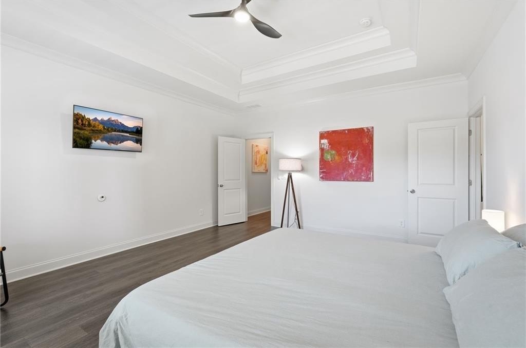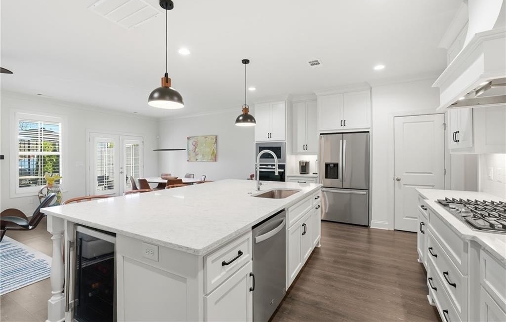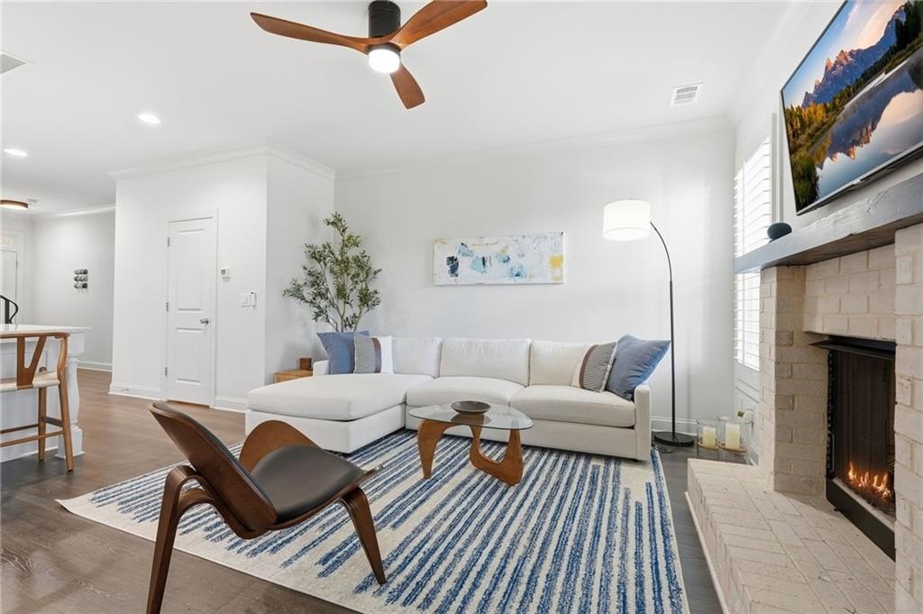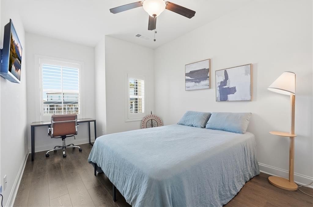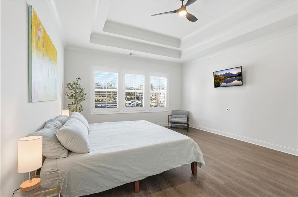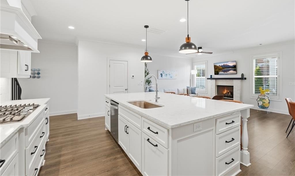 Welcome to your dream home in sought after Urban Square at SouthLawn, walking distance to lively Downtown Lawrenceville. Better than new with over $50,000 in upgrades recently added- Plantation Shutters, California Custom Closets, all New Interior Light Fixtures, Built-in undercounter Beverage Refrigerator, Upgraded Cabinet Hardware, Framed Mirrors, Upgraded Security System with cameras, and more! NO CARPET - wide plank Revwood laminate floors throughout the entire home. The ultimate kitchen with ceiling height cabinetry and GE Profile Stainless Steel Appliances including Gas Range with vent hood, built-in wall oven, microwave, and Refrigerator INCLUDED! Massive Island with gleaming QUARTZ countertops. Designed for both intimate gatherings and grand entertaining, the open floor plan is spacious and features abundant natural light. The entire home has had custom upgraded lighting added including pendant lights, sleek dining chandelier, upgraded CEILING FANS and more. Just off the Dining room you will love your COVERED PATIO with ceilng fan, the perfect spot to unwind! Don't miss the high-end PLANTATION SHUTTERS, crown molding, iron balusters, gas fireplace, and custom closets featured throughout the home. Upstairs you'll find three generously sized bedrooms, for family, guests, or use as a home office. Oversized master suite, has double Tray Ceiling, and a CUSTOM CLOSET system to keep you orgainzed. Gorgeous Master Bathroom has DOUBLE SHOWER with two niches and dual showerheads. The upstairs Laundry Room is convenient and INCLUDES WASHER AND DRYER. Located in downtown Lawrenceville, this residence offers effortless access to an array of dining, shopping, and entertainment options, with an easy walk home! Experience the epitome of luxury living in this meticulously upgraded townhome that surpasses the standard of new construction and is in the nicest neighborhood in downtown Lawrenceville. LAWN CARE INCLUDED. TWO CAR GARAGE. Won't last long!