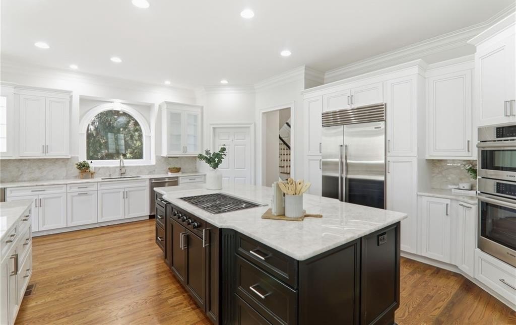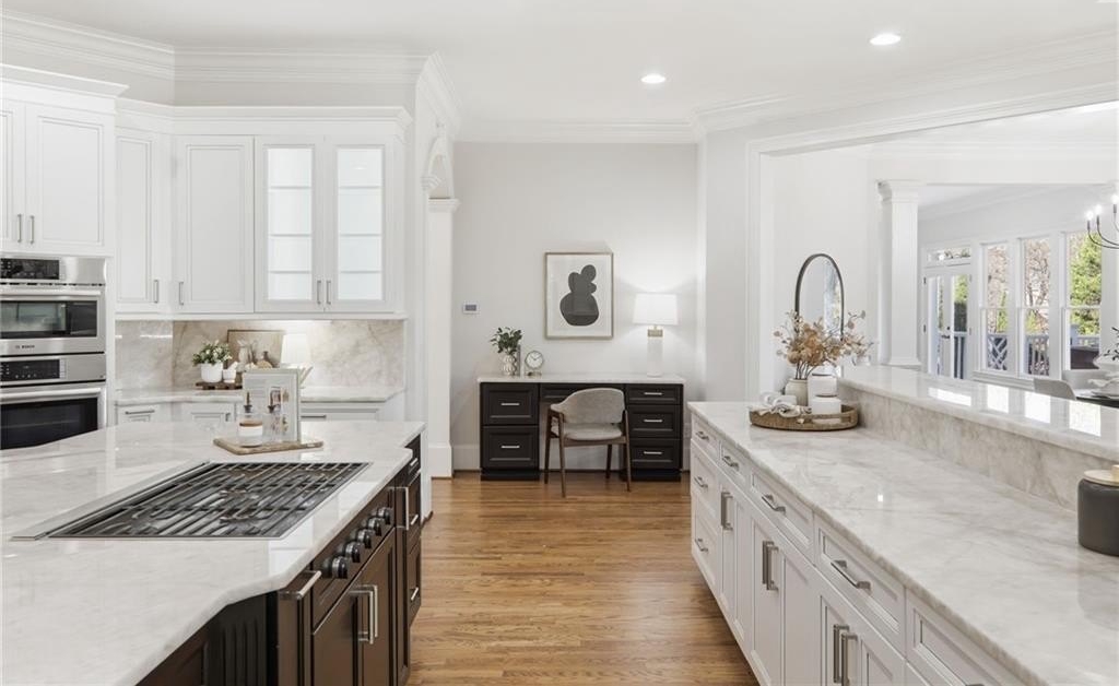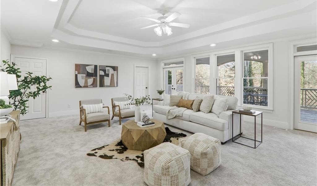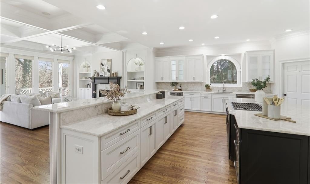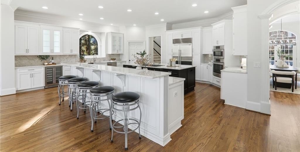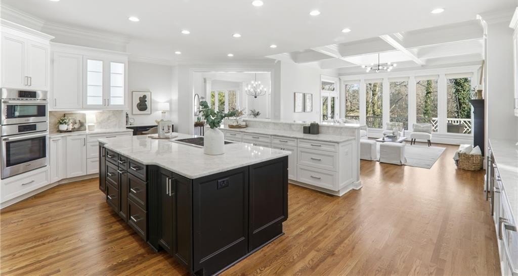 Discover an extraordinary opportunity in the highly sought-after, gated Crooked Creek community, renowned for its resort-style amenities and top-ranked schools. Perfectly designed for multi-generational living, this exceptional residence is set on one of the neighborhood's most beautiful and private golf course lots, overlooking the 15th fairway and offering one of Crooked Creek's largest and most versatile floor plans. Inside, the primary-on-main layout is highlighted by a stunning, fully renovated kitchen featuring dual islands, a spacious walk-in pantry, premium Wolf and Sub-Zero appliances, and a fireside keeping room filled with natural morning light. From here, enjoy peaceful views of the covered deck and the golf course beyond. The main level also includes a formal dining room, a private office, a sunroom, a spacious great room, two half baths, and an oversized laundry room. The primary suite is truly impressive, offering a spa-like bath with separate; vanities, walk in closets, toilet rooms and a curb less shower and whirlpool tub for ultimate comfort and privacy. SHOWINGS START FRIDAY Upstairs, a large bedroom with its own ensuite bath provides an ideal au pair or teen suite. The next level down from the main offers three generously sized bedrooms with large walk-in closets, a playroom, a brand-new full second kitchen, a cedar storage closet, a gym, and an additional office or game room. The lowest level adds even more flexibility with another expansive family room, an additional bedroom, a full bath, a walk-in closet, abundant storage, and endless possibilities for entertaining or extended living. The expansive backyard offers incredible potential for a pool, playground, fire pit, private putting green, or outdoor retreat, all while enjoying sweeping views of the golf course. The home has been meticulously prepared for sale with fresh interior paint, new carpet, refinished hardwood floors, updated bath tile, showers, vanities, toilets, new light fixtures, and a completely renovated terrace-level kitchen with new cabinets and appliances. New Roof December 2025. New Driveway 2024. Crooked Creek's unmatched amenities include championship golf, professionally managed tennis and pickleball facilities, a junior Olympic swimming pool, a second water-park-style pool with splash features and a 140-foot waterslide, playground, basketball court, and a clubhouse with meeting rooms, catering bar, and kitchen, along with vibrant community events year-round. Ideally located just minutes from Crabapple, downtown Milton, downtown Alpharetta, GA-400, Halcyon, Avalon, and some of Georgia's most acclaimed schools, this remarkable home truly offers it all and is completely move-in ready. This is a rare opportunity to own a home that combines luxury, lifestyle, and location-your dream home awaits.